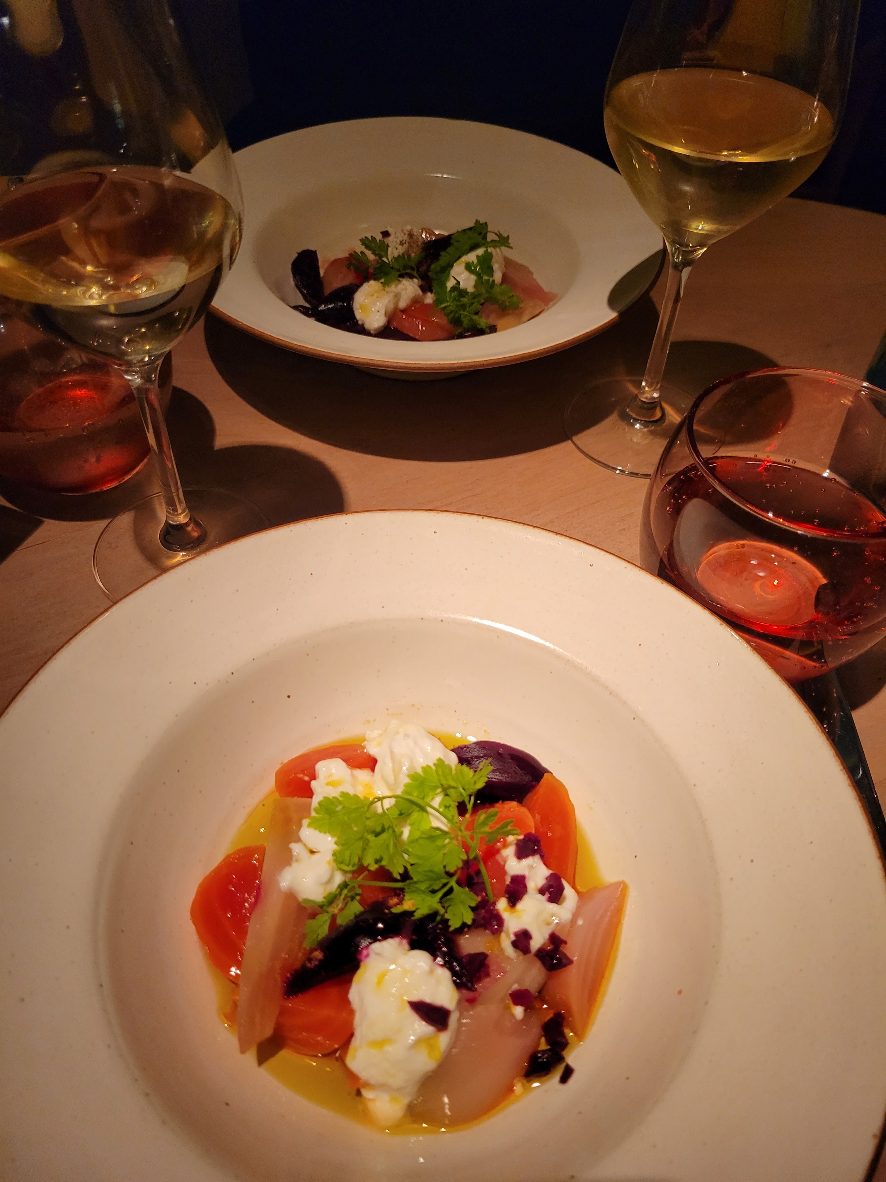 La nourriture était excellente, malheureusement, il n'y avait aucune indication sur le prix, car les critiques et Google indiquent que les repas par personne coûtent généralement environ 80 €. A notre arrivée, nous avons reçu le menu qui coûtait plus de 200 € par personne + vin en plus. C'était décevant pour nous qu'ils aient pu au moins donner un indicateur de cela. Le service était très lent, ils ont sorti les mauvais couteaux et cassé les assiettes. Ils étaient néanmoins sympathiques, mais pas assez bien pour ce que nous avons payé. L'ambiance était médiocre, nous n'avions aucune intimité et avions l'impression d'être surveillés des deux côtés car c'était une table très bondée où nous étions assis. La musique était horrible - je suis moi-même DJ et j'entends quand la technique de mixage est mauvaise. Ils augmentaient le volume d’une chanson et atténuaient l’autre, ce qui signifiait que la musique devenait soudainement plus forte, de plus en plus, de sorte que nous ne pouvions plus nous entendre parler et profiter du moment. La nourriture était néanmoins incroyable, il a fallu du temps pour que notre vin soit servi et que la nourriture arrive cependant. C'est dommage même si sans cela, cet avis serait de 1*.