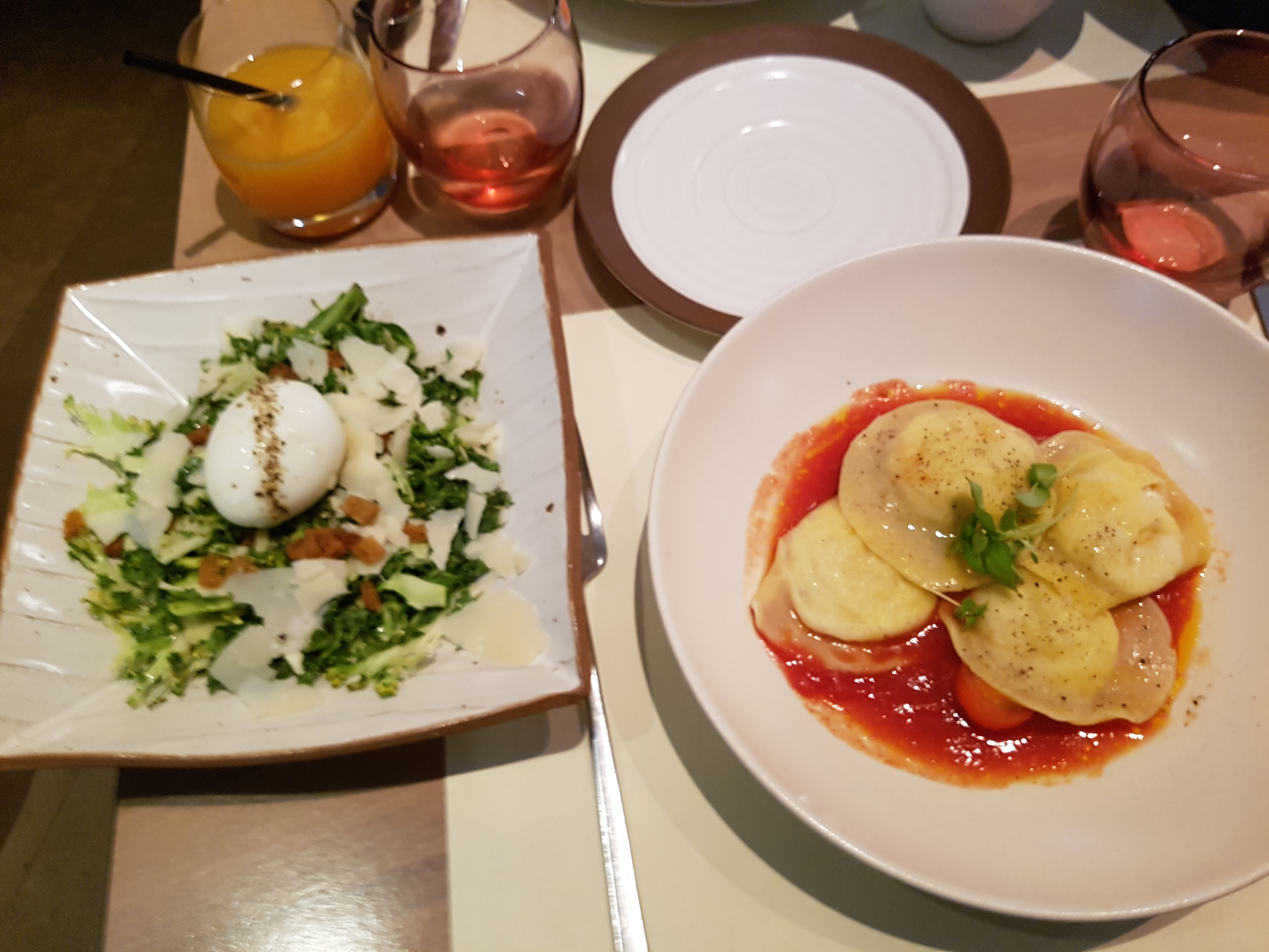Ce repas a été un moment fort de notre voyage et quelque peu inattendu. Nous nous attendions à ce que la nourriture soit bonne, mais nous avons été époustouflés par sa qualité. Après quelques jours de nourriture plus lourde, c'était aussi très agréable d'avoir quelques salades et des options plus légères qui étaient tout simplement phénoménales. Notre mangeur le plus difficile a eu la pizza «tomate, mozzarella, basilic» et a mis de côté l'aversion habituelle pour la sauce et a adoré la pizza. Les desserts ont également été un succès, du sundae au gâteau de lave en passant par le cheesecake.