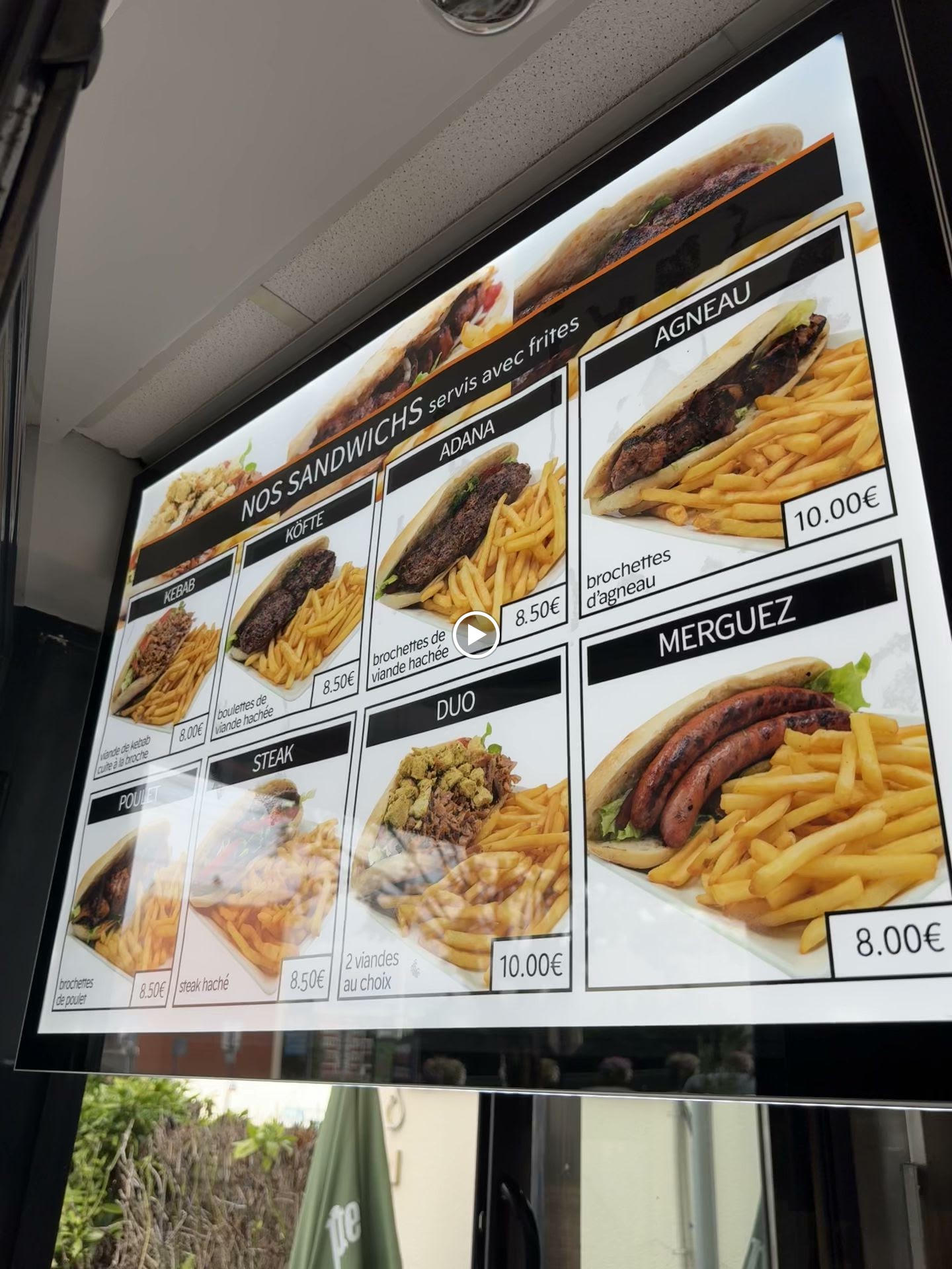 J'ai tester ce nouveau restaurant, et mon expérience sera juste mon point de vue ou je suis un peu déçu. J'ai commandé un sandwich Duo chicken/kebab + sup fromage et une boisson ( voir photo ) pour le prix de 11euros50 . Forcer de constater le manque cruelle de viande ( chicken ) et de fromage. Et le pain était vraiment pas top du tout. Malgré ça la viande est très bonne, les frites également mais je trouve que ça prend le goût de l'emballage carton. Pour le prix du sandwich pour moi ça ne vaut pas le coup .