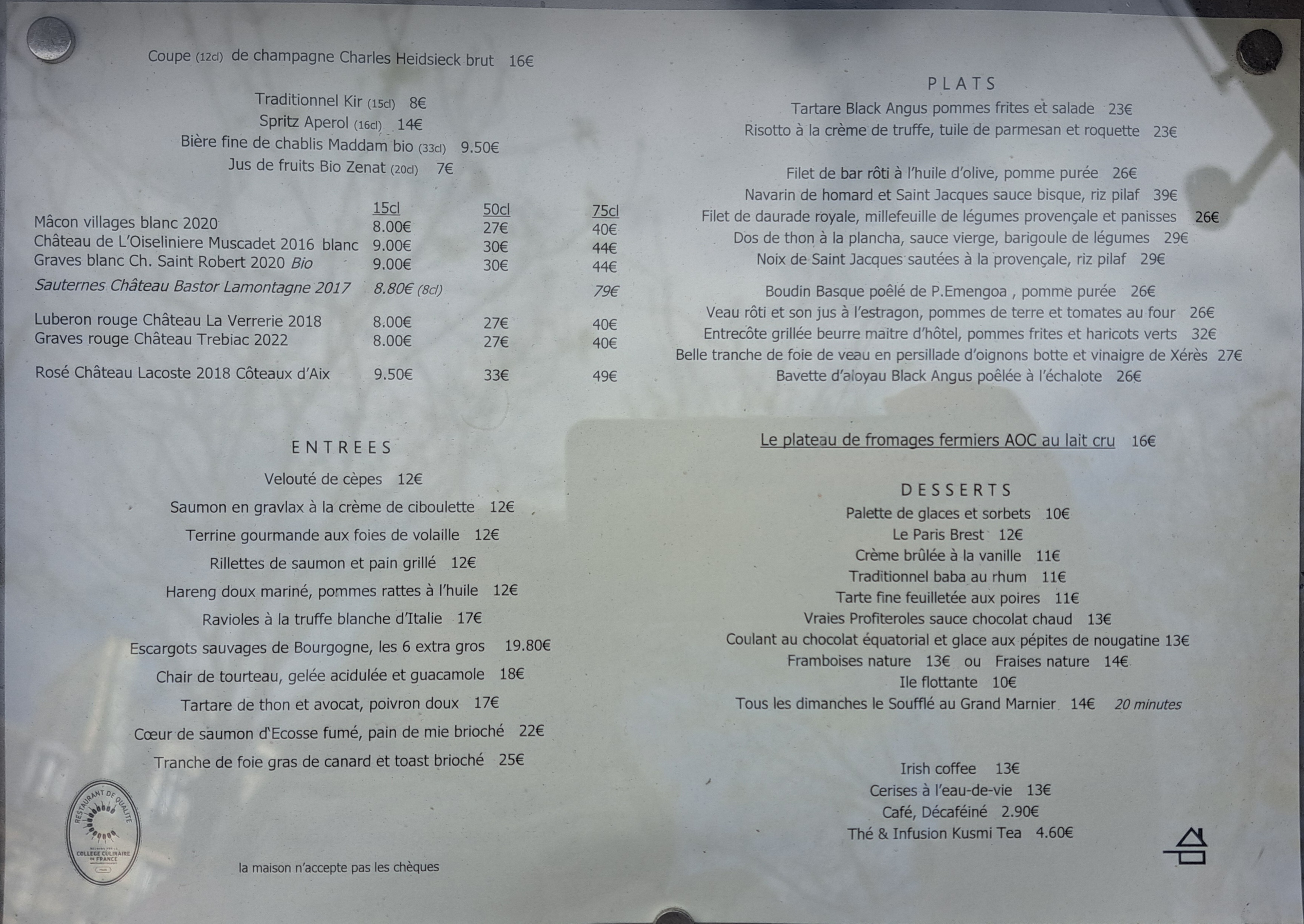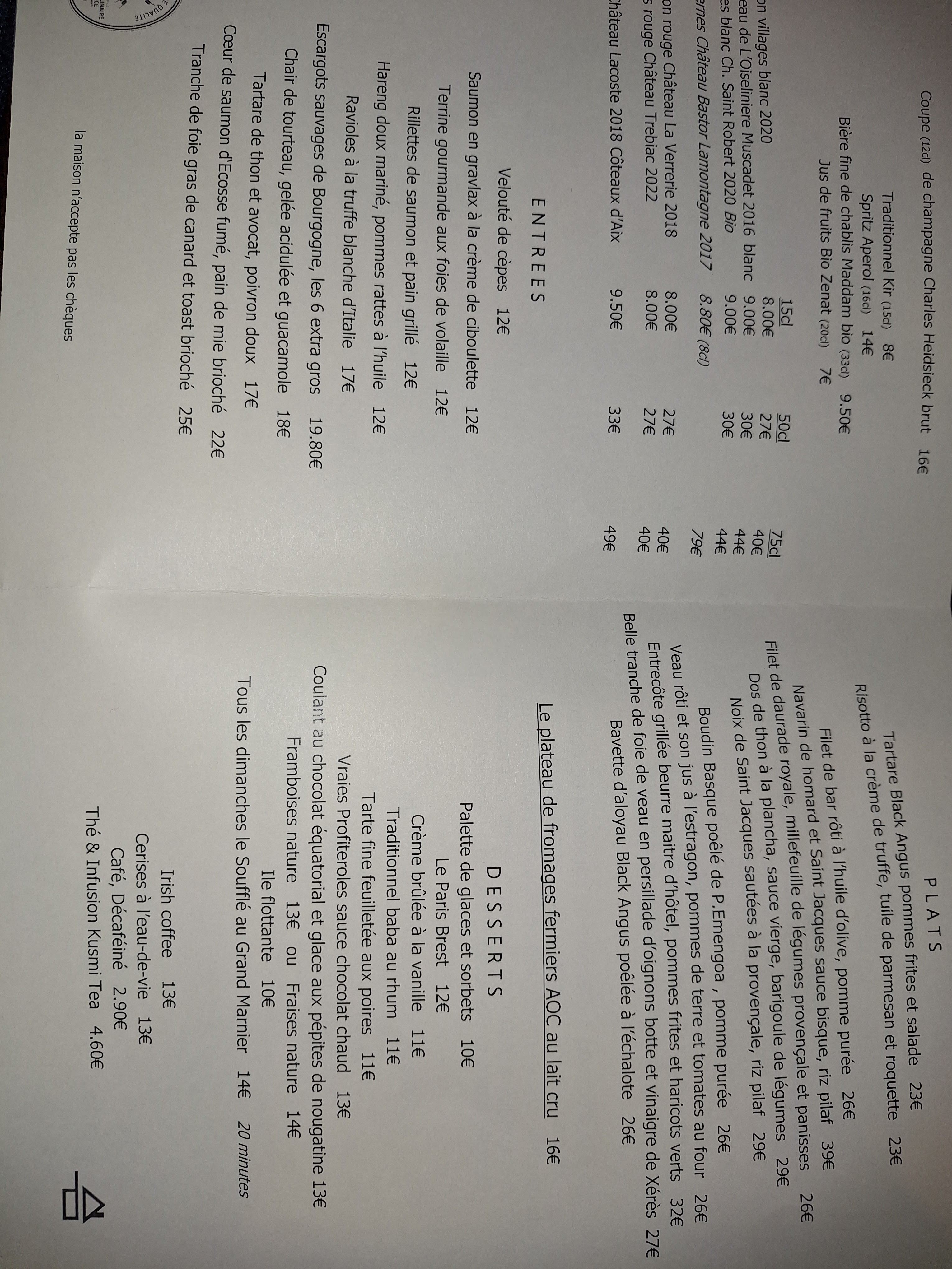 Cadre magnifique, plats fins et gourmets. Personnel présent et discret. Petit péché mignon : le délicieux Paris-Brest 😋 Je recommande!
