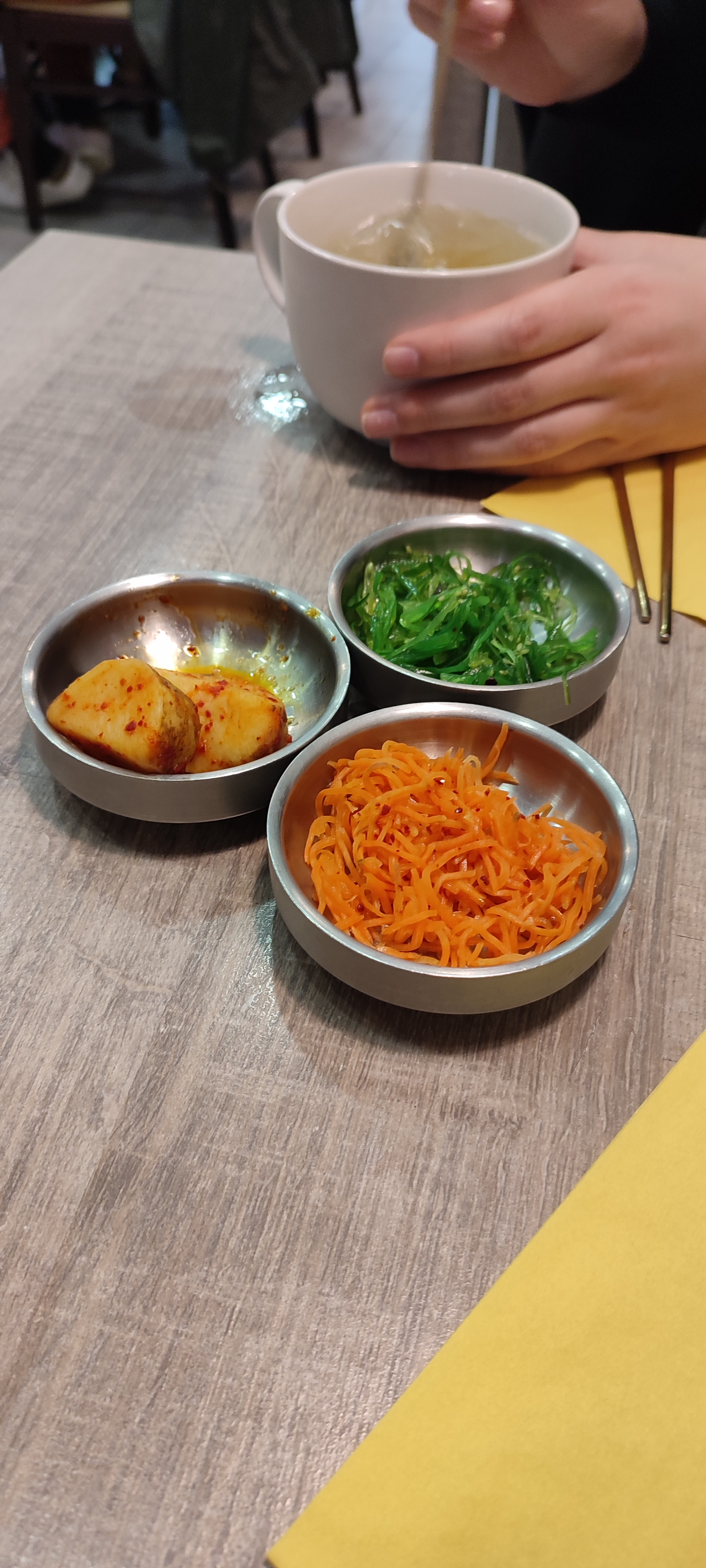 Moi qui suis difficile et grande mangeuse j'en ai eu pour mon compte ! Dès le début, ils vous servent un assortiment d’apéritifs coréen succulent. Ensuite nous avons attendu pile assez de temps pour finir les apéritifs que l'on nous a apportés les entrées, un timing parfait ! c'était raffiné et cuisiné à la perfection. Et enfin le plat principal : une merveille ! Tous les plats sont décrit, et il y a le nombre de piments affichés pour savoir comment est épicé le plat, pas de panique il y en a pour tous les goûts puisque certains plats ne sont pas du tout épicé. Mention spéciale pour la boisson au yuzu et miel qui était à tomber. Une grande majorité des plats sont adaptable pour les végétariens et ce n'est pas rien. Les serveurs étaient très gentils et serviable ! Pour avoir déjà été en Corée du Sud, les goûts sont là, la présentation aussi, les quantités sont très bonne et les prix sont corrects. Je recommande sans hésiter ce restaurant, le meilleur restaurant coréen de Grenoble selon moi !