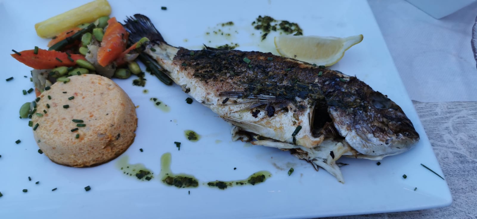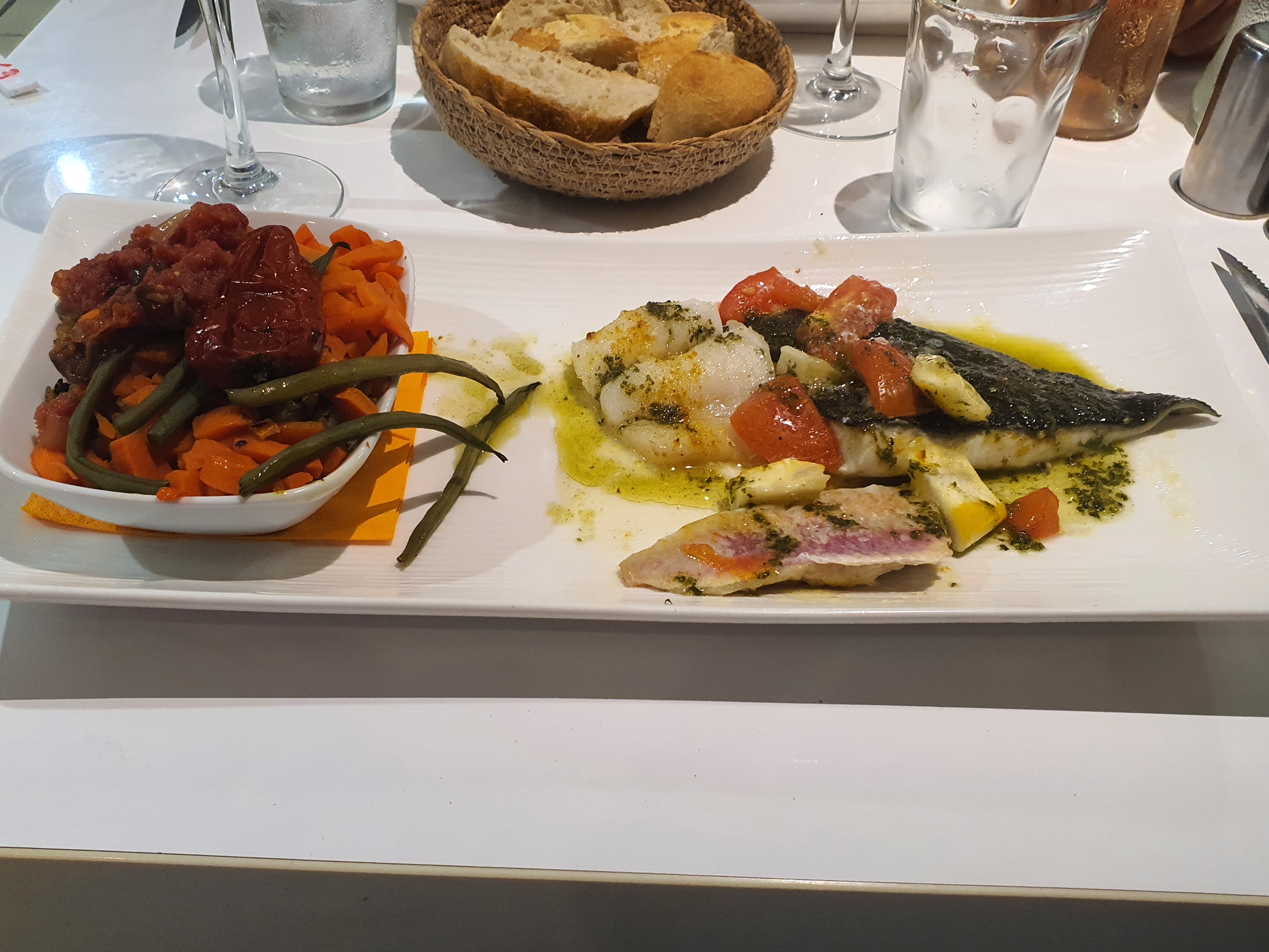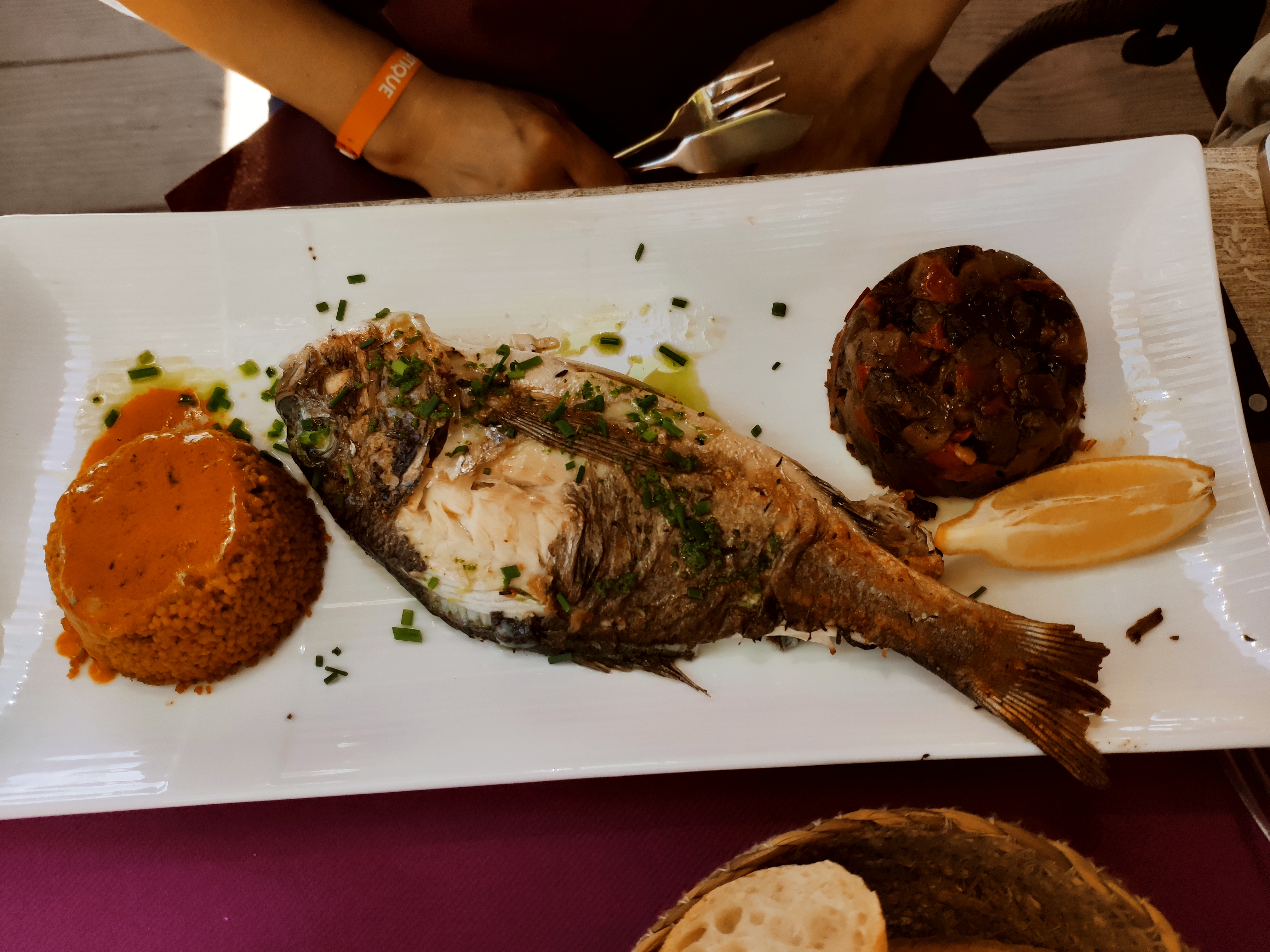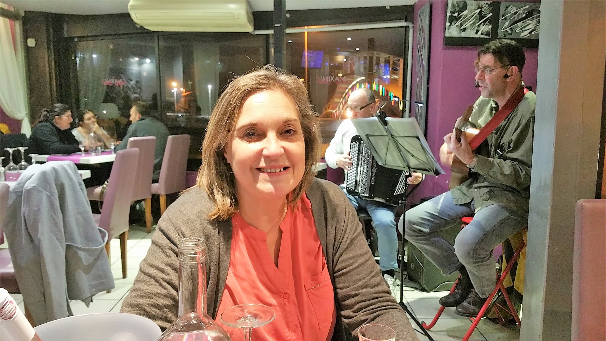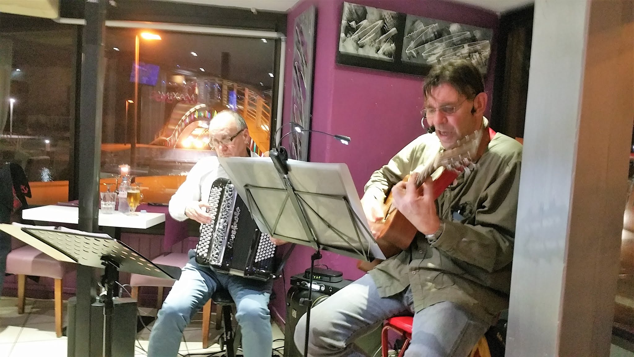 Super Restaurant, un Vrai Régal, tout était Frais, le Loup sublimement Grillé. Accompagné par la musique de Franck à l'Accordéon électronique, et de Fred à la Guitare et au Chant.....Merci pour ce Super Moment....
