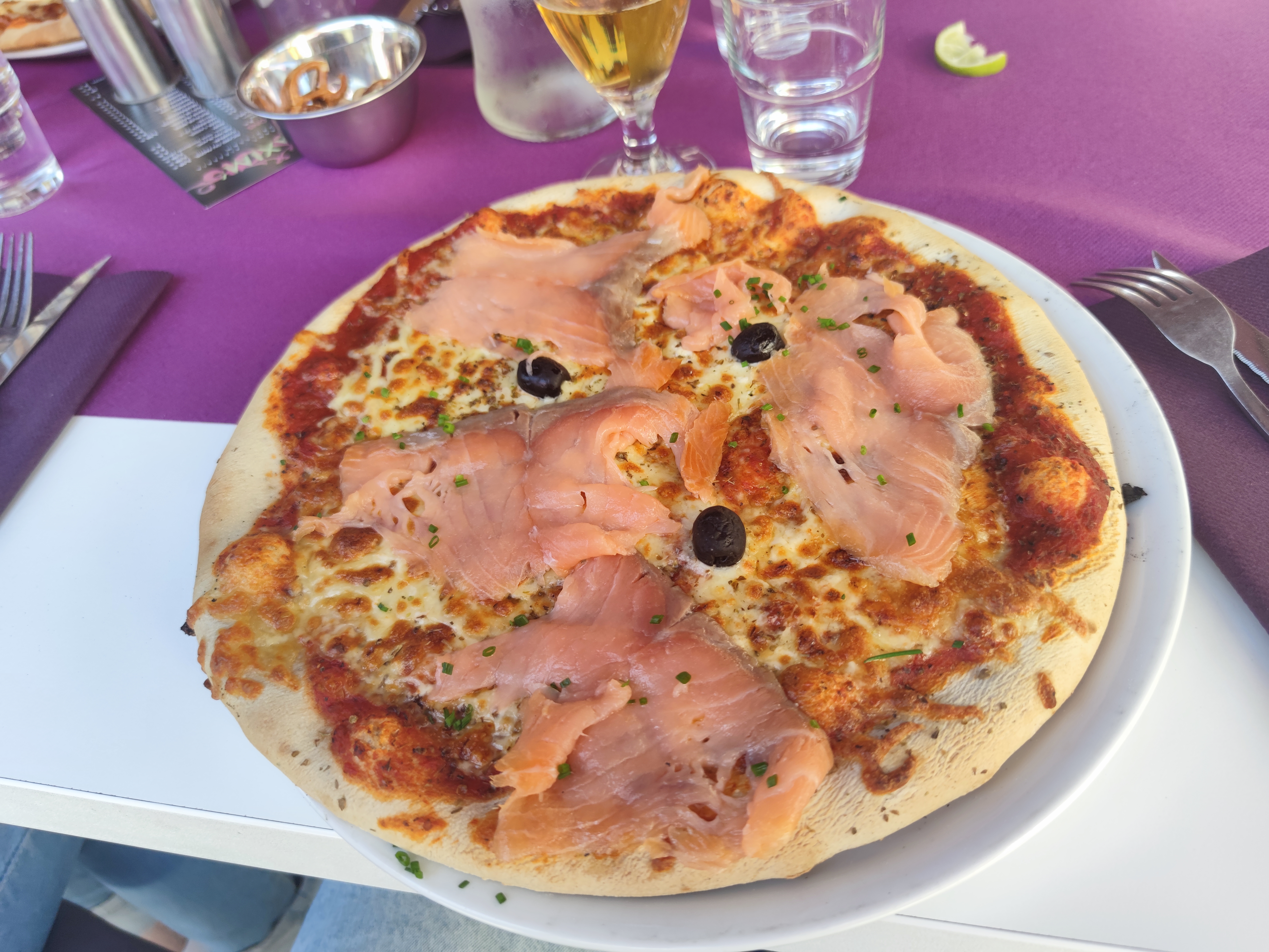 Nous avons pris deux pizzas une aux anchois et une au saumon et elle était vraiment trop salé. La pâte était dur et rappeuse au palais. Nous ne les avons pas terminé. Le personnel est accueillant et le cadre sympa.