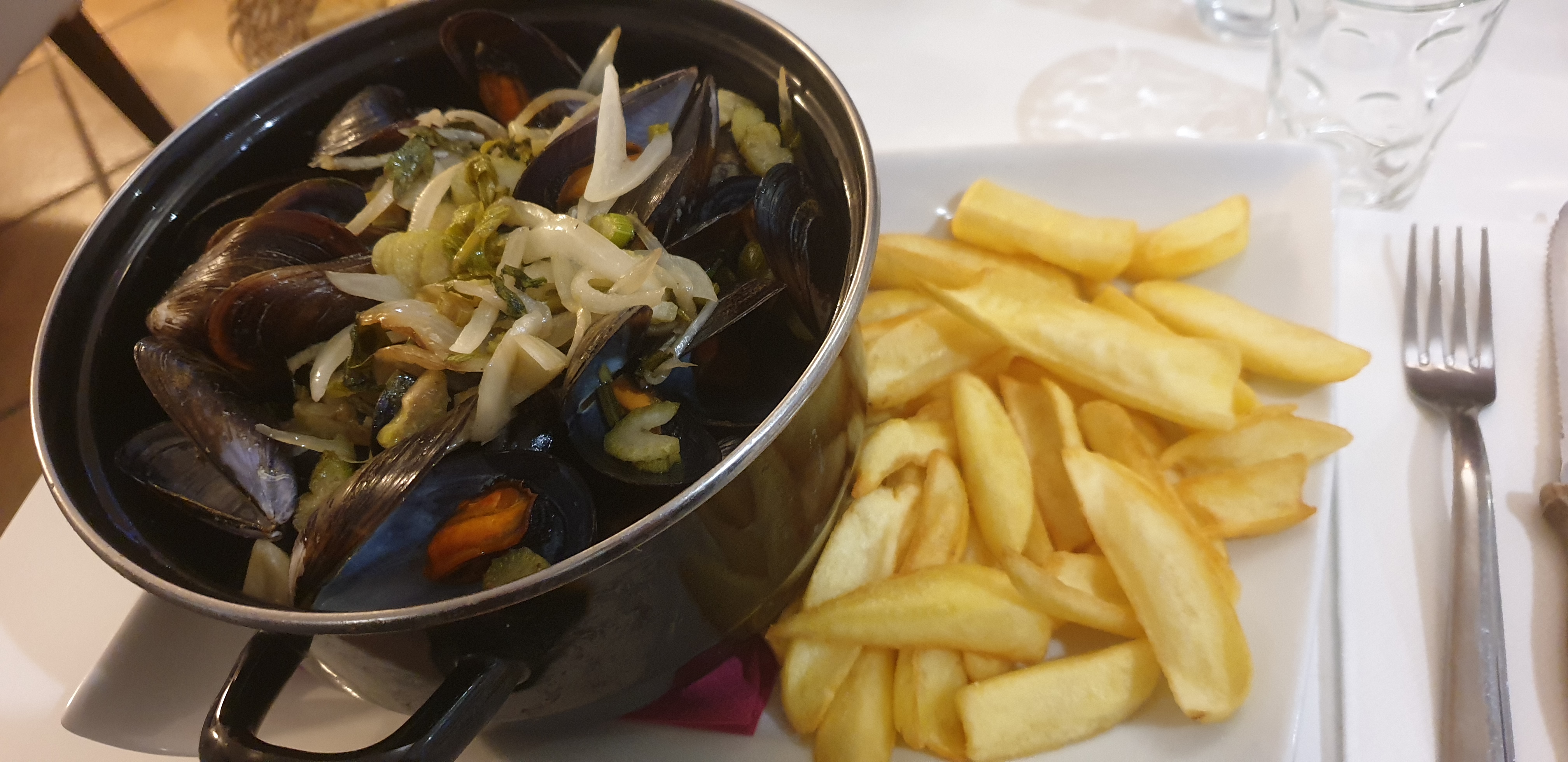 Moules marinières MINUSCULES, et infectes, insipides Service parfait Un conseil: changez de fournisseurs ...et ..de cuisinier!