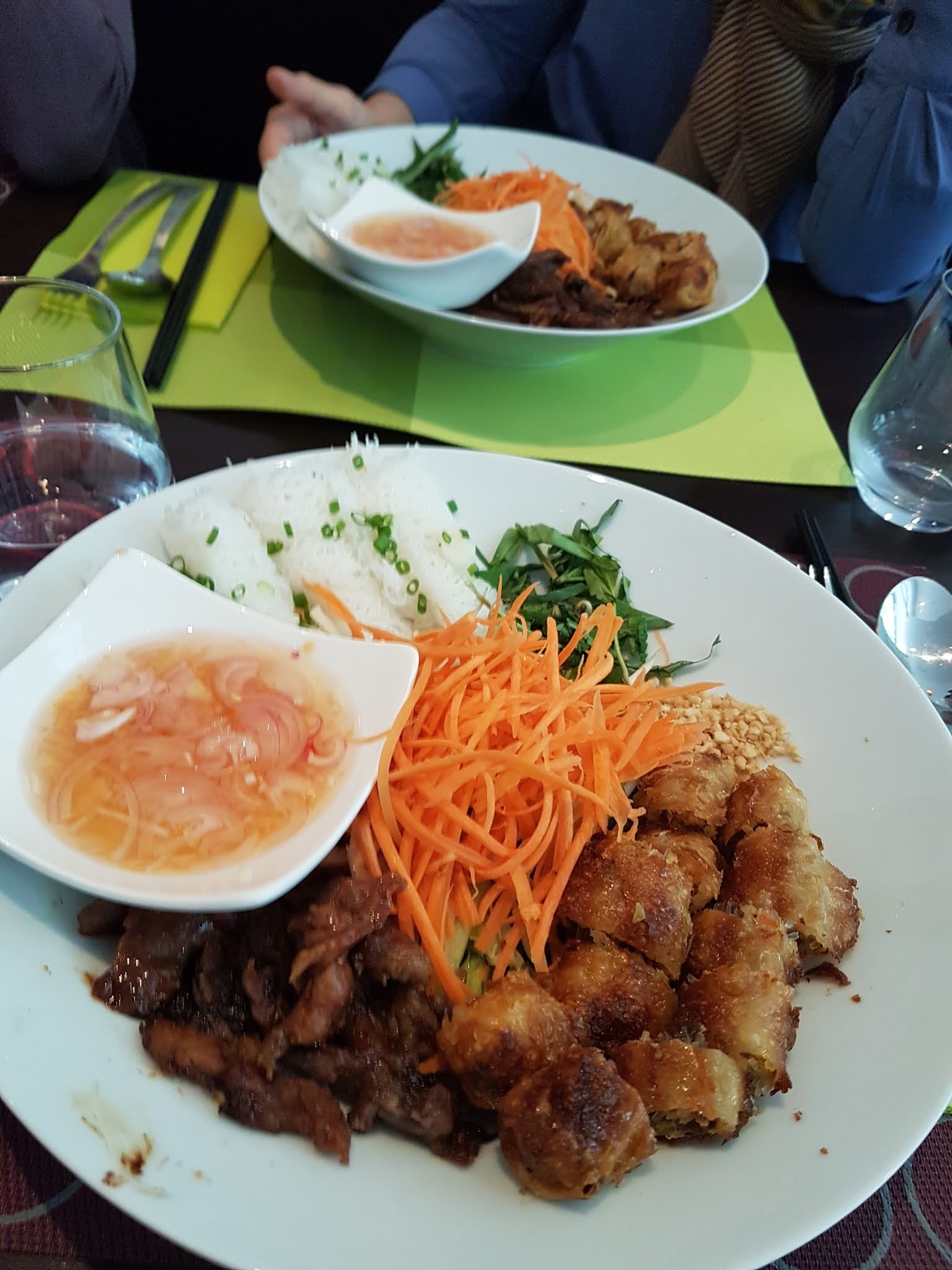 Salade bo bun excellente et assez rare, servie avec les ingrédients a assembler. Ce n'est pas le restaurant asiatique le moins cher, mais la qualité est au rendez-vous. En fonction de la commande le temps d'attente peut être assez long.