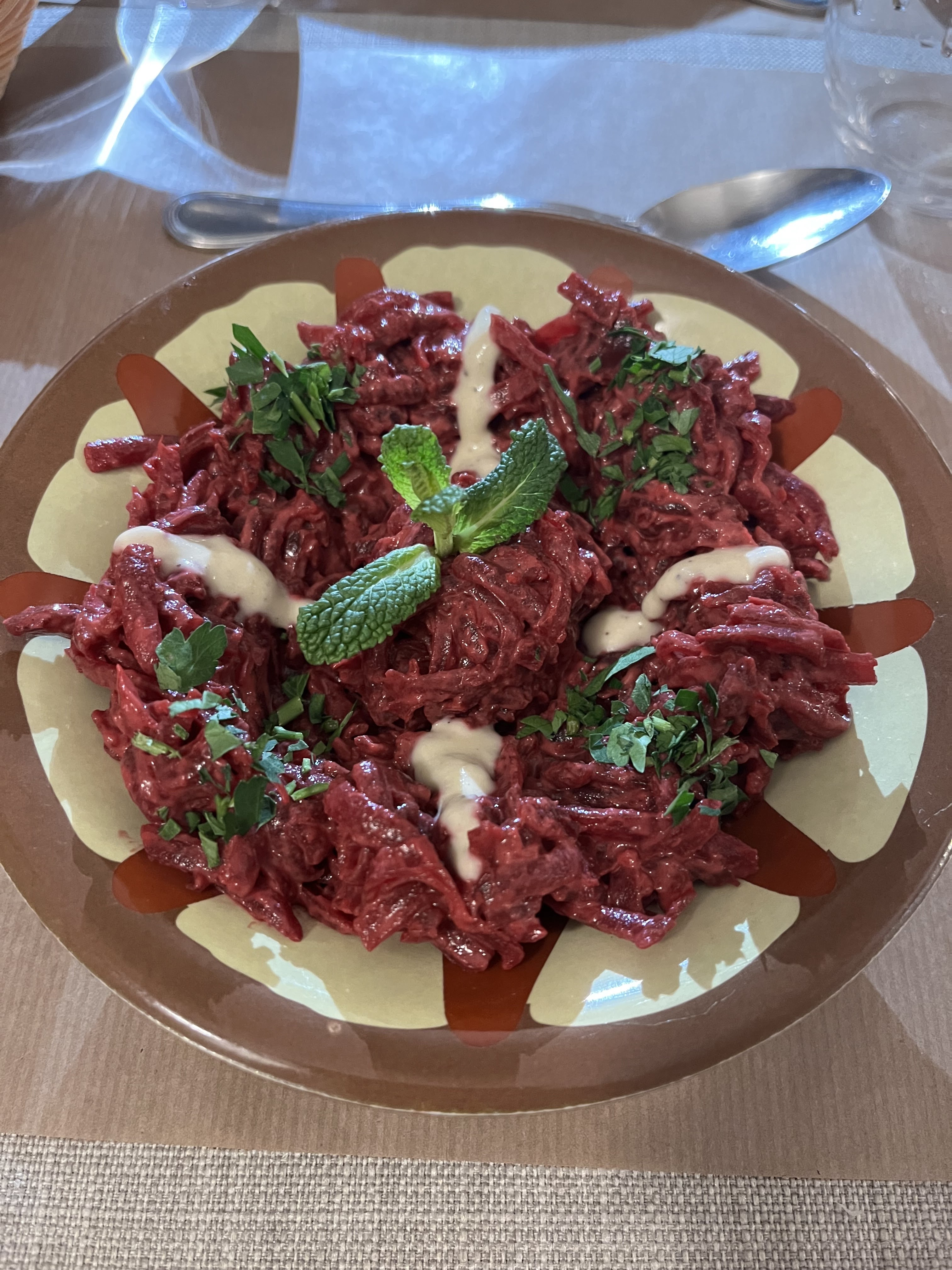Clients réguliers depuis quelques temps nous apprécions leur cuisine toute faite maison et la gentillesse du personnel. Le jardin intérieur est plaisant lors des journées ensoleillées. À l’occasion d’un plat du jour un midi ils m’ont même proposé un deuxième service une fois. Je recommande la Haroura en entrée froide, très bonne découverte. En photo l’entrée Shawandar.