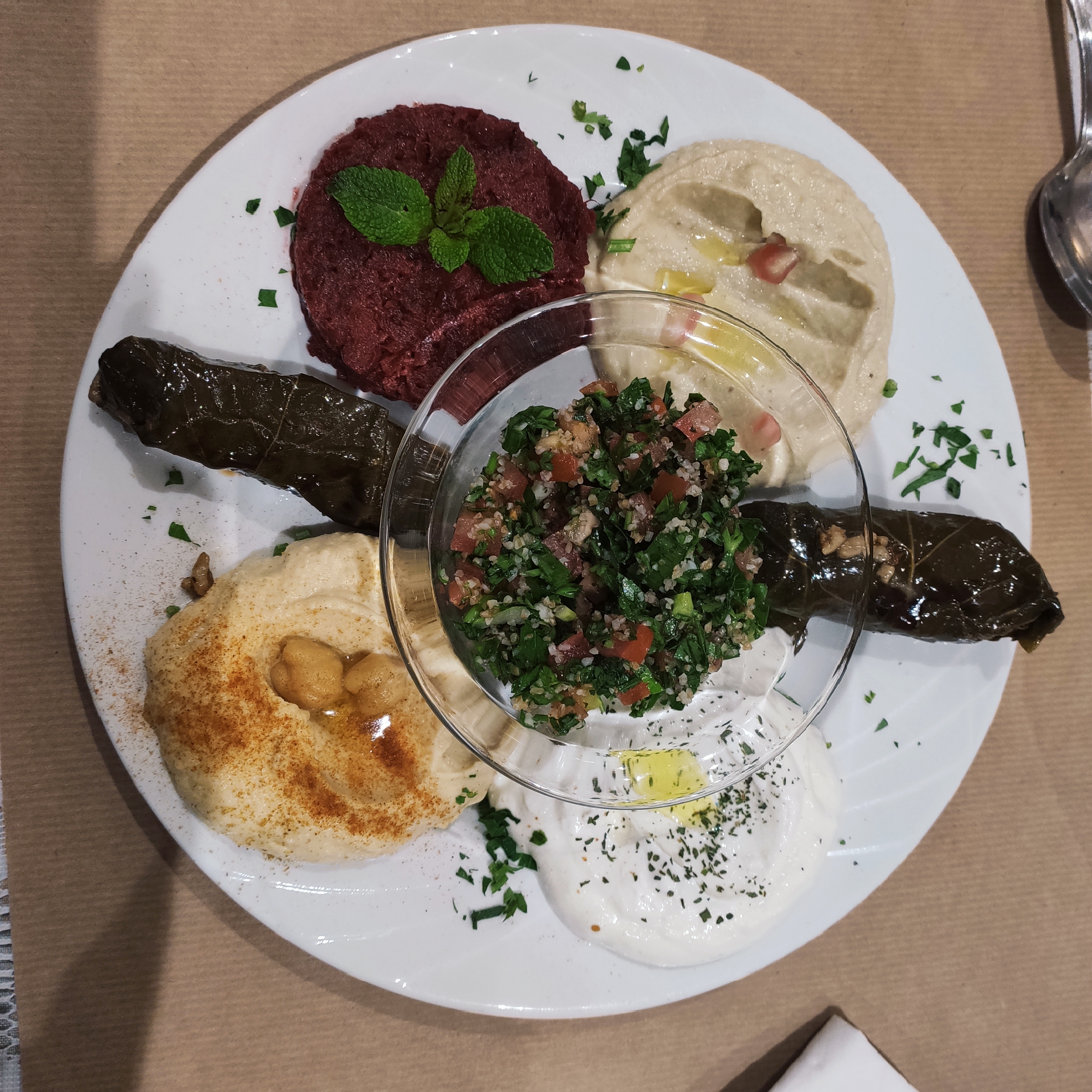 Une farandole de saveur avec des produits frais venus pour quelques uns du pays d origine. Je recommande pour celles et ceux qui veulent découvrir des mets d Orient. Surpris agréablement pour cette première visites Le personnel de service n est pas avare d explications,discret et disponible.