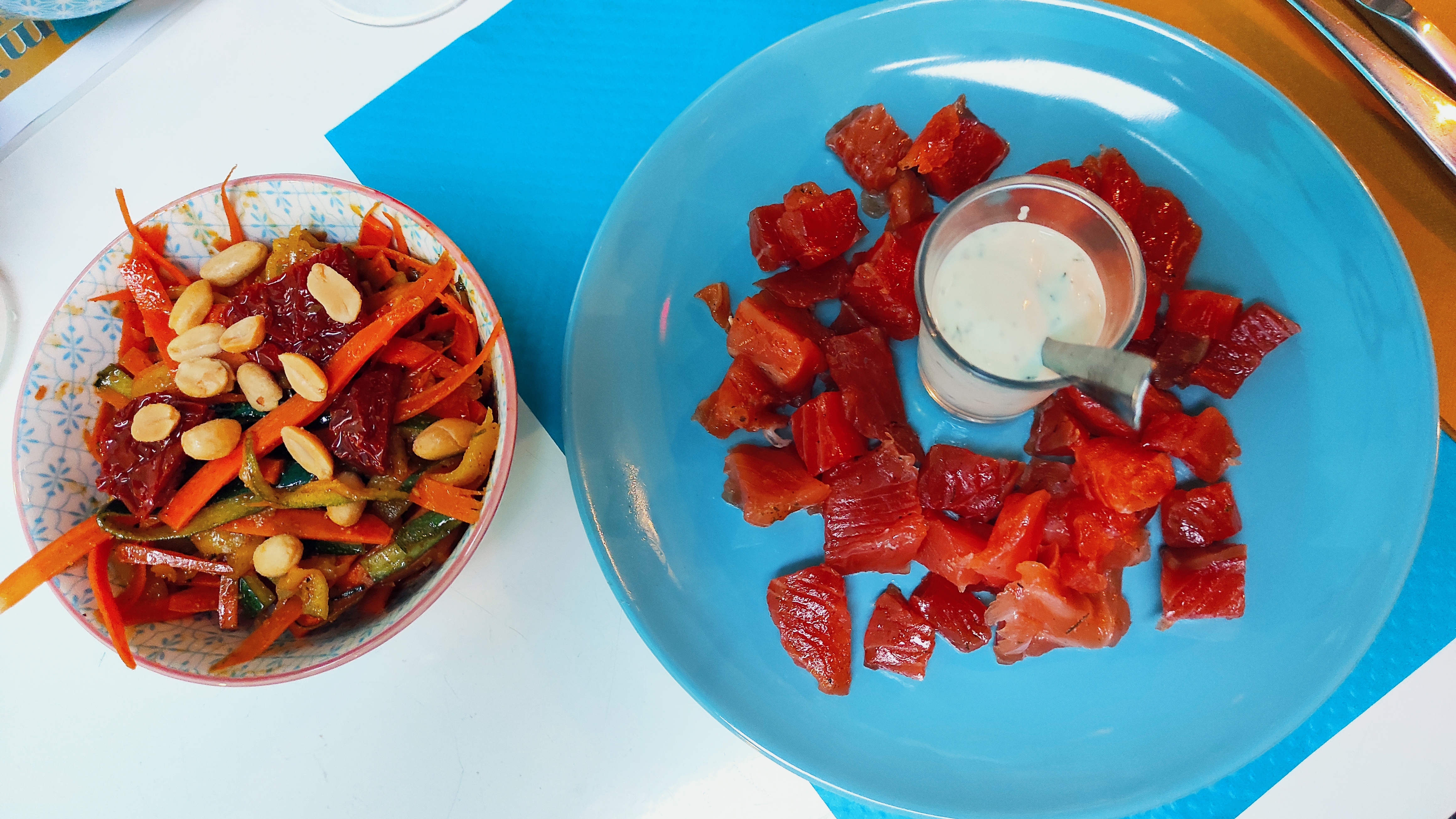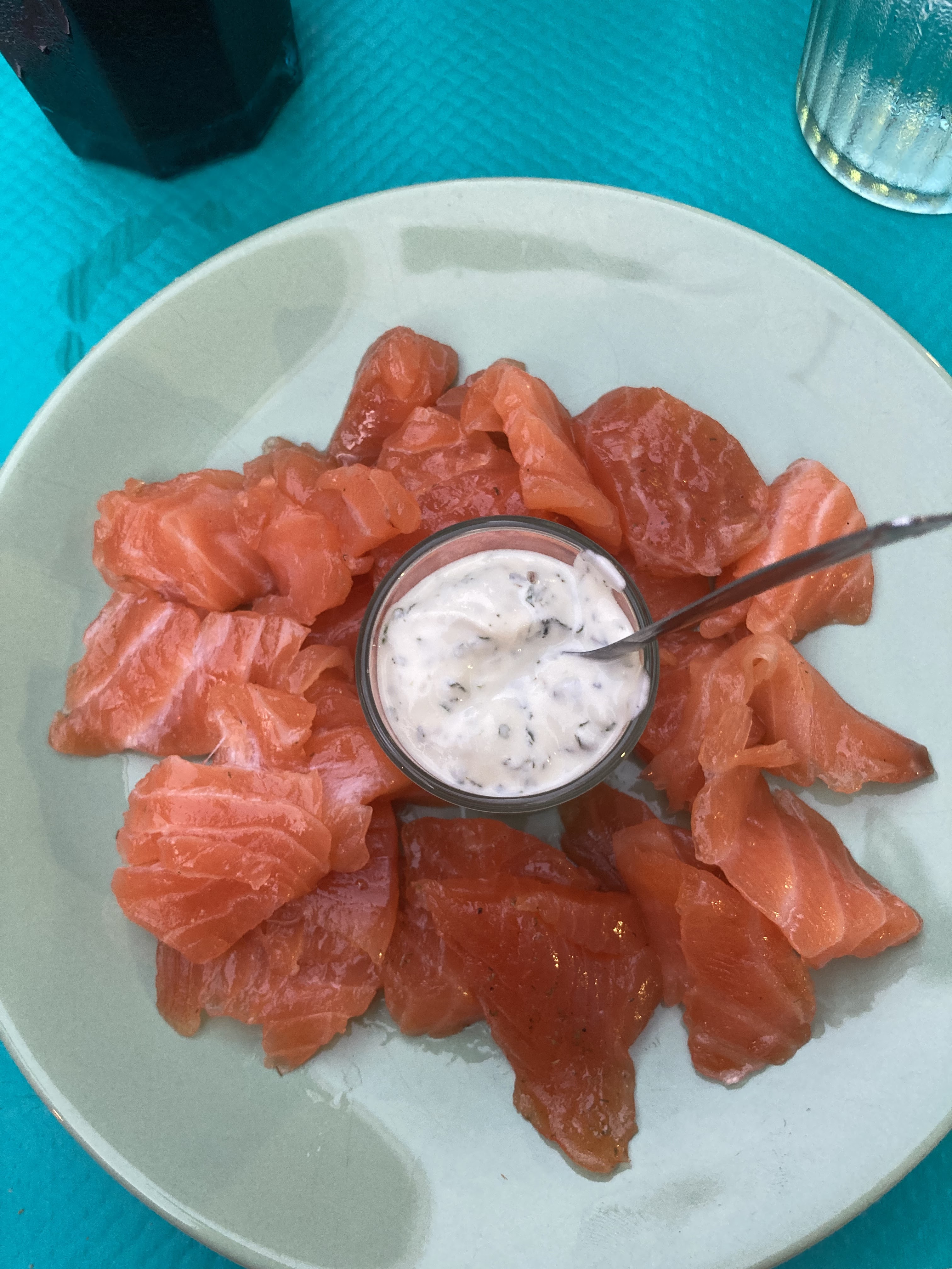 Au passage des dauphins, arrêtez-vous dans ce restaurant où la cuisine est fraîche et savoureuse ! Nous avons apprécié le plat du jour (Gravlax de saumon et pomme de terre persillées) mais aussi la sympathie et la gentillesse du patron … Merci beaucoup 😊 (les 2 filles du Nord)