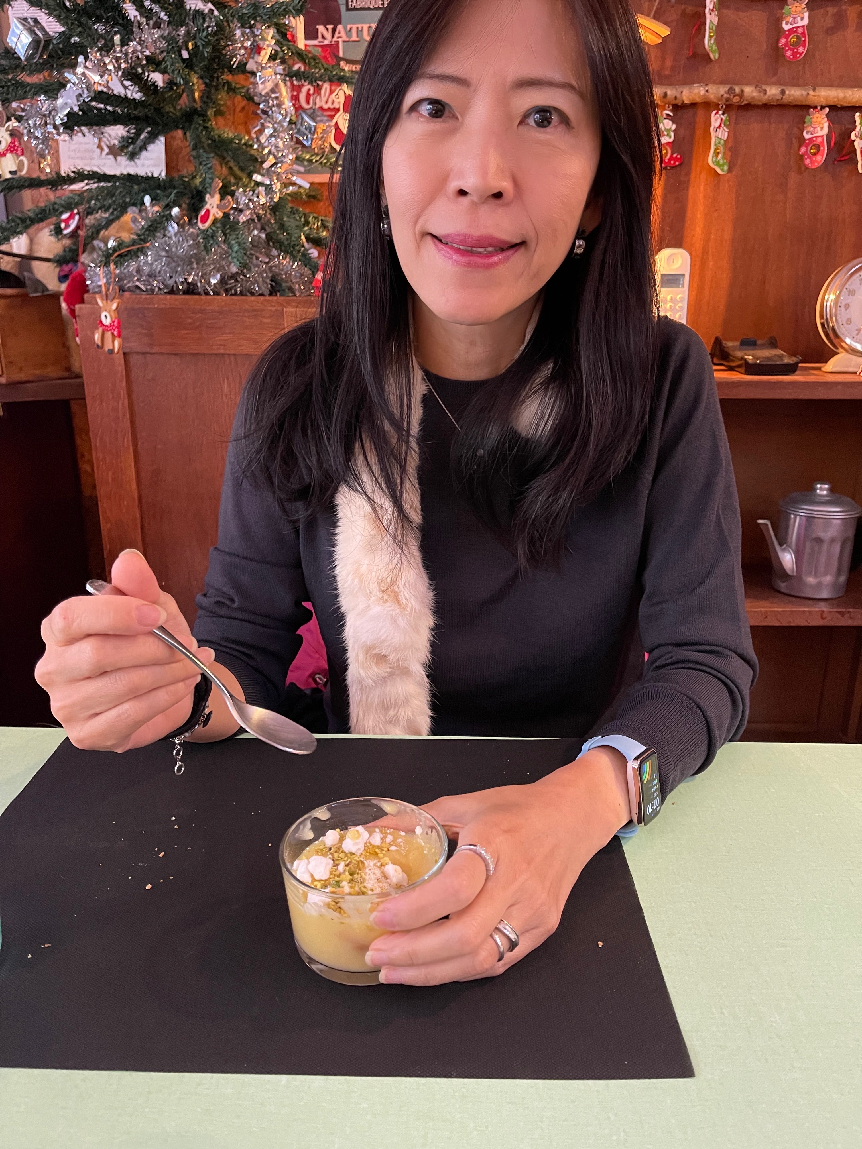 Une déco, un accueil, une bonne table, une ambiance professionnelle et chaleureuse et une note douce…envie d’y retourner pour goûter d’autres mets!