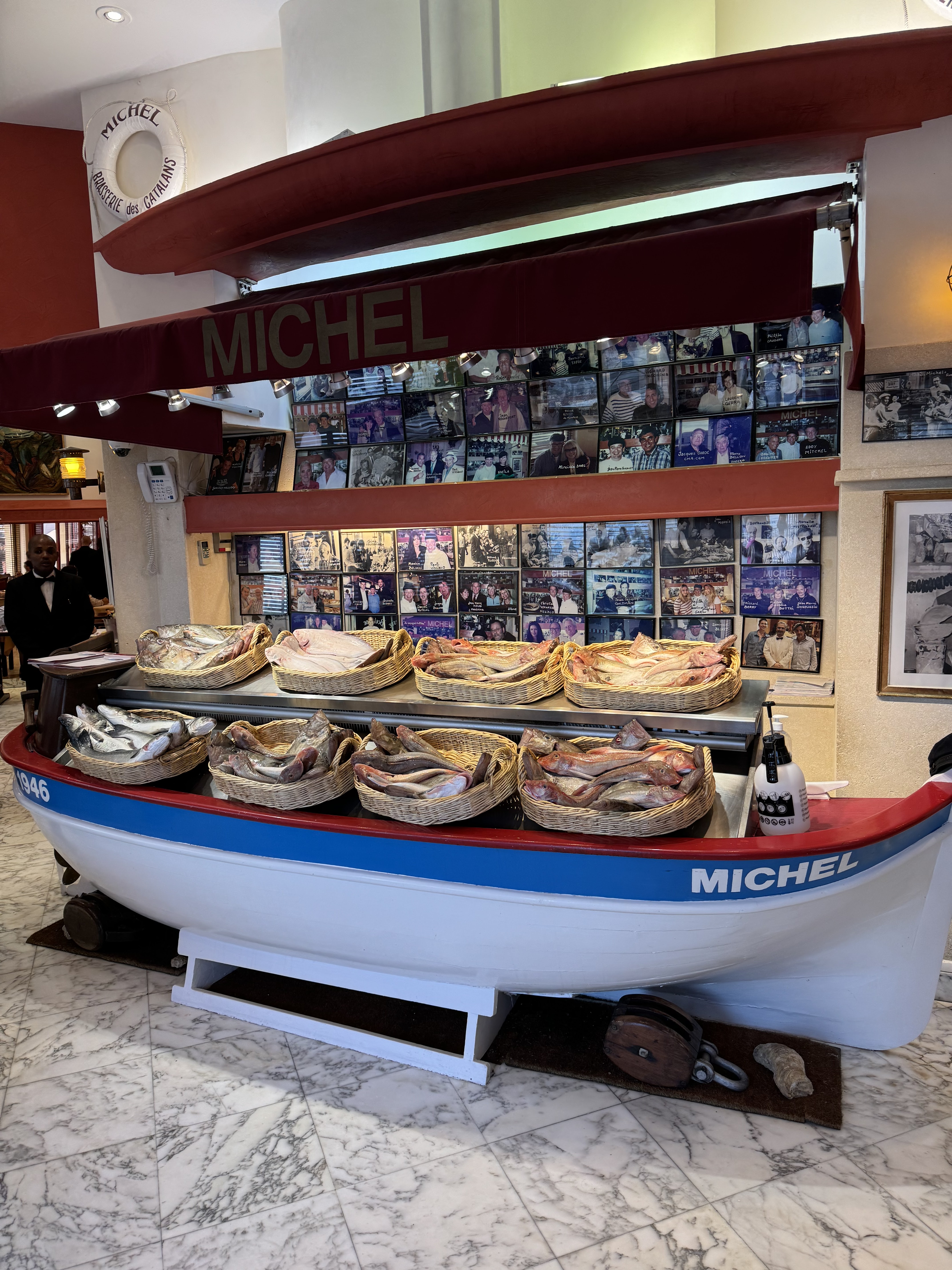Accueil désagréable .pas chaleureux . Patron arrogant , impoli ne saluant pas , ,dédaigneux ., Croûtons de pain peu attirants semblant être des récupérations de restes mélangés , cassés de toutes sortes et vieux... présentation n’encourageant pas la dégustation! Préparation des poissons de la bouillabaisse, dans notre dos , par un serveur sale , négligé ,(accompagné de notre serveur (le plus sympathique) en costume écru )normalement cela se fait face au client ! Au moment de l’addition , notre 1/2 bouteille de vin était facturée , au prix d’une grande ! C’etait La deuxième fois que nous allions chez Michel . Au final c’est cher pour une telle prestation décevante . Nous n’y retournerons pas