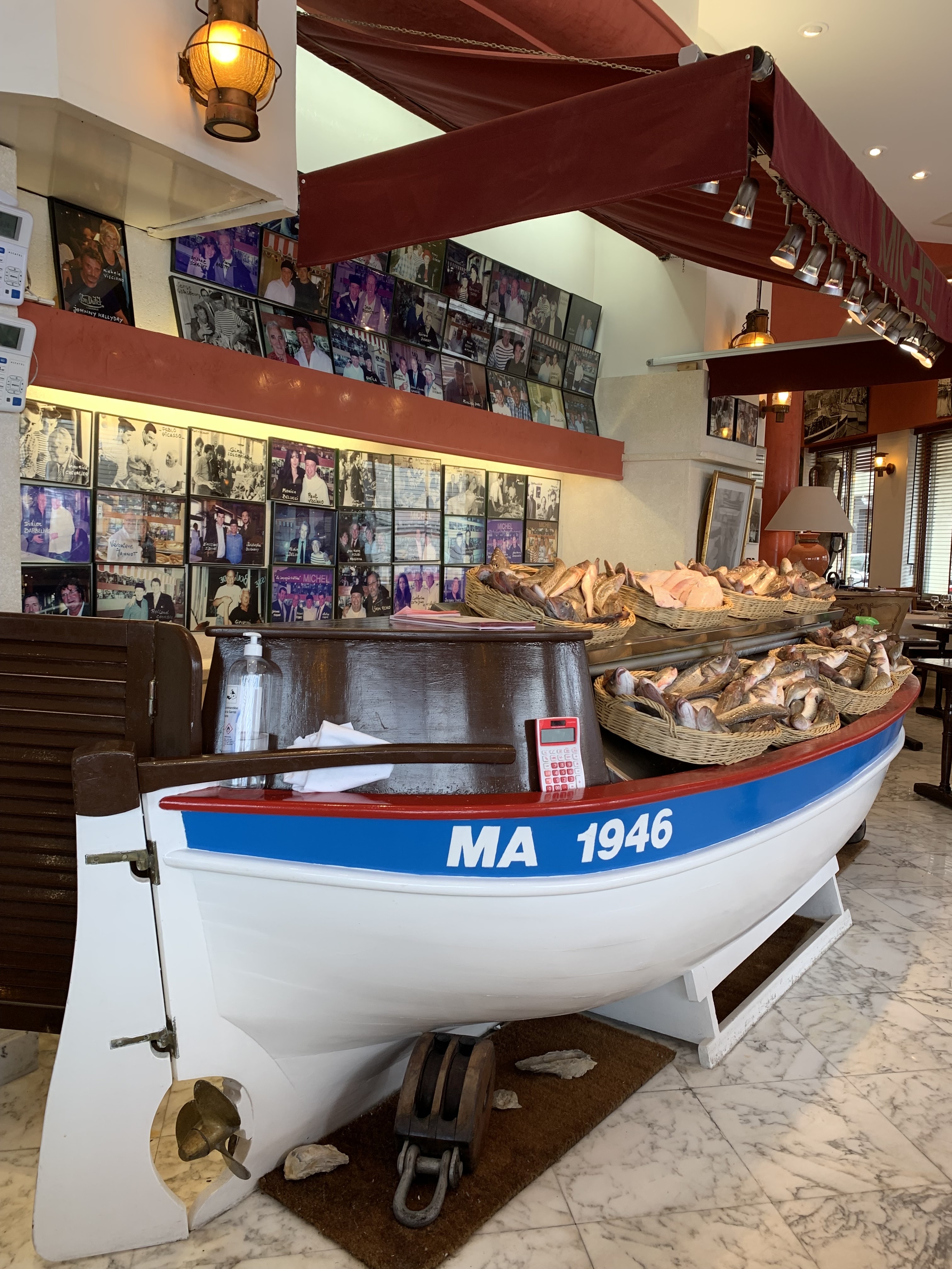 Je pense que ce restaurant joue sur sa réputation. Bonne bouillabaisse mais seulement 1 poisson noble : le ST PIERRE, les autres, rascasse, vive, galinette ne cassent pas des briques la soupe est très granuleuse. Pourquoi payer un pastis 10 euros, une bière 1664 25 cl : 7 euros, un vin MINUTY (très bon mais à 50 euros les 75 cl alors que dans tous les restaurants il est entre 25 et 30 euros). Je trouve leur tarif très élevè pour la prestation. Pour le dessert à 10 euros on a droit à 2 boules de glace et supplément pour la chantilly de 2 euros, très mesquin à mon avis. Je crois que si j'avais cherché un peu plus j'aurais eu mieux pour bien moins cher. Ce restaurant a une réputation depuis 1946 et il joue fortement dessus, ce ne sont pas les photos des acteurs connus qui font baisser l'addition.
