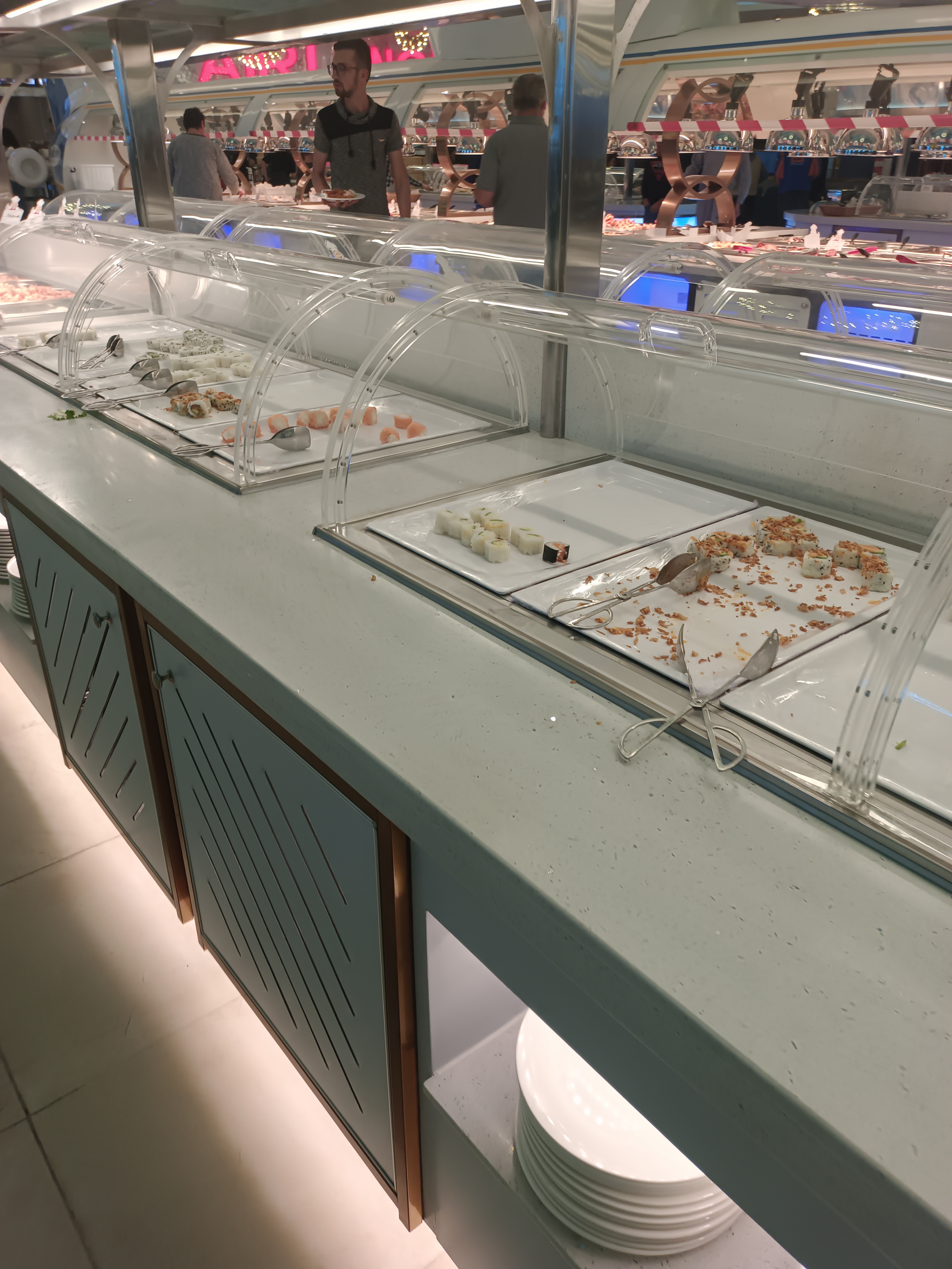 Sympa, choix +++ mais bcp de monde surtout le passage à la caisse trop d attente ! En tous cas bcp de choix autant en poissons, entrée, viandes, nems etc etc.... Super