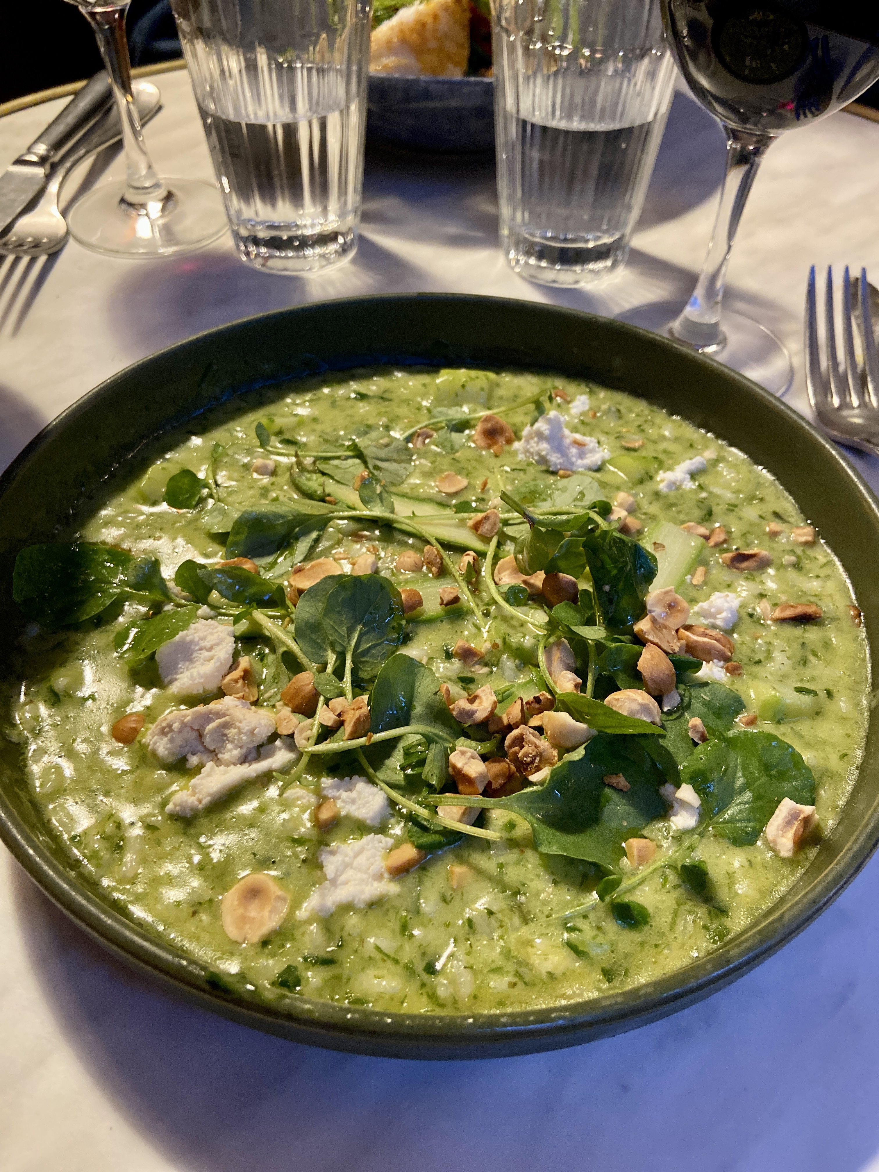 Mention spéciale au service ultra sympathique! Côté nourriture, certains plats étaient délicieux, notamment les gnocchis aux asperges et morilles. Par contre, les artichauts manquaient de cuisson dans mon plat d’entrée. J’y retournerais sans hésiter.