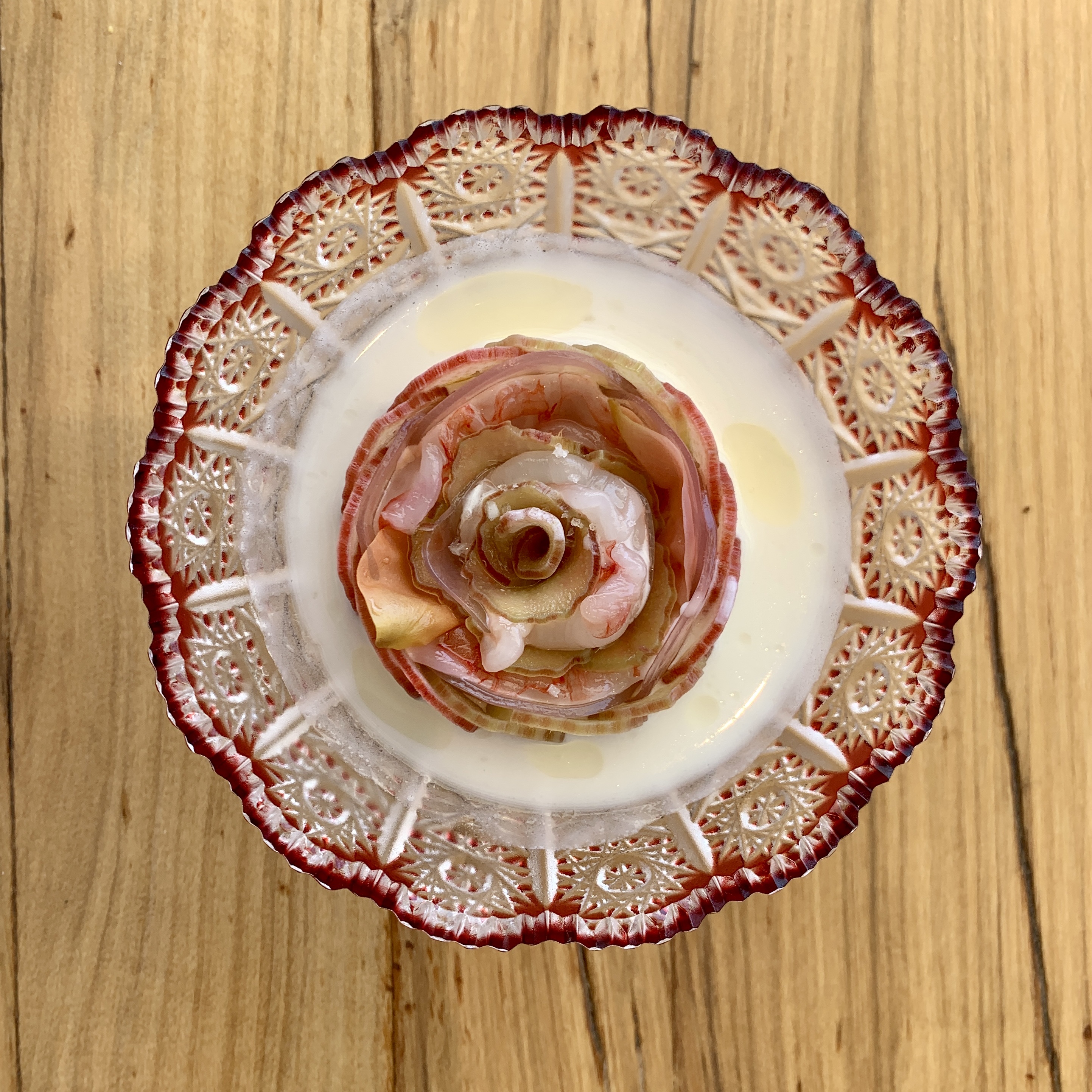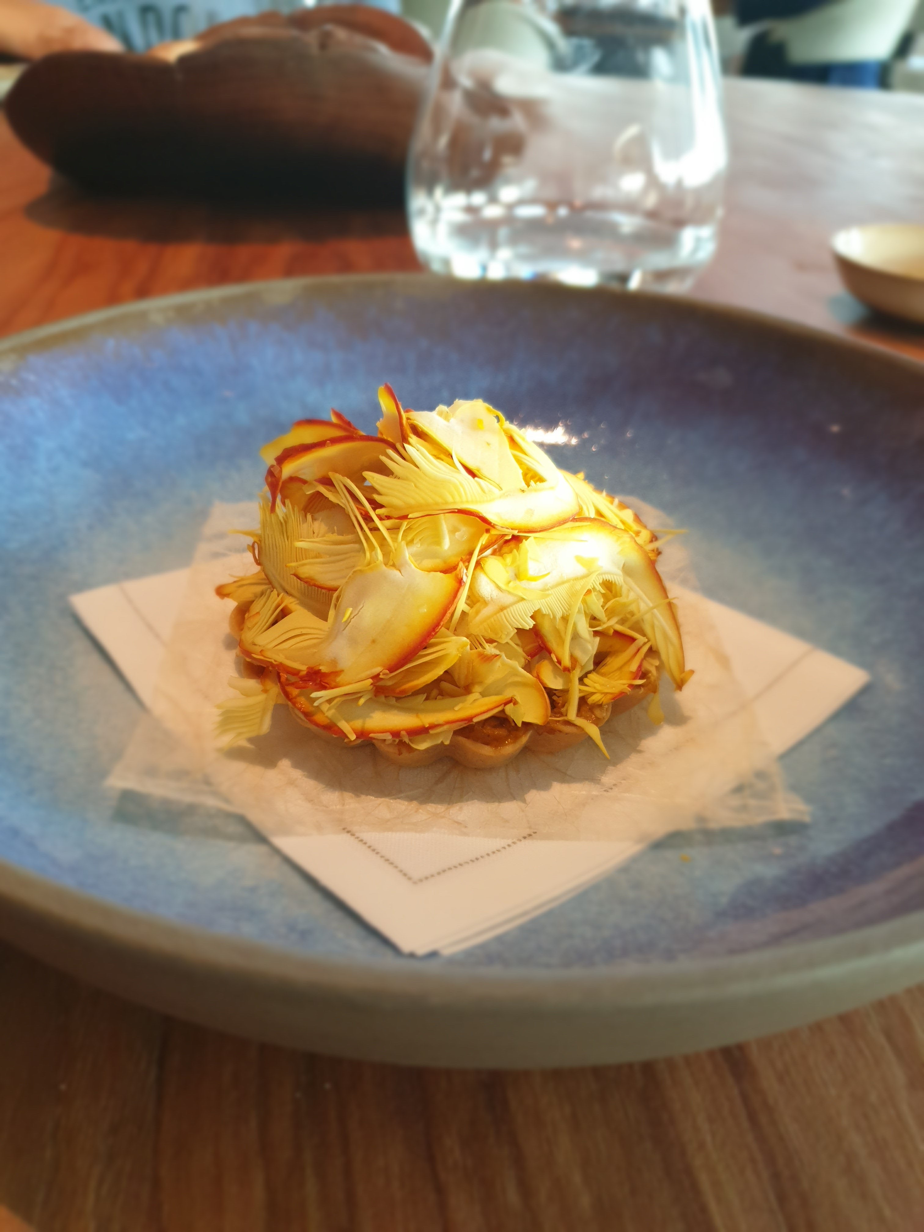 C’est donc toujours une expérience de passer la porte du « meilleur restaurant du monde ». Je l’ai vécu chez El Bulli, au Fat Duck, au Celler de Can Roca, chez Noma et maintenant chez Mirazur. Tout le monde fait une photo devant l’enseigne à l’entrée ! Et évidemment on a des attentes très hautes. On comparera tout à d’autres expériences gastronomiques « pour voir si » c’est vraiment meilleur ou plus époustouflant ou plus mémorable. Est ce que ça vaut vraiment cette place aussi enviée que controversée. Donc il faut se méfier de la fausse déception qui consiste à trouver ça bon « mais pas aussi bien que xx ». Il faut tenter de juger ça par le bas, pas par le haut. Bilan mitigé pour Mirazur. Le chef n’était pas là. De confidence de certains membres du personnel, il est rarement là, se concentrant sur un nouveau restaurant qu’il a lancé en haut de la colline. A suivre donc. Mais probablement sans nous.