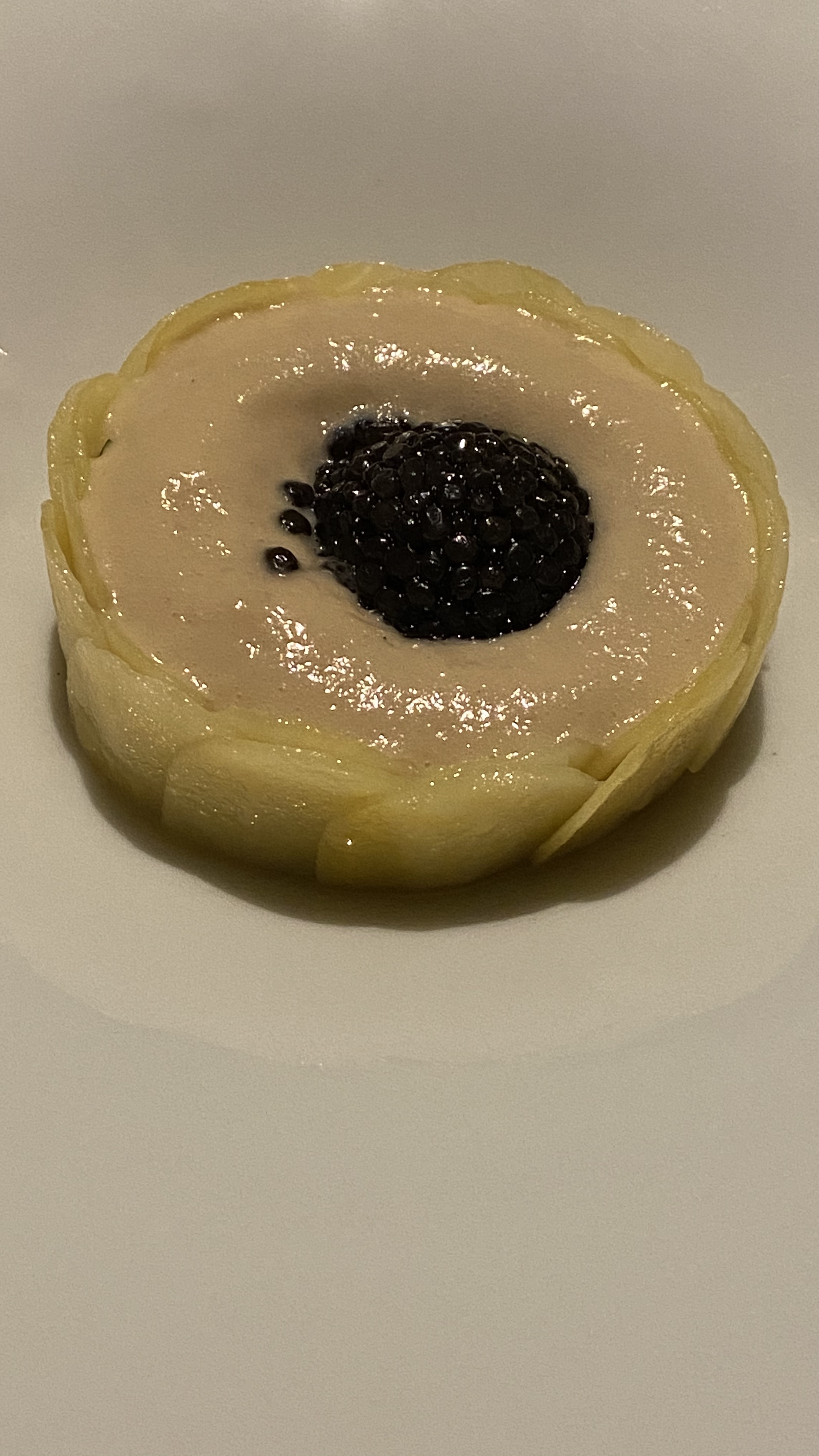 Dîner du 1er November 2019. Le chef n’était pas là. Forcément l’attente est forte et donc le degré d’exigence aussi. Mais notre expérience est plus que mitigée. Commençons par le positif. Le service au global, de vrais plats coup de cœur (les amuses bouches, le Pigeon, La Rascasse et le dessert à base d’amande), un large choix de vin pour tout les budgets. Pour les points négatifs... A peine arrivé les deux premiers contacts que l’on a (après avoir commandé l’eau) est la proposition de deux plats en supplément... Caviar et Mafalda à la truffe blanche... on tente le 1er sur conseil du serveur (du vendeur!) un chacun avec un blini de 12 cm de large et 2 cm d’épaisseur que l’on regrettera d’avoir mangé tellement il nous a rempli le ventre... un pour deux aurait largement suffit... et on aurait apprécié ce conseil! Lors de la dégustation de caviar la serveuse vient nous dire “j’ai eu la chance de visiter lundi la ou c’est fabriqué... bon je ne vous cache pas que c’est un peu gore de voir comment ils tuent le poisson et comment le caviar est récolté...” pas très intelligent alors que nous dégustions le plat... Autre déception le Caviar proposé ... euh plutôt vendu était déjà à la carte dans un autre plat... donc pas forcément impératif de le découvrir en supplément, bref la démarche commercial a prit le dessus sur l’expérience client! Pour le deuxième plat en supplément fort de notre 1ere mauvaise expérience on insiste pour partager, ce qui était amplement suffisant. Au final on a peiné à finir le reste du menu dégustation avec ces deux plats en suppléments. On est sorti avec la sensation d’avoir beaucoup trop mangé et à la suite de ce dîner, ma femme et moi avons été malade toute la nuit... Voilà, autant vous dire que l’expérience est bien en deçà de notre attente, avec le drôle de sentiment que l’on nous ait forcé la main a prendre les suppléments... ce qui nous a empêché de savourer le reste de l’expérience et nous a sans doute rendu malade. La note avec les suppléments est donc vraiment salée. Voilà on l’a fait, on ne regrette pas (quoi que...) mais on n’y retournera plus et on ne le conseillera pas.