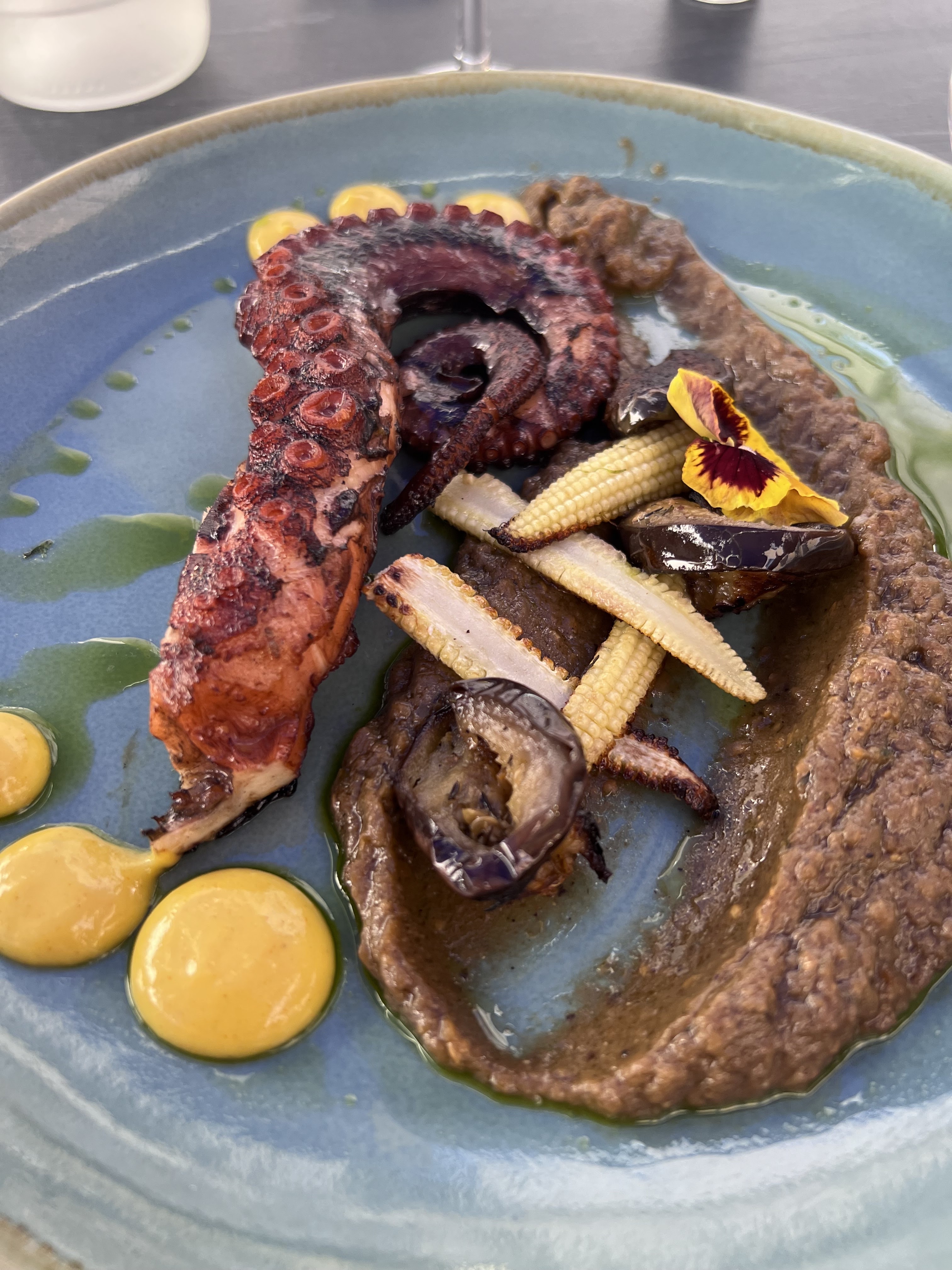 Tout en harmonie et en respect de mère terre. Une cuisine à la fois subtile et intime. Le chef donne un peu de ce qu'il est, ce qui le touche, de son histoire dans chaque plat avec cet amour de la nature et de la vie. Un beau moment de poésie pour les sens à manger en pleine conscience. Un décor minimaliste au service de l'horizon azur qui s'offre à nous. Merci !