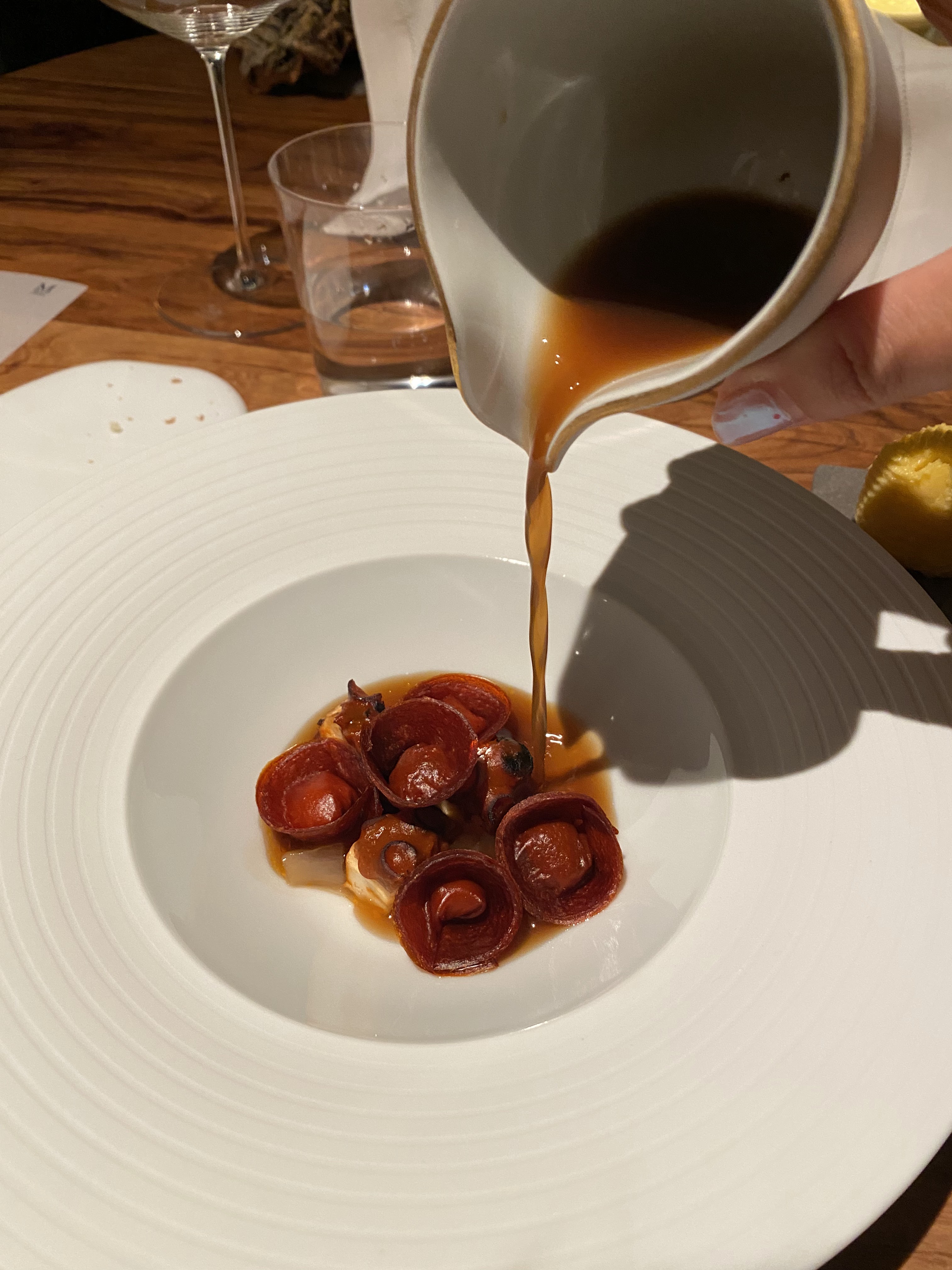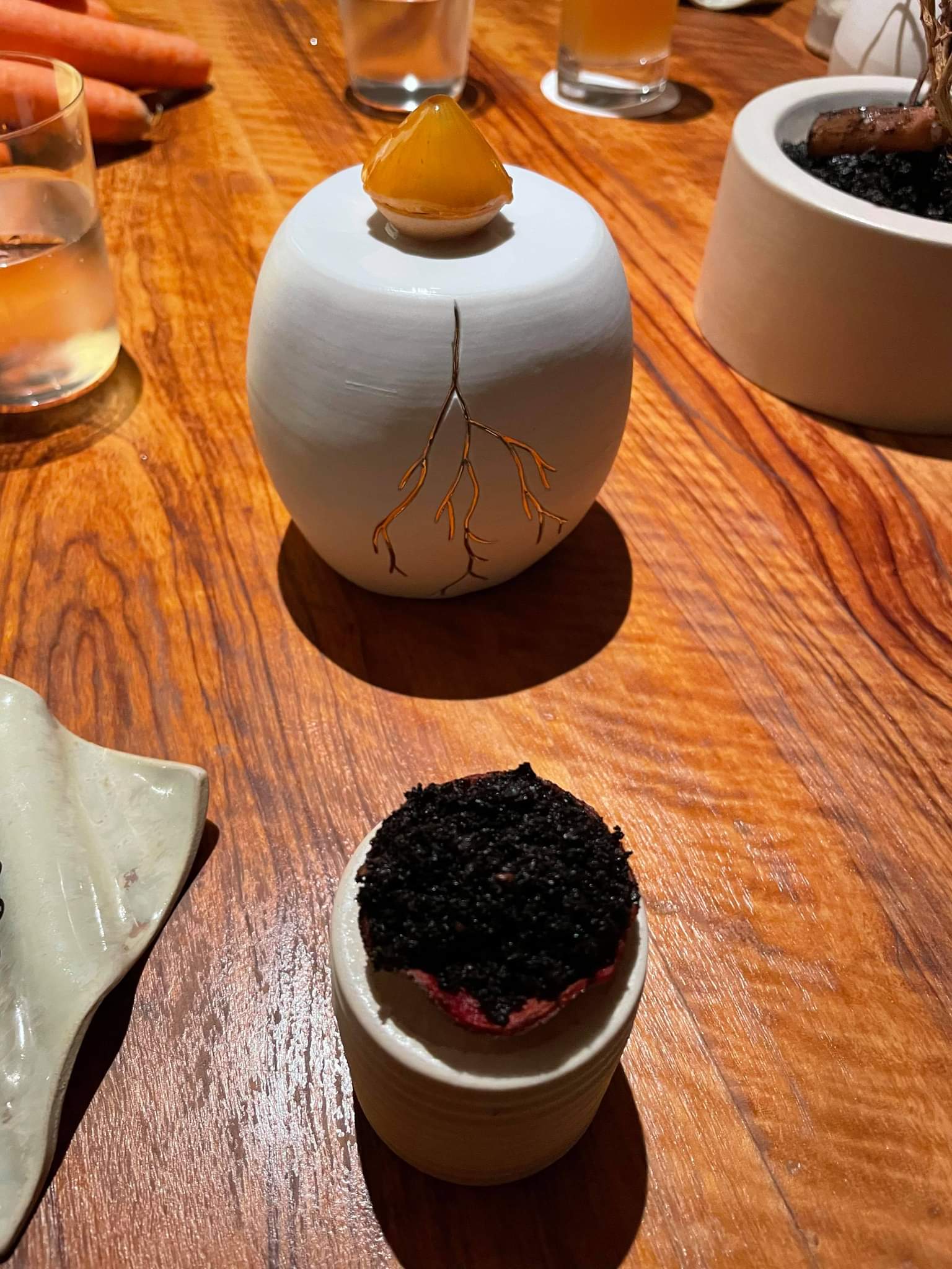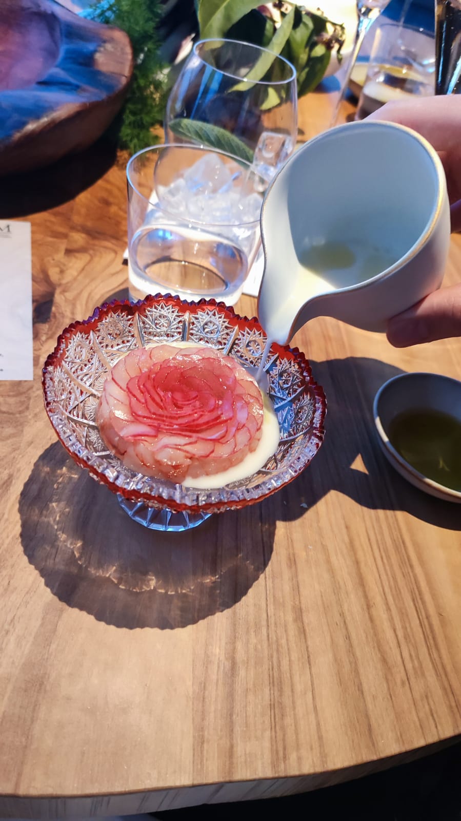 ⭐️ ⭐️ ⭐️ Que dire de plus … Nous avons commencé notre expérience par la visite d’un des jardins du chef 👨🍳, le sanctuaire, qui nous a permis de prendre la mesure de l’engagement pris dans ses cuisines. Si vous avez l’occasion de le faire, n’hésitez pas. Surprise, une eau fraîche à la mélisse nous attendait pour nous permettre de se rafraîchir au milieu de ce superbe jardin. L’accueil, les explications et les plats autour du thème « racines » sont également à la hauteur de l’établissement, mettant en avant les cuisines et toute une équipe de salle jeune mais pourtant très expérimentée. Certains trouveront que c’est cher, mais mis à l’échelle d’une vie ce n’est pas grand chose pour le meilleur chef et meilleur restaurant du monde 2019.