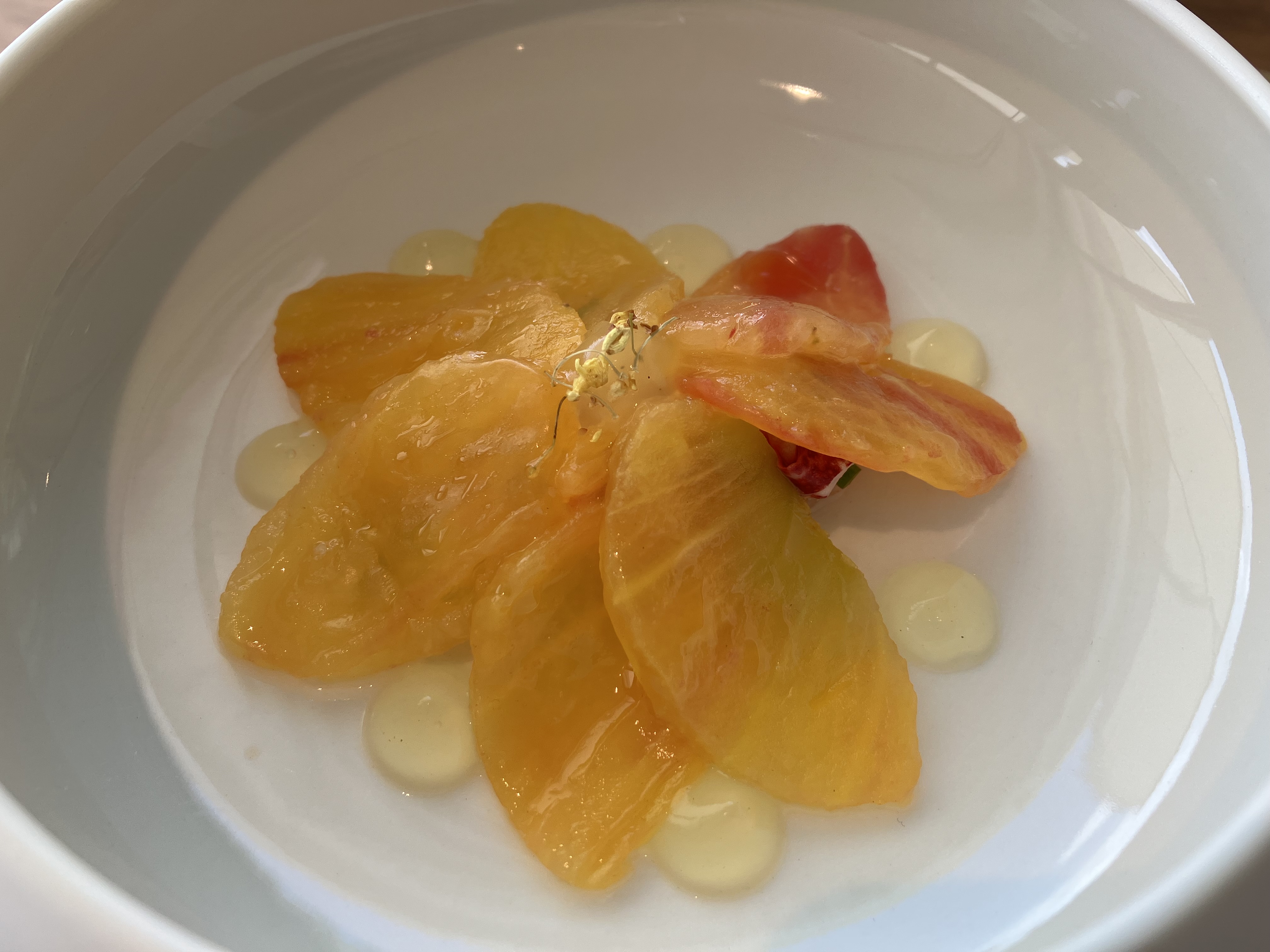 A nouveau une superbe expérience au Mirazur, menu Fruits cette fois-ci. L'établissement mérite amplement ses 3 étoiles Michelin. Seuls bémols : 1. un usage un peu exagéré de jus/sauces acides ou astringentes, ce qui est désagréable à la digestion et 2. vin blanc servi à température ambiante.