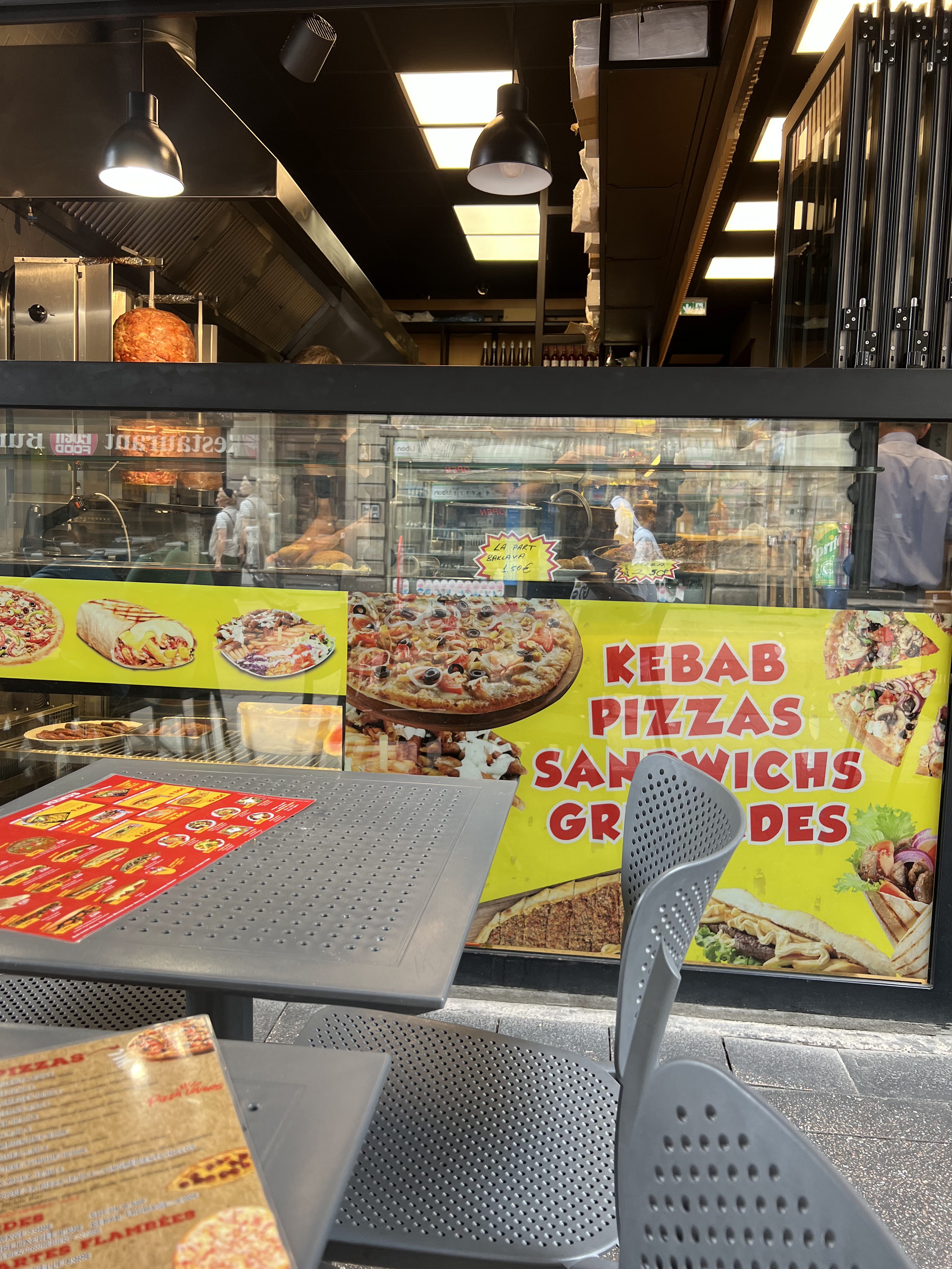 Je suis passé le 11 janvier avec ma trottinette électrique, j'étais en visite à Strasbourg toutes la journée puis le soir j ai commandé de lahem àjune avec une portion des frites 🍟 sur place le personnel étais souriant mais l autre non mais le plat étais bon.