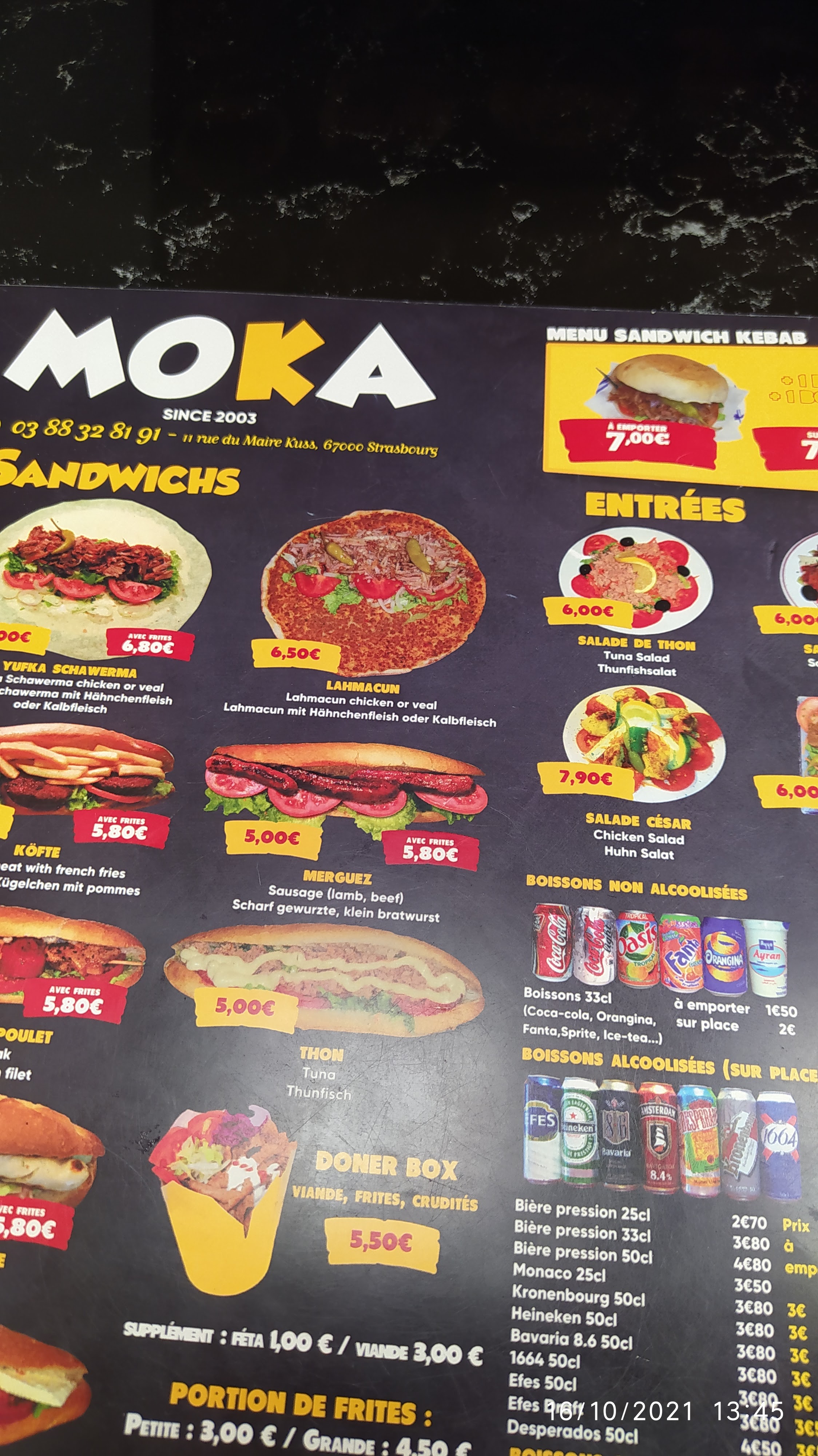 Très proche de la gare Personnel très sympathique Tout était très bon, c'était bon, beaucoup de choix et des prix très raisonnables. Chaque fois que je suis à Strasbourg, j'aime visiter MOKA Salutations au propriétaire et à sa famille