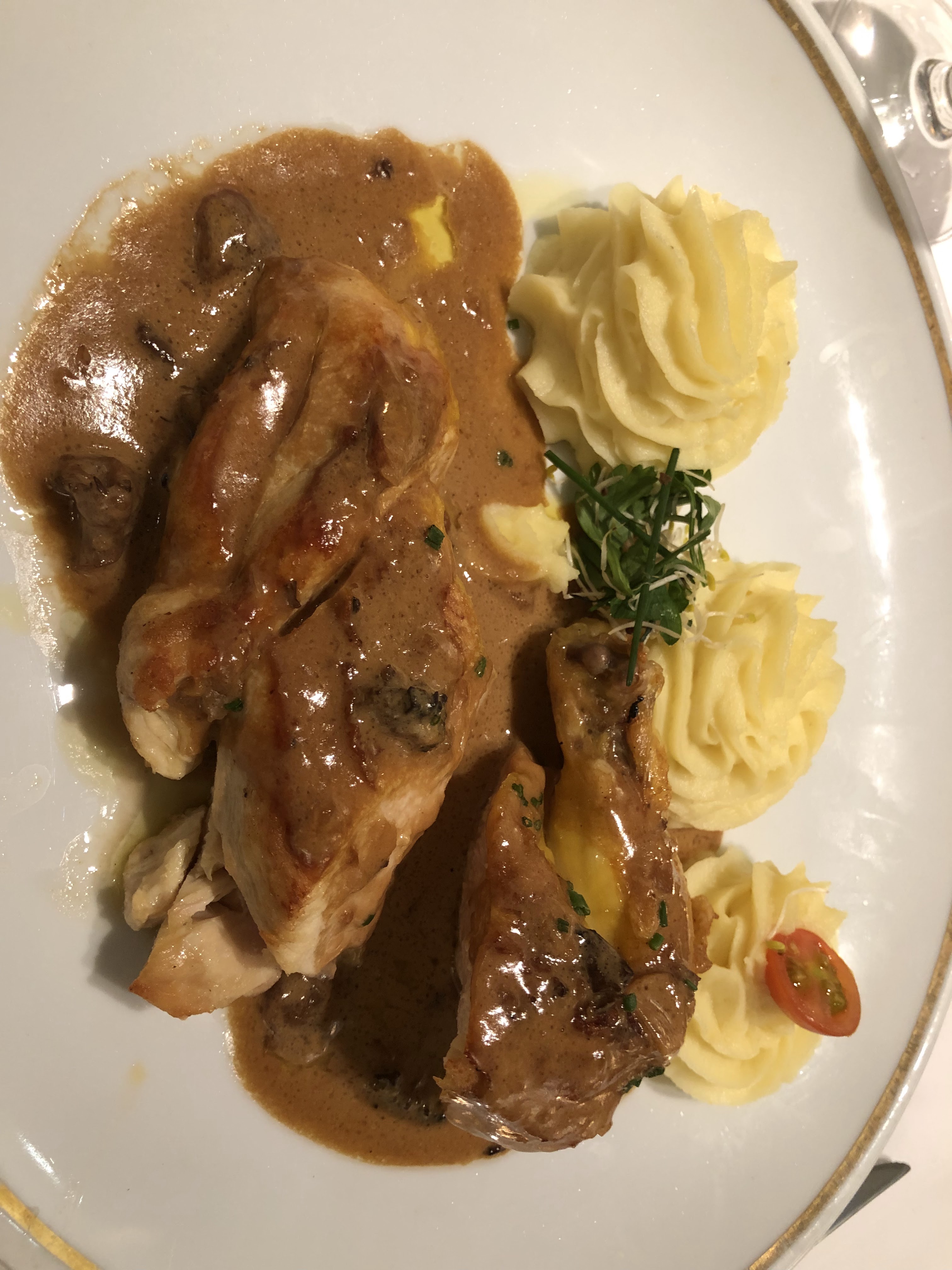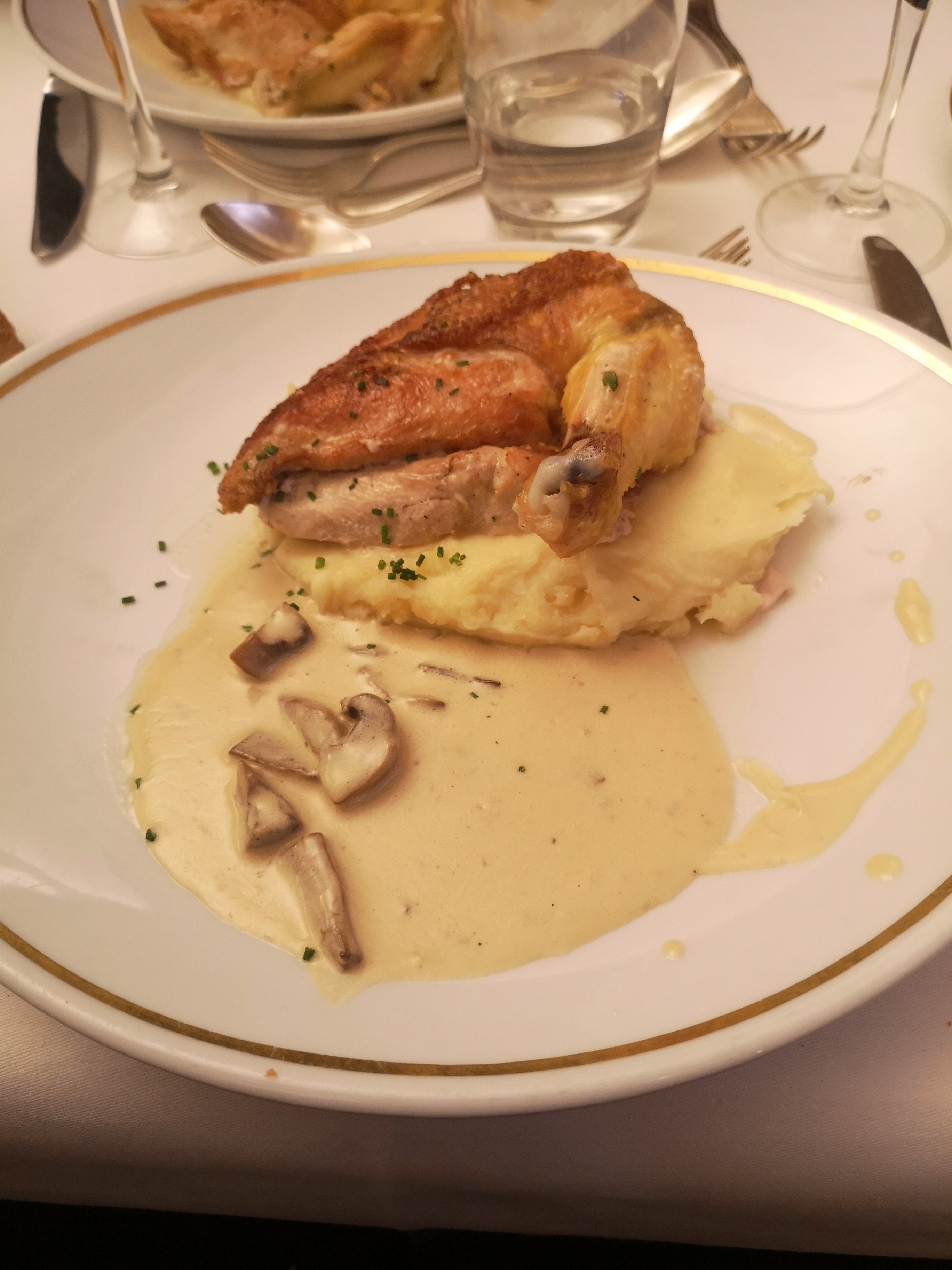 De passage sur Paris on arrive dans ce restaurant un cadre très chic Des serveurs et serveuses agréable à l'écoute et avec le sourire. La volaille et sa purée de pomme de terre et sauce champignon un délice.