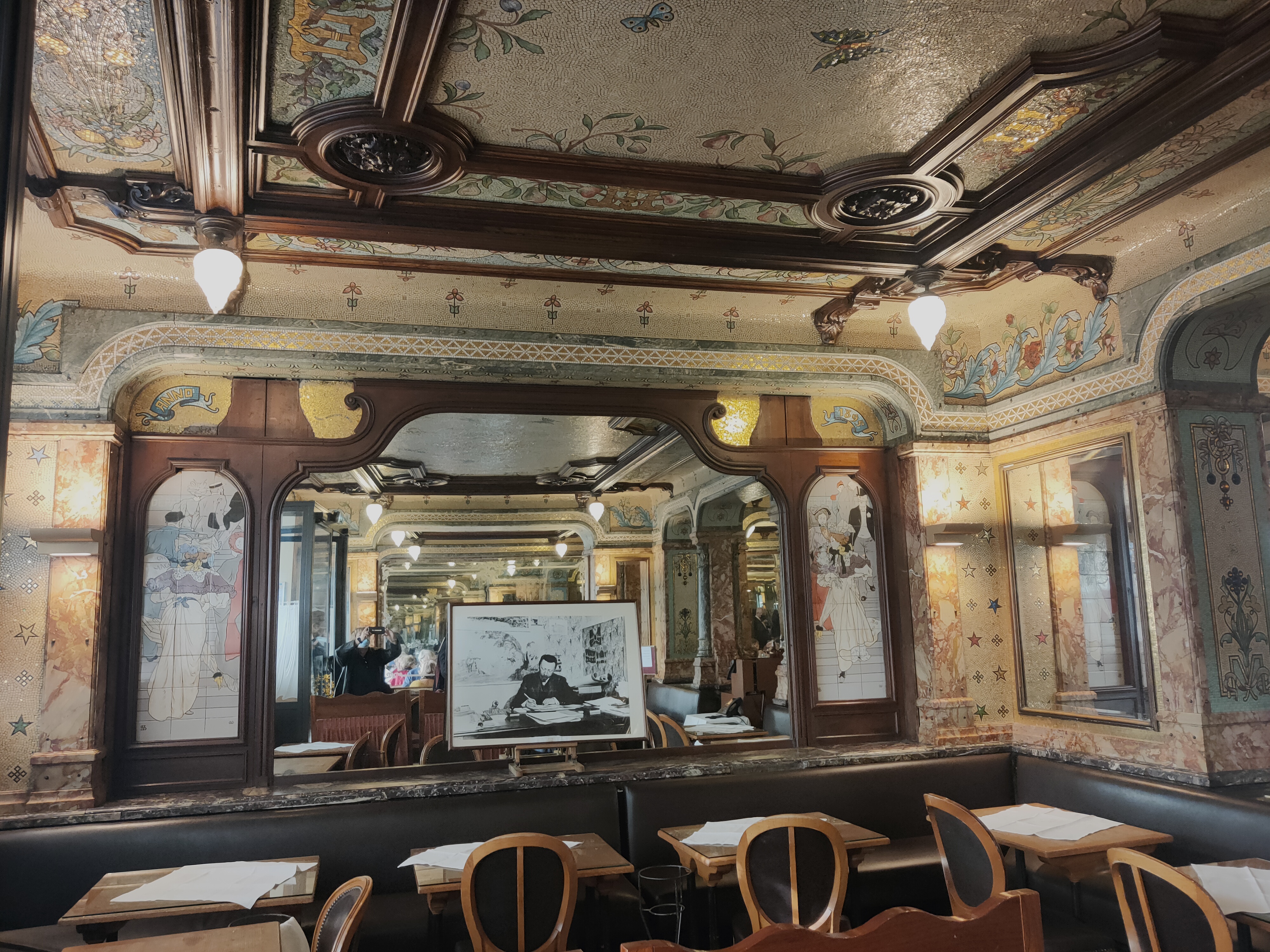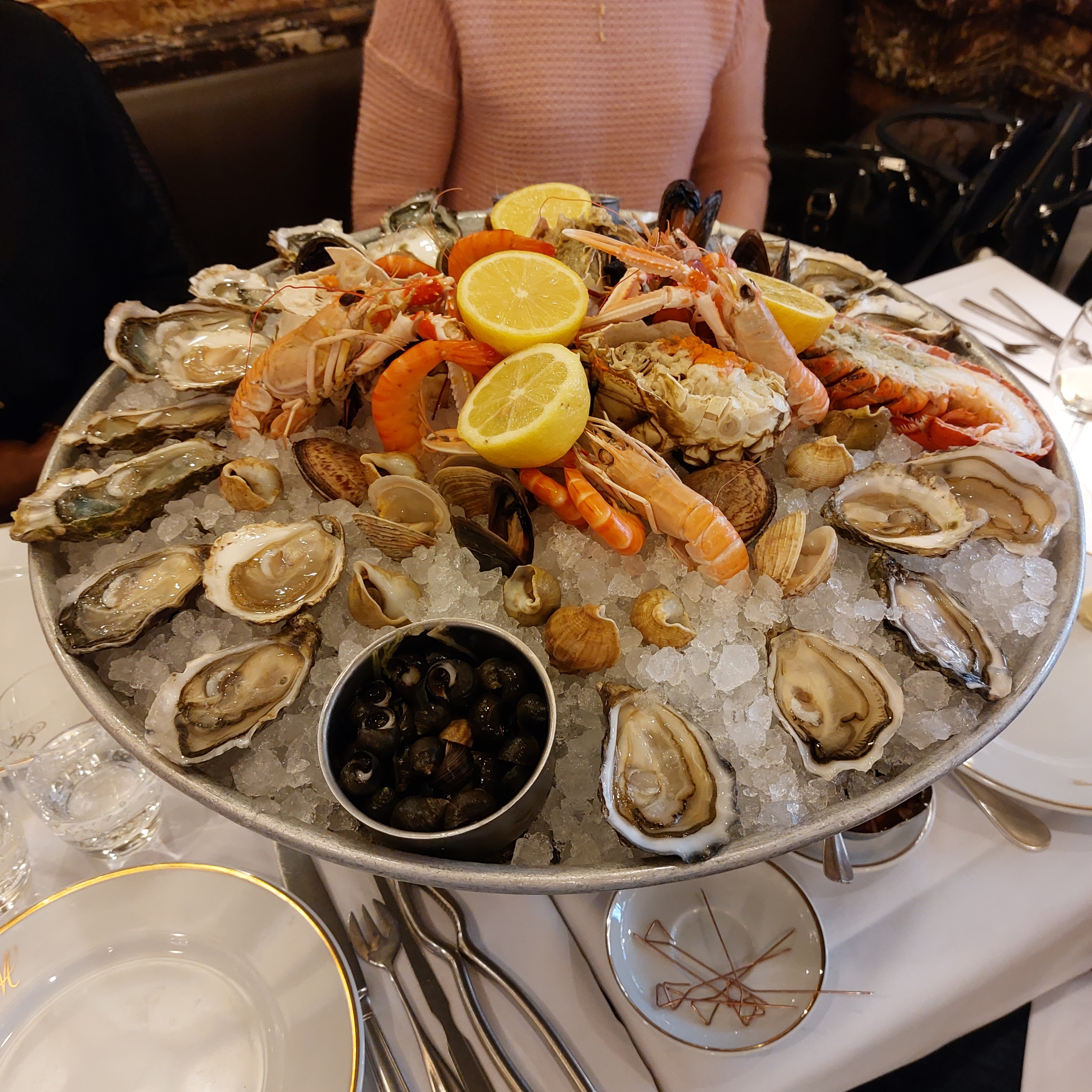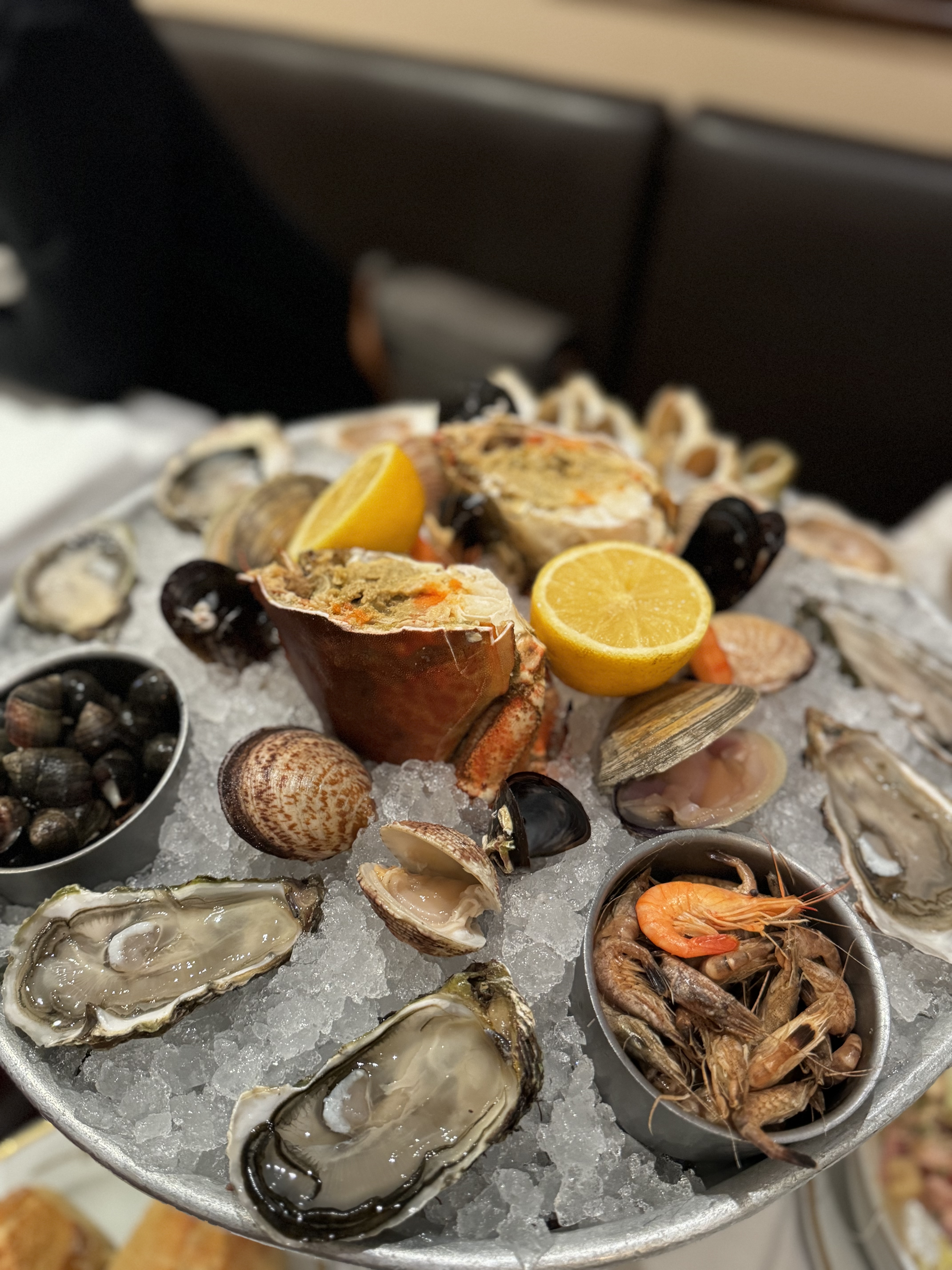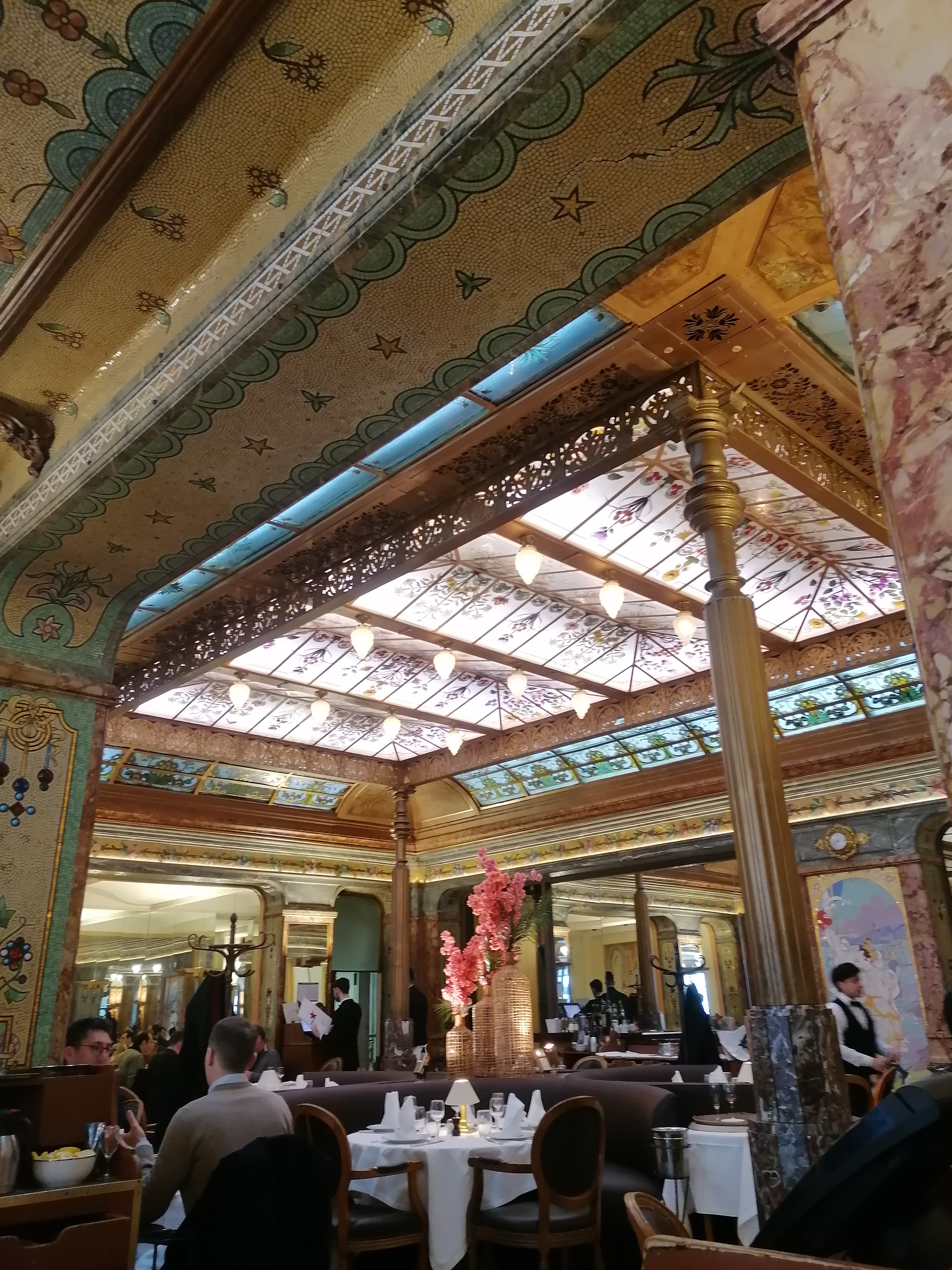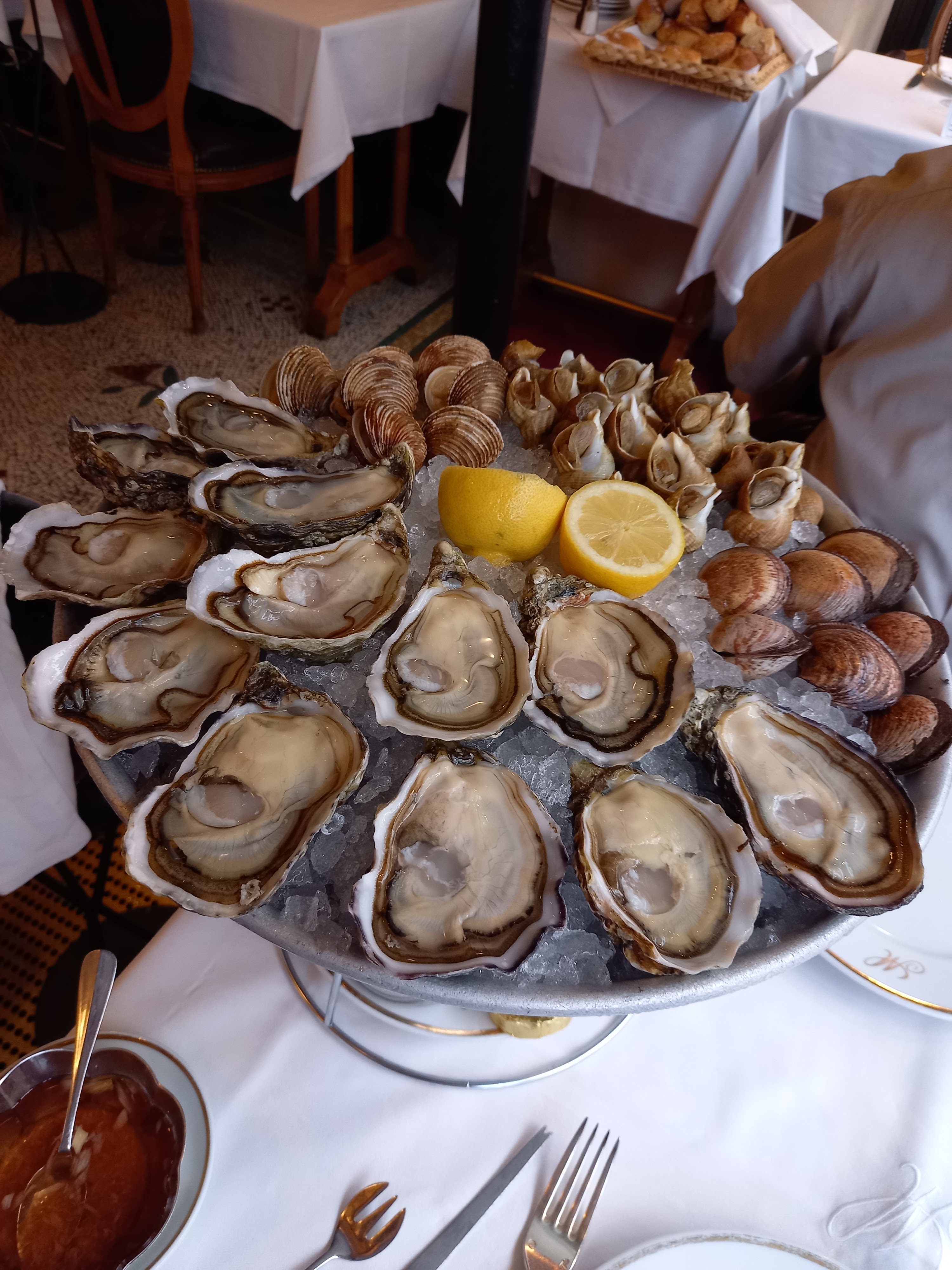 Lieu empreint d'histoire de l'Art nouveau, premier établissement parisien offrant des toilettes dames séparées des toilettes hommes (pour la petite histoire), Plateaux de fruits de mer extra frais, homard présenté dans des cuivres, service fluide malgré une forte affluence, le sympatique patron Stéphane dernier parti le 31 décembre et le premier arrivé le 1er janvier (pourtant jeune papa) attentif aux besoins de sa clientèle.