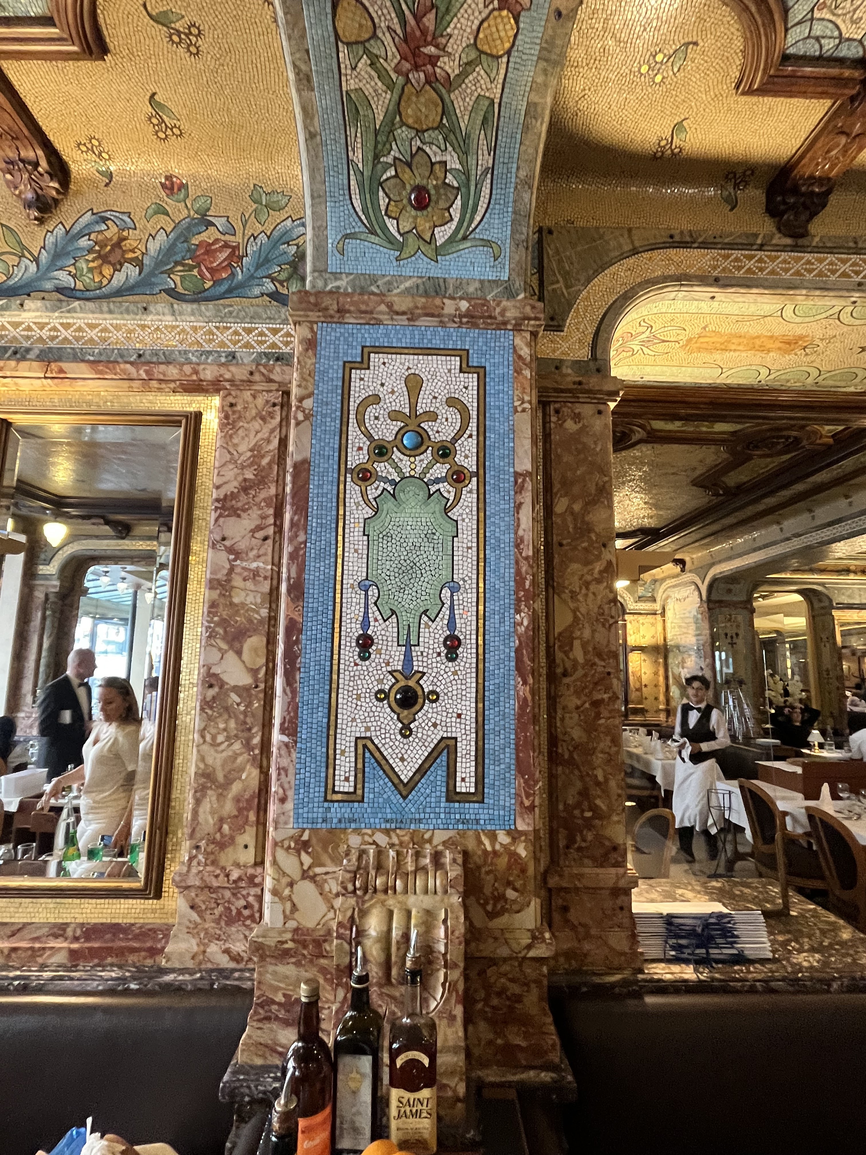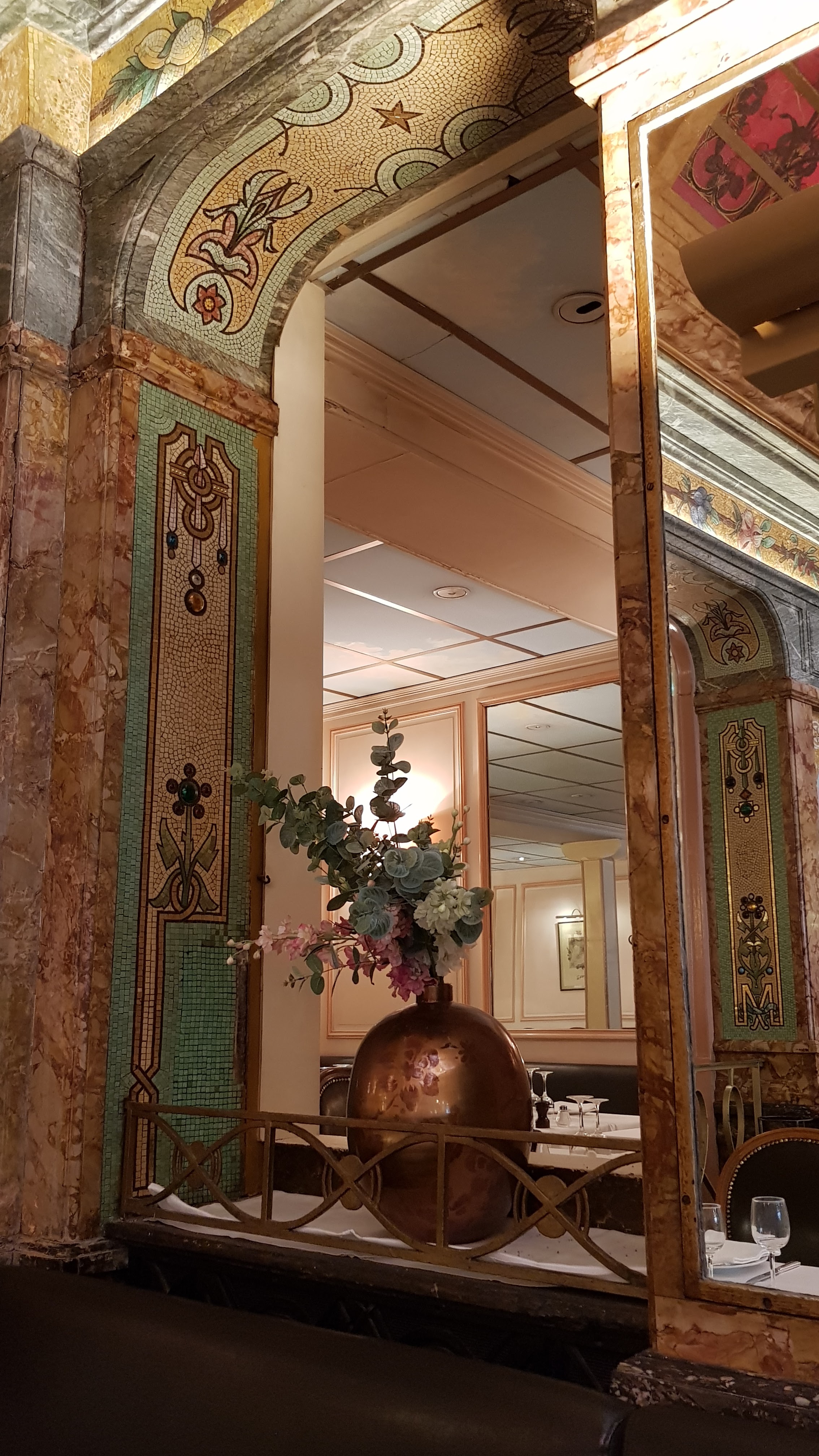 Belle brasserie parisienne style Art Nouveau avec de très belles mosaïques. Le cadre historique compense l’ambiance bruyante du dîner….👍 A découvrir