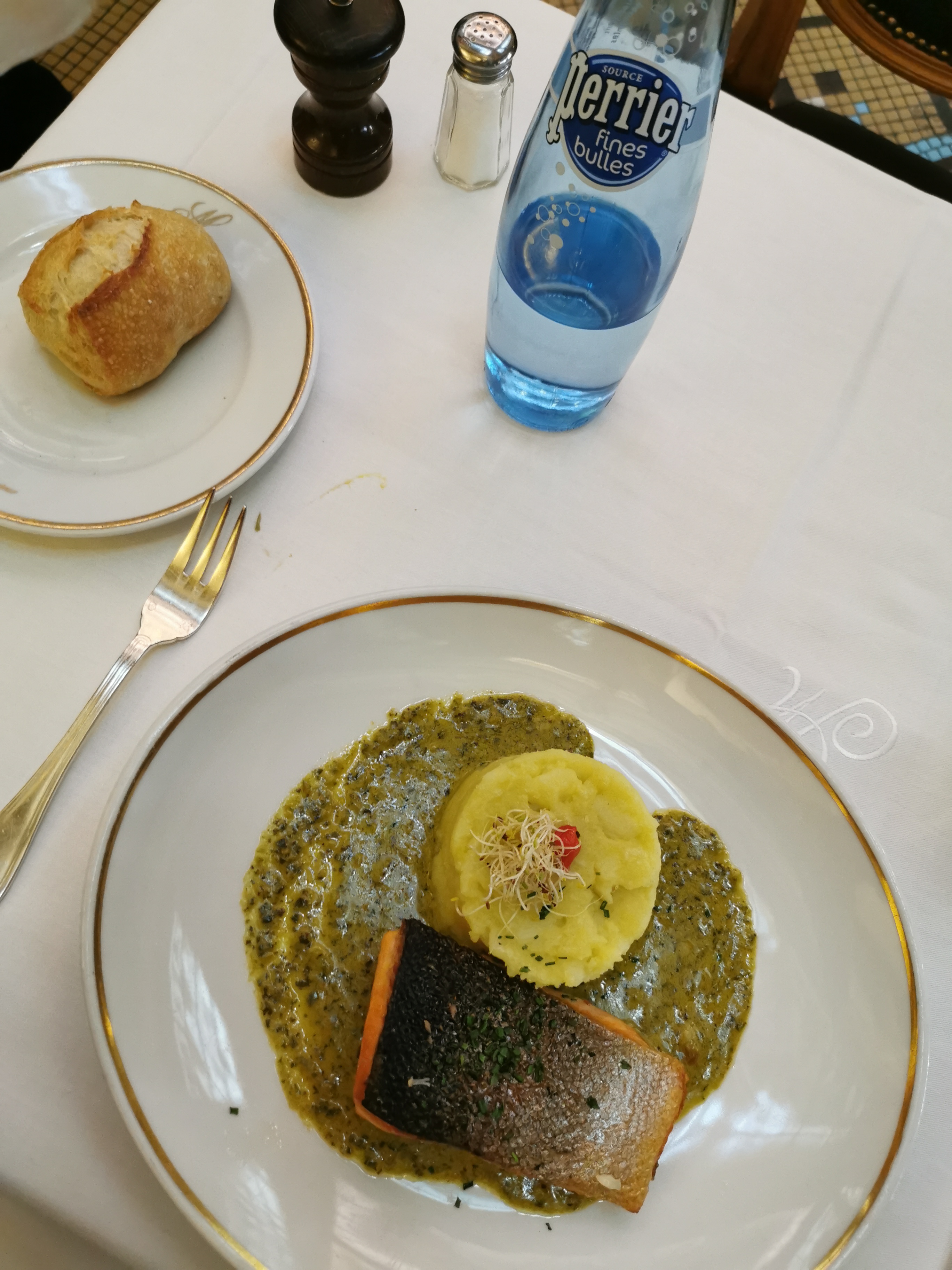 Parfait et cadre très agréable. J'avais réservé, donc ma table était exactement comme souhaité : au calme, en retrait, pas collée aux autres, avec vue sur les autres salles. La personne qui me rejoignait a été vite orientée par la très pro Chef de rang. Le service est poli, discret, rapide. Les plats sont bons avec une mention spéciale pour la lotte braisée. Le cadre historique est toujours aussi agréable (voir photos).
