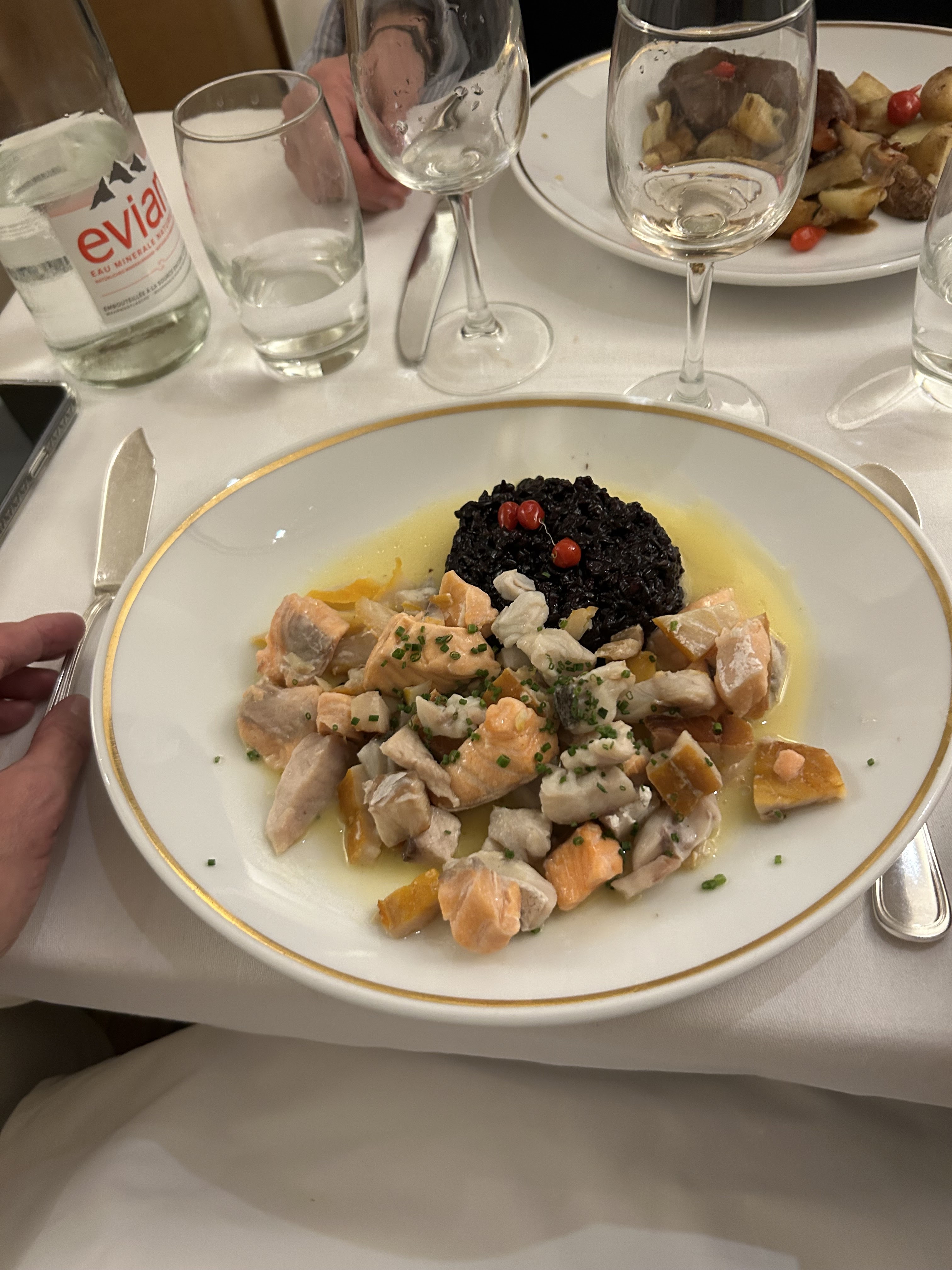 Pour une 5eme visite dans ce restaurant, j'ai trouvé que le service était en baisse, surtout en comparaison du prix, fortement en hausse....les points négatifs, le service, avec un serveur hautain. Celui qui nous a apporté les desserts, lui etait tres bien. Une serviette pleine de trous et pas qu'un, plusieurs ? Pourquoi l'avoir mise sur l'assiette ? Les plats, étaient bons mais la qualité est en baisse. Donc un peu déçue 😞 on a passé quand même un bon moment en famille, le cadre est splendide.