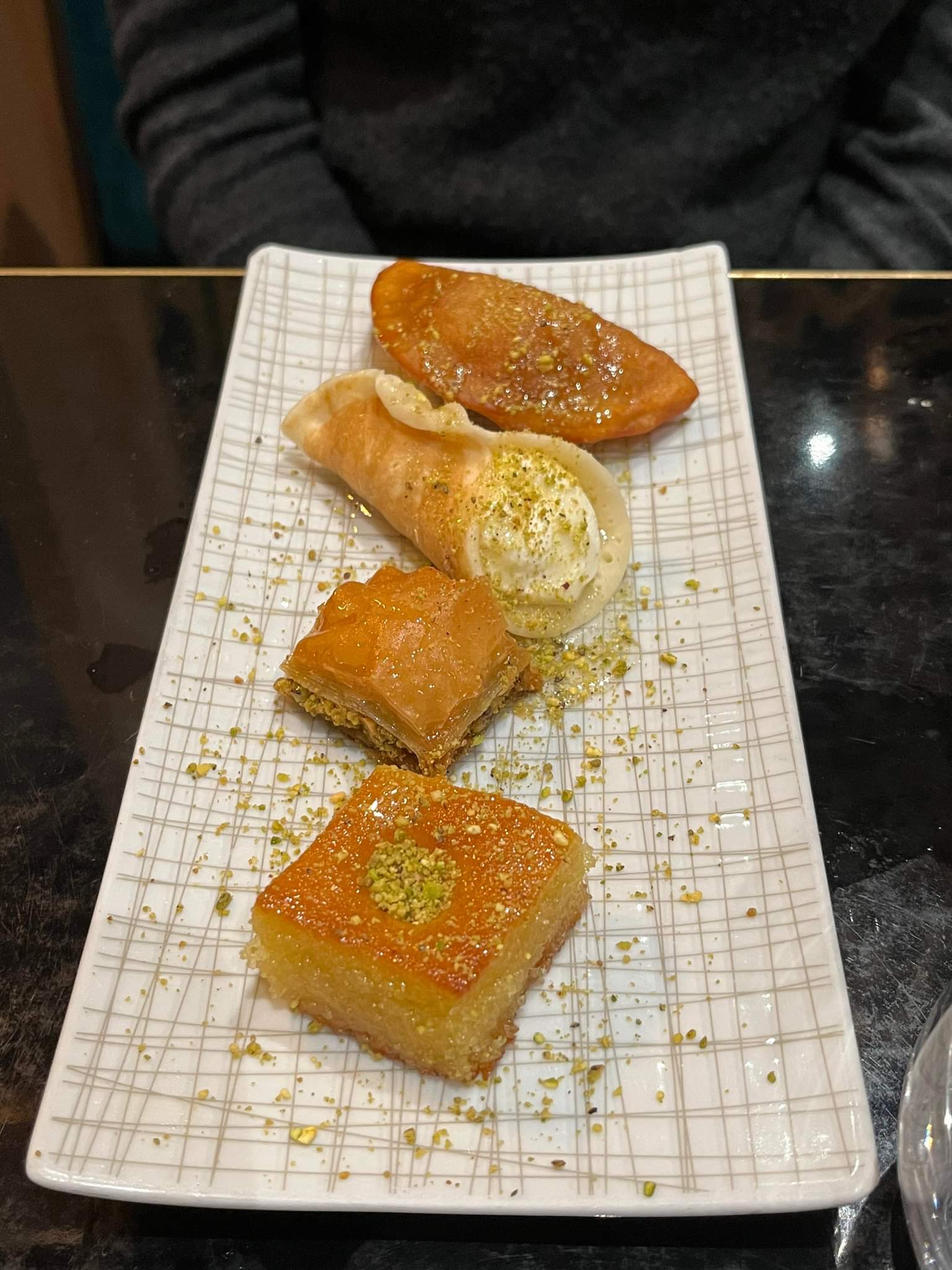 J'ai pris un plat du jour le midi. Les falafels étaient excellents 🤤. Et le café gourmand libanais au top 👌☕