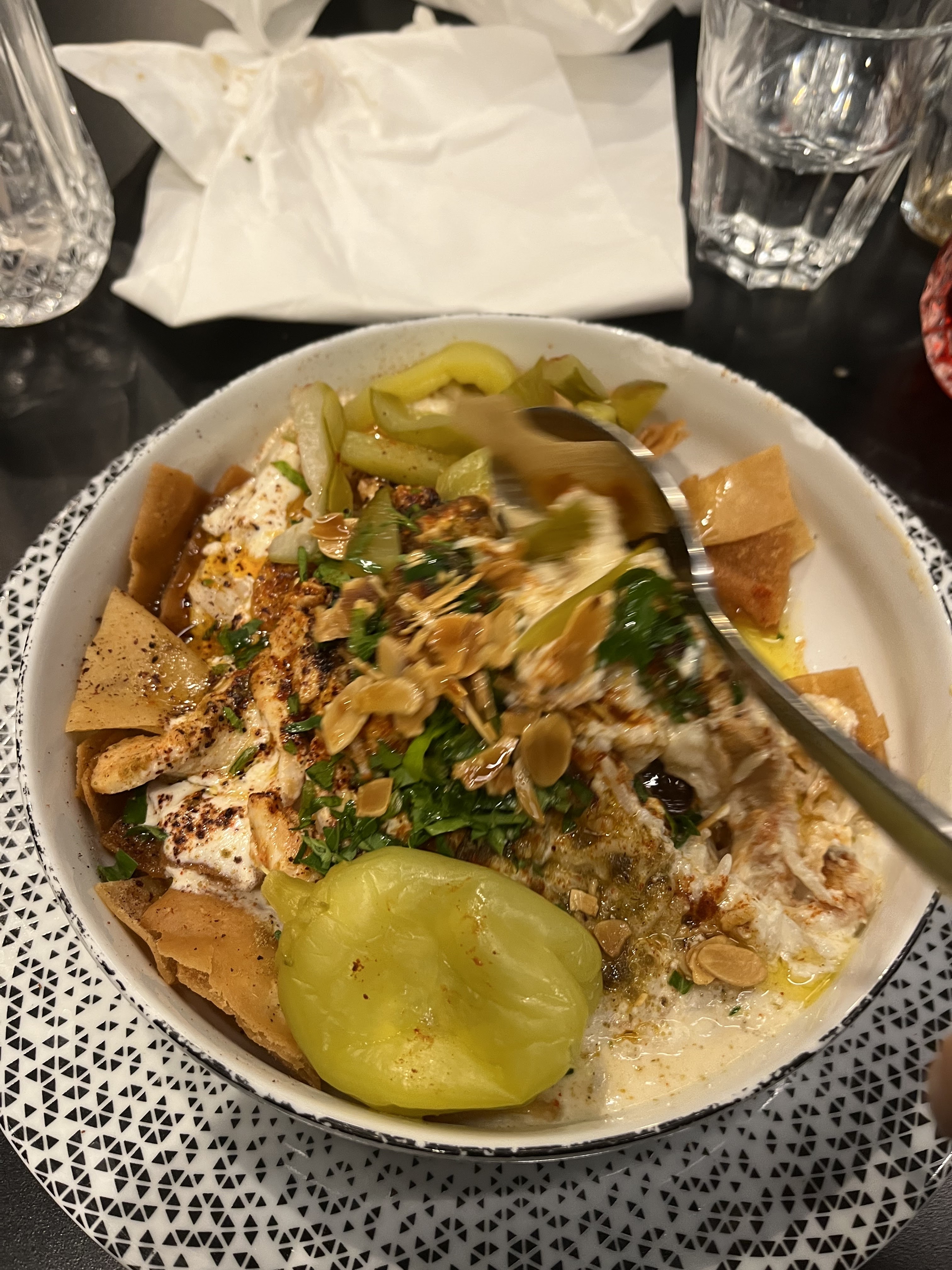 Très très bon moment : un accueil chaleureux et avec le sourire, de bons conseils sur le vin. Nous étions deux et nous avons pris le menu a 25€ chacune, un délice, l'assiette de mezze et le chawarma étaient très bien assaisonnés, goutus et très belles découvertes ! Le dessert était vraiment surprenant et j'ai adoré.