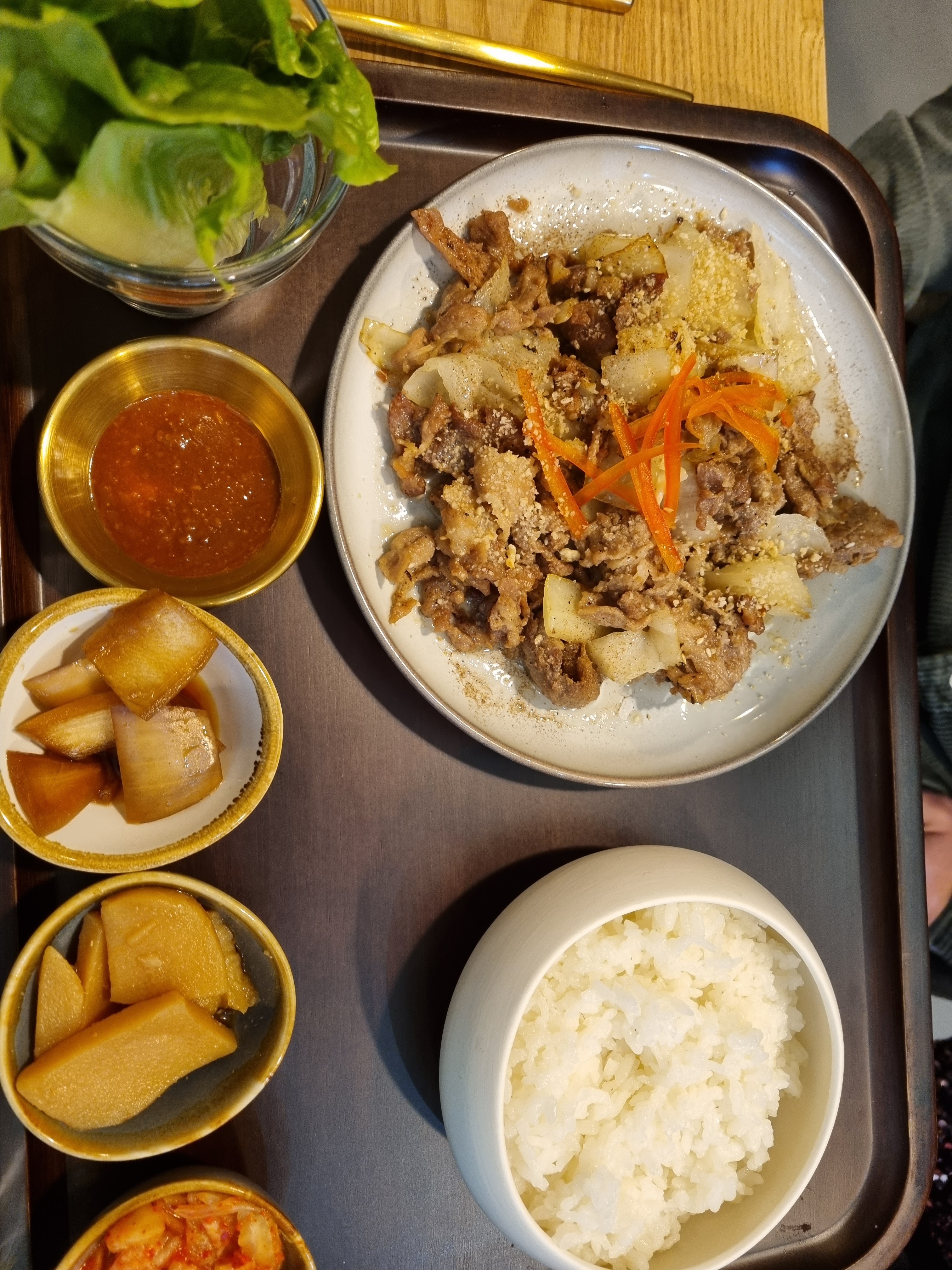 Un joli restaurant, le personnel est très sympa mais la nourriture n'est pas à la hauteur je trouve, les plats sont un peu fades avec peu de quantité, les accompagnements ne sont pas variés. Je n'ai pas retrouvé la cuisine que j'ai pu directement goûter en Corée. Cela reste correct mais je ne mettrais pas plus de 3 étoiles.