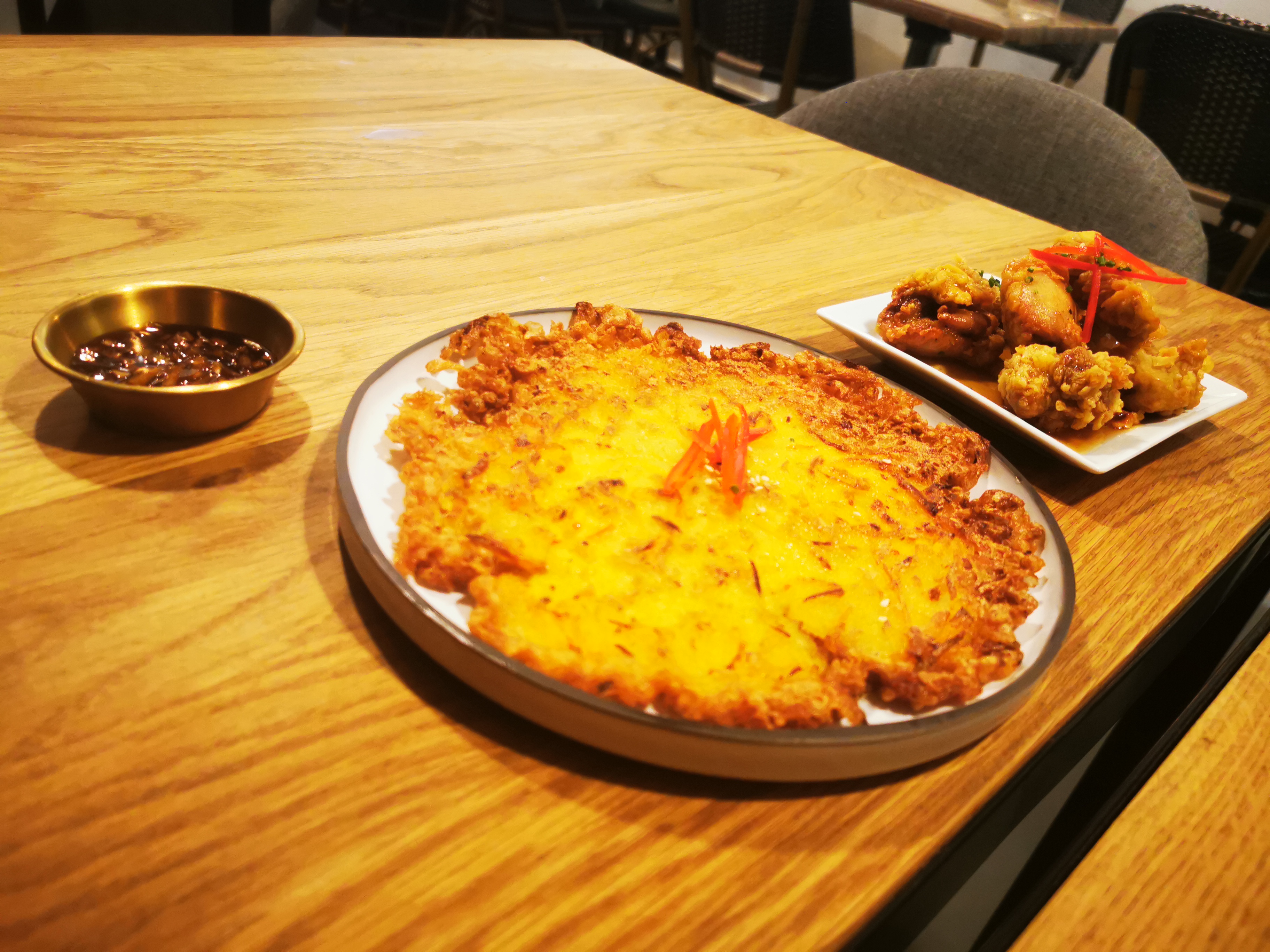 L'ambiance du lieu est très chaleureuse Service client parfait. Cela montre qu’il y a beaucoup de passion et de dévouement dans tout. Nous avons commandé du poulet frit, je pensais qu'il y avait trop de pâte et je ne pouvais pas beaucoup goûter le poulet. Pour le plat de cuisse de poulet j'aurais aimé plus de sauce soja fermentée. De la sauce soja sur la table, au goût du client, serait une bonne idée.