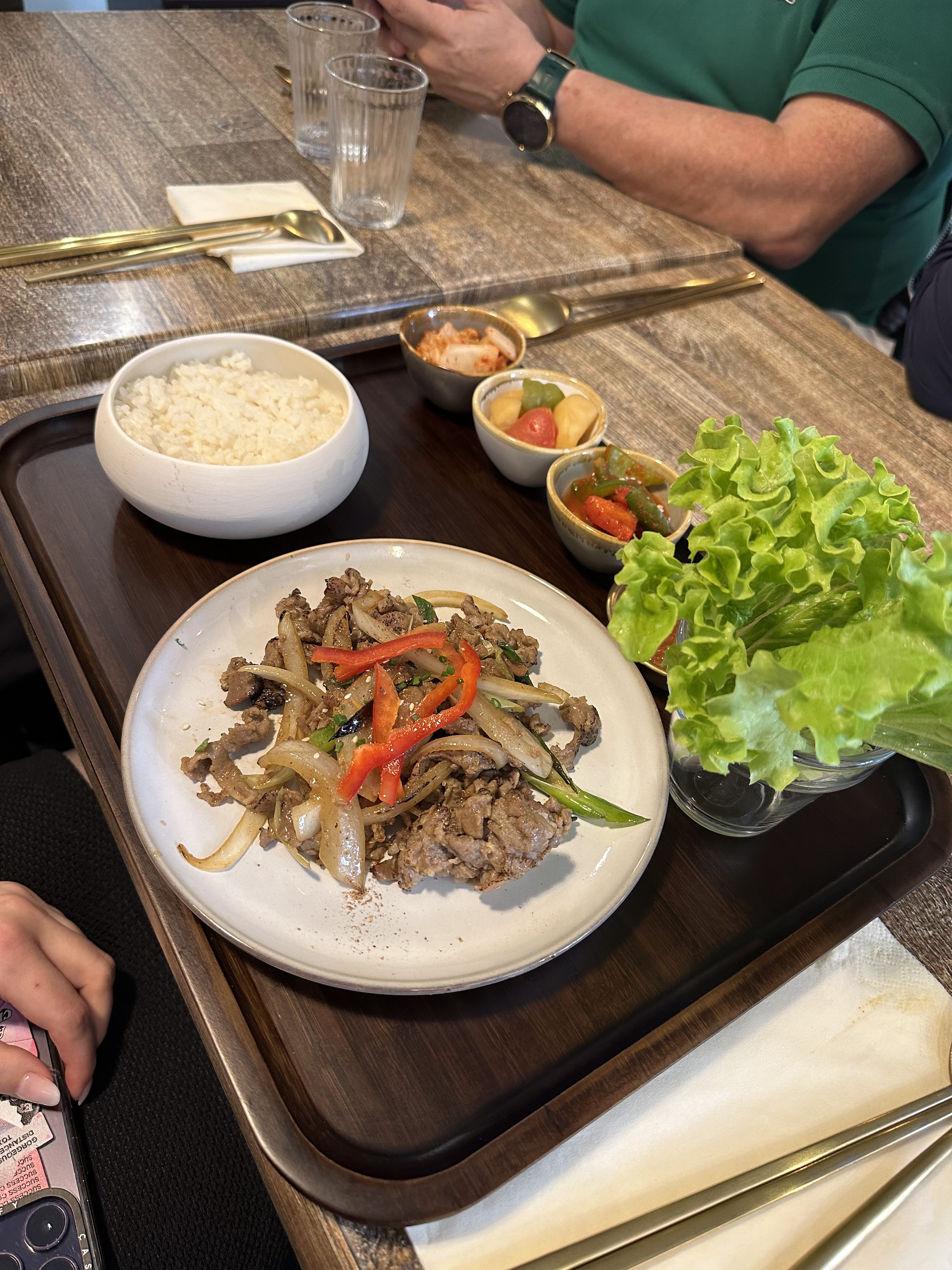 Le restaurant nous a été fortement recommandé, malheureusement nous avons été déçus 😞. Nous avons reçu deux fois un plateau similaire avec des viandes différentes. Le Bulgogi n'était pas votre Bulgogi typique. Les ingrédients pour faire un petit pain avec une feuille de laitue étaient également trop peu nombreux. De plus, les clients doivent être informés avant d’entrer dans le restaurant qu’aucun alcool ne sera servi.