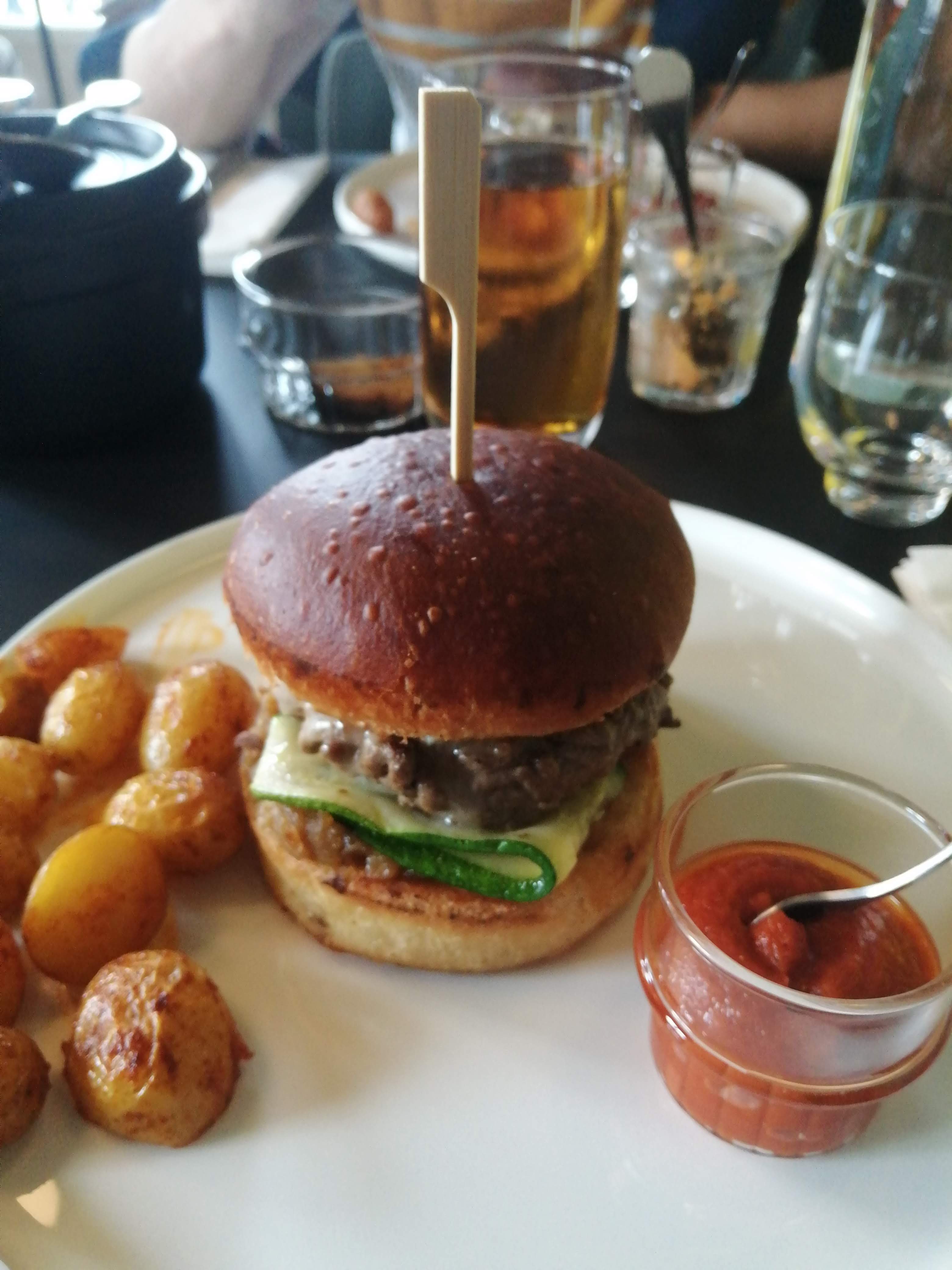 Un restaurant qui sait cuisiner à la perfection les légumes. N'étant pas une grande légumivore, je n'ai jamais goûté pareille association de saveurs et parfaite cuisson. Bravo ! En ce qui concerne les viandes, ce n'était malheureusement pas du même niveau. En particulier, le hamburger était bien en deça de ce que j'ai pu goûter ailleurs. Cela donnait l'impression qu'il avait été mis à la carte pour satisfaire la mode qui court depuis pas mal d'années d'en avoir un mais sans réel résultat gustatif. Et pour finir le dessert est bon est très joliment présenté. Le lieu est extrêmement charmant (nous étions en terrasse) et les serveurs sont d'une amabilité sans faille. Le lieu en intérieur a aussi l'air d'avoir été décoré avec goût.