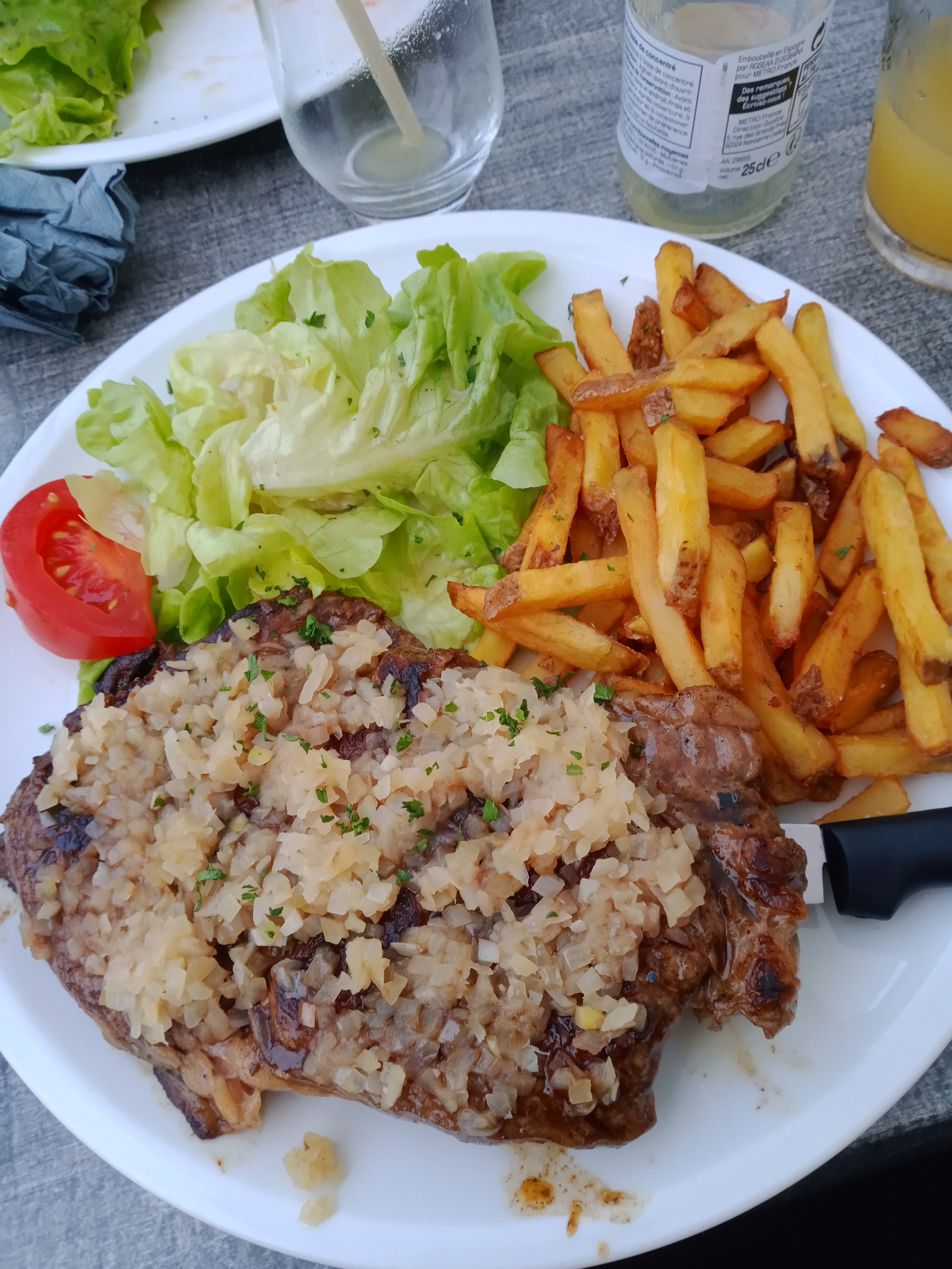 Malgré un cadre agréable au bord de l'eau service en claquettes, patronne qui vous jauge, pièce de viande qui vient de promocash ou metro au choix... frites insignifiantes car peu dans l'assiette, salade fade (gésiers en boîte, tomates sans goût et foie gras fort appétissant au premier regard n était pas le cas en bouche je ne recommanderais pas cet établissement