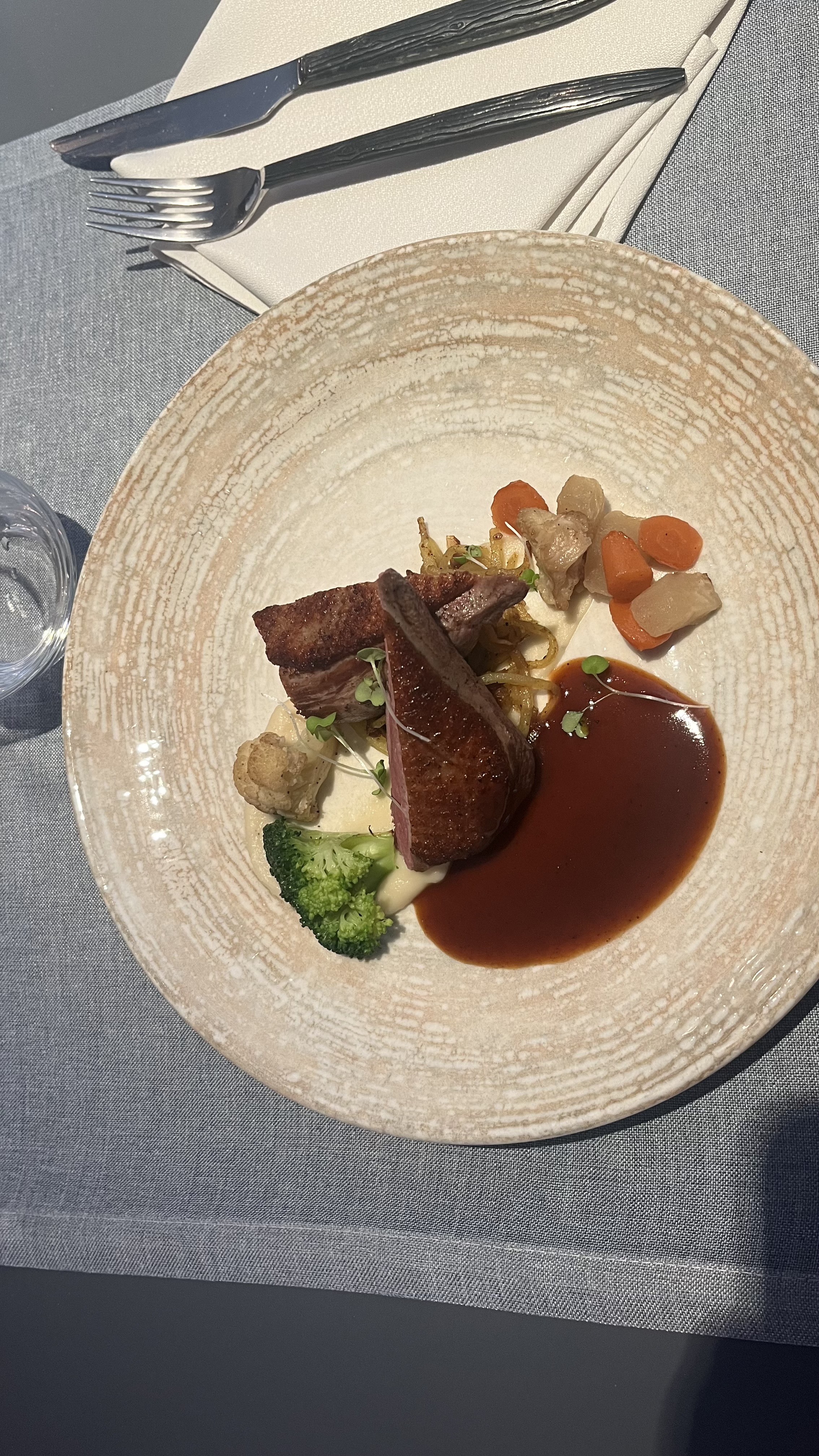 Plats aussi beau que bons. Nous avons passe un super moment. La canette était très bonne mais le veau était exceptionnel ! On aurait pu le couper à la cuillère.