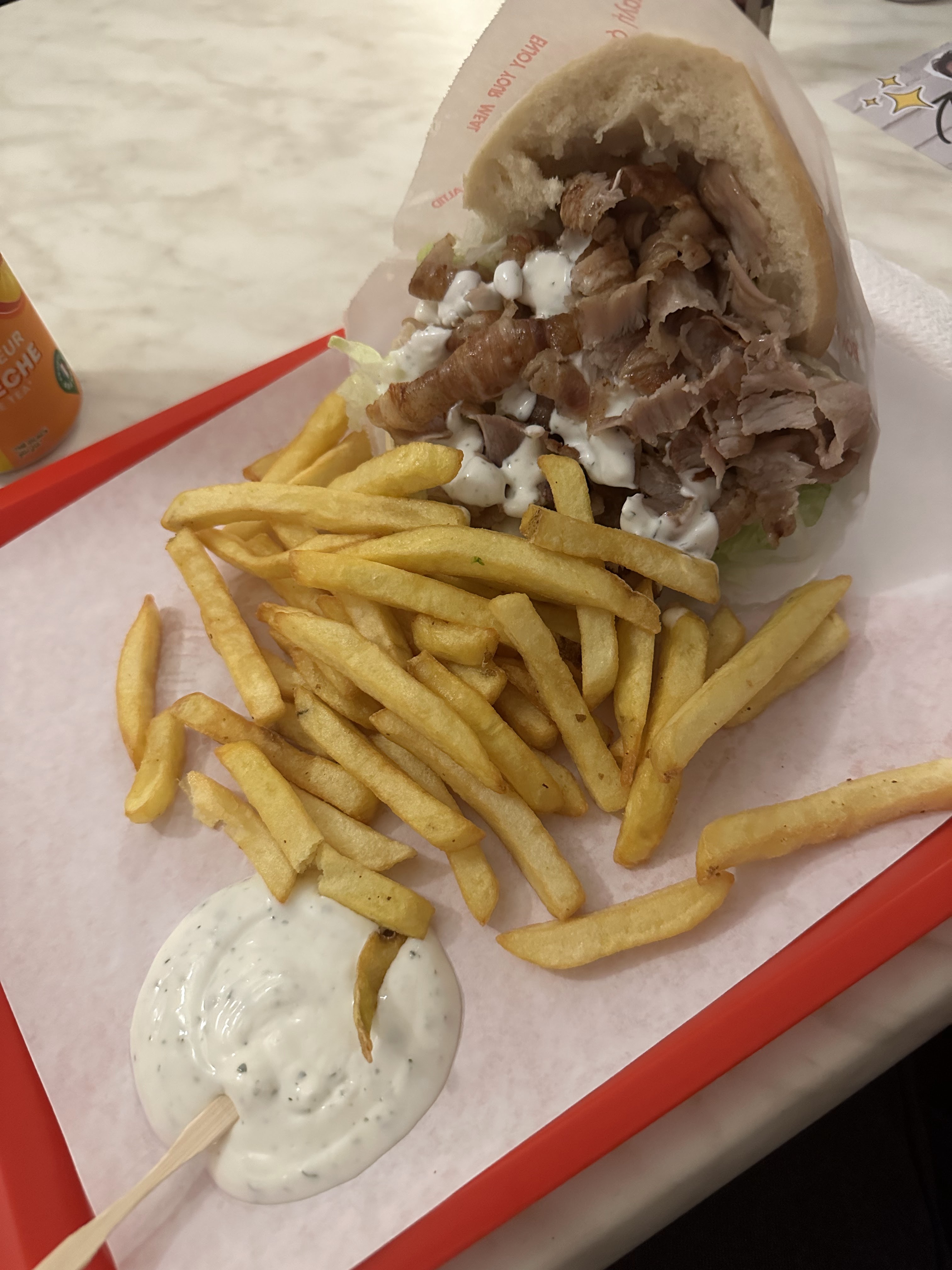 Bon kebab! Simple et efficace. Le service est serviable et poli. Peut être qu’un effort pourrait être fait pour les frites qui avaient un léger arrière goût d’huile de friture un peu « passée »! Rien de rédhibitoire !