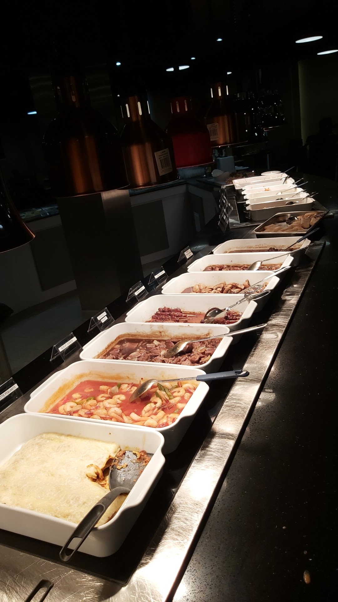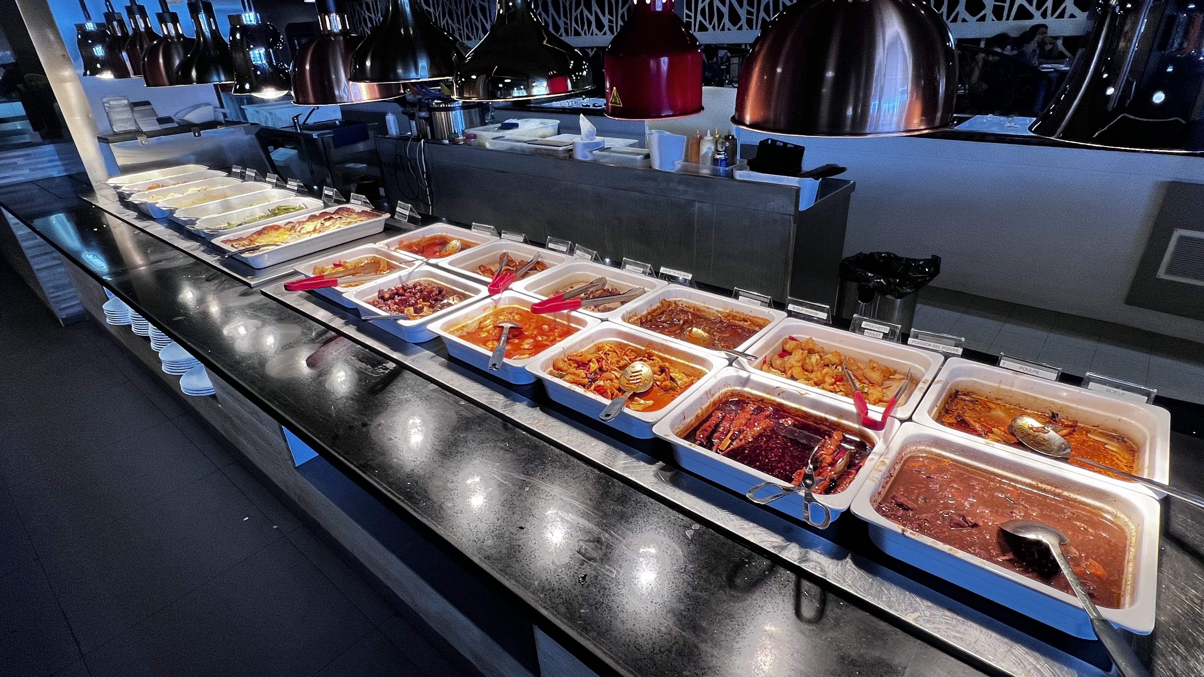 Beaucoup de place dans le restaurant. Buffet très varié (chinois, japonais, salades, steak house). La viande est bonne. Personnel très agréable.