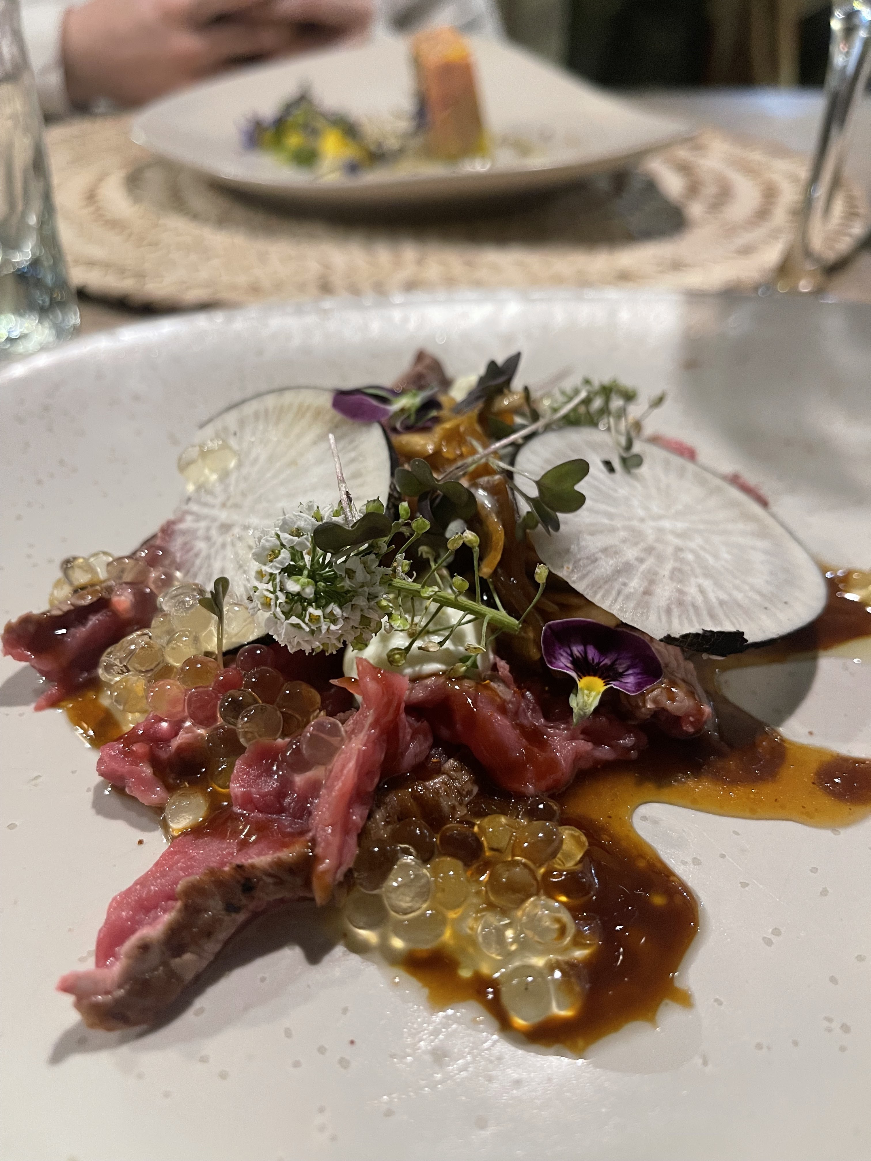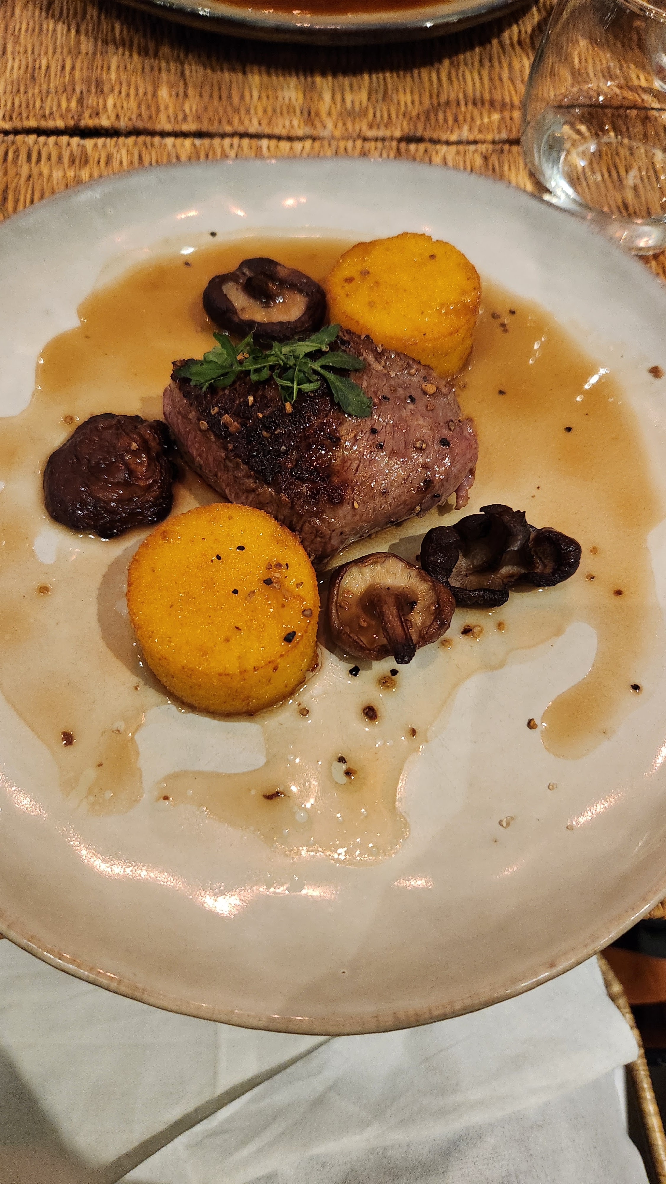 Super expérience au n133. De jolis menus et vins avec un personnel attentionné et sympathique dans un cadre magnifique. Ils ont servi notre table de 9 personnes à l'aise avec toutes les assiettes sortant en même temps. Le seul inconvénient était que nous étions l'une des premières tables à être servies et qu'ils manquaient toujours de steak Chateaubriand très très tôt. On nous a proposé un steak « filet », mais cela ne ressemblait pas à un filet, il contenait beaucoup de graisse non comestible et était moelleux. Sinon, nous avons eu un repas et une expérience fantastiques et nous le recommandons sans hésiter.
