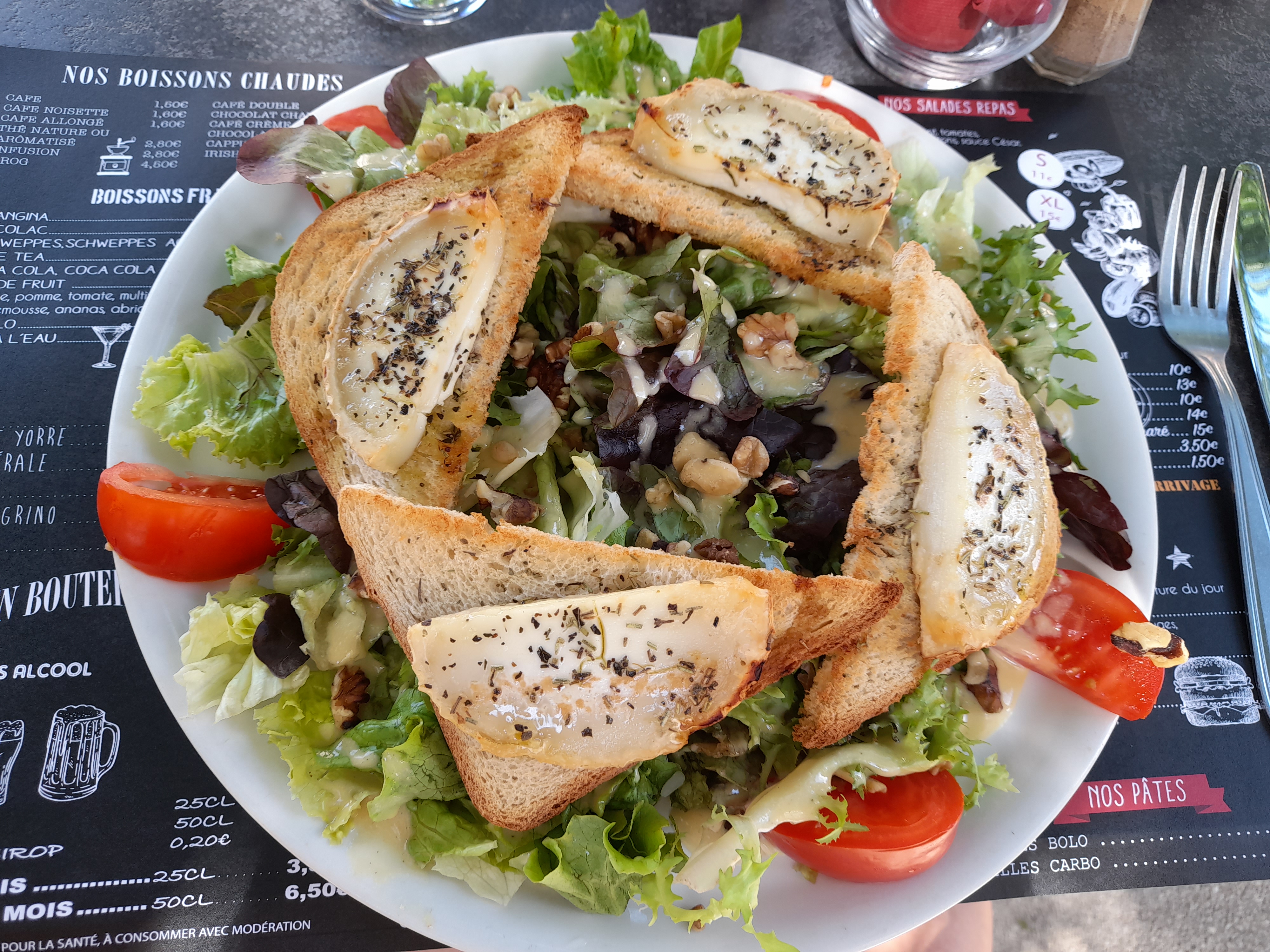 Les choses les plus simples sont souvent les meilleurs, des frites maison,une bonne salade aux chèvres chaud,parfait. Et le personnel est très gentil
