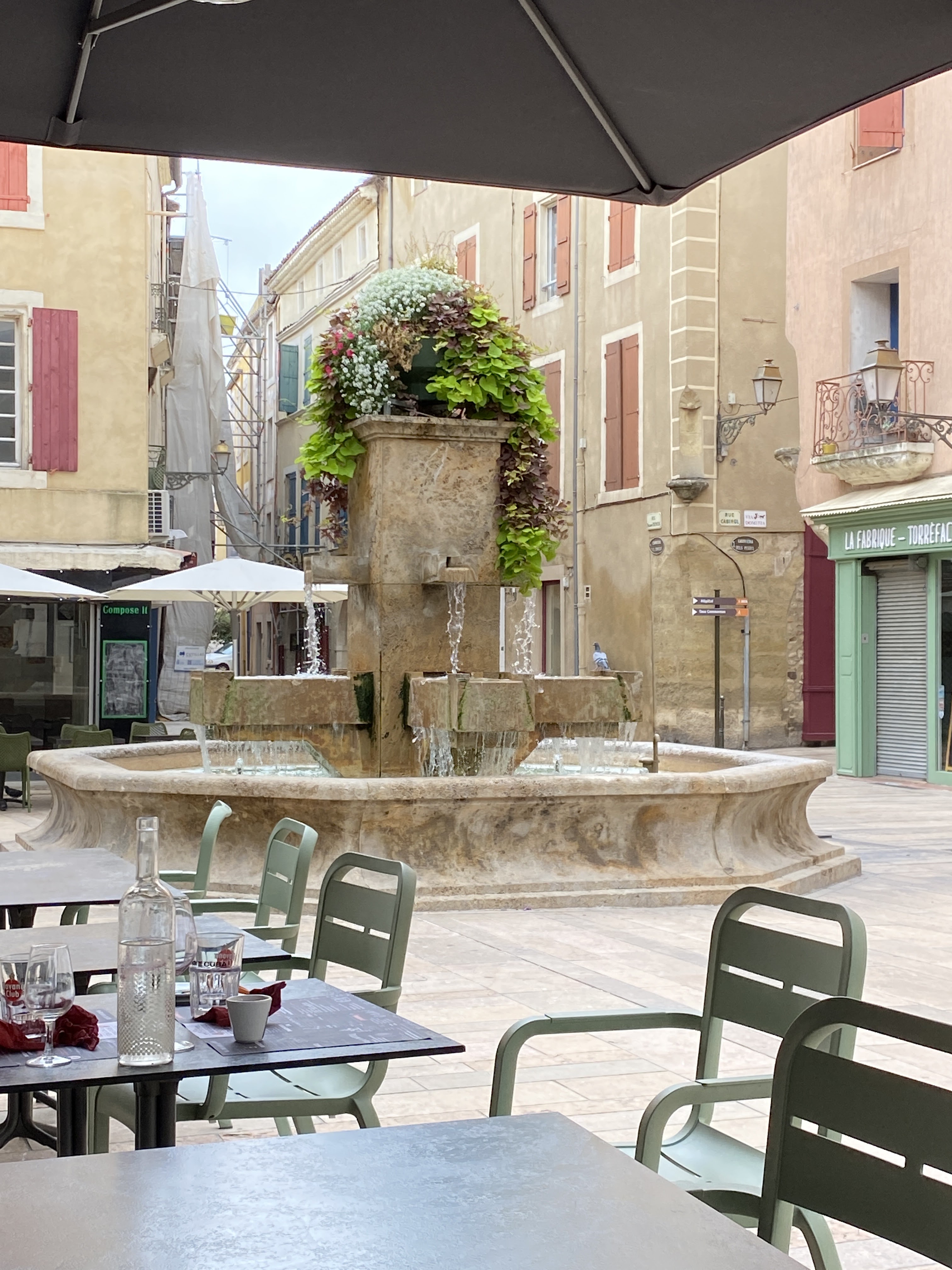 Brasserie très conviviale, située au centre, sur la place en face de la (des) fontaine(s) (il y en a ...4 ). Suggestions de repas intéressantes à petit prix.