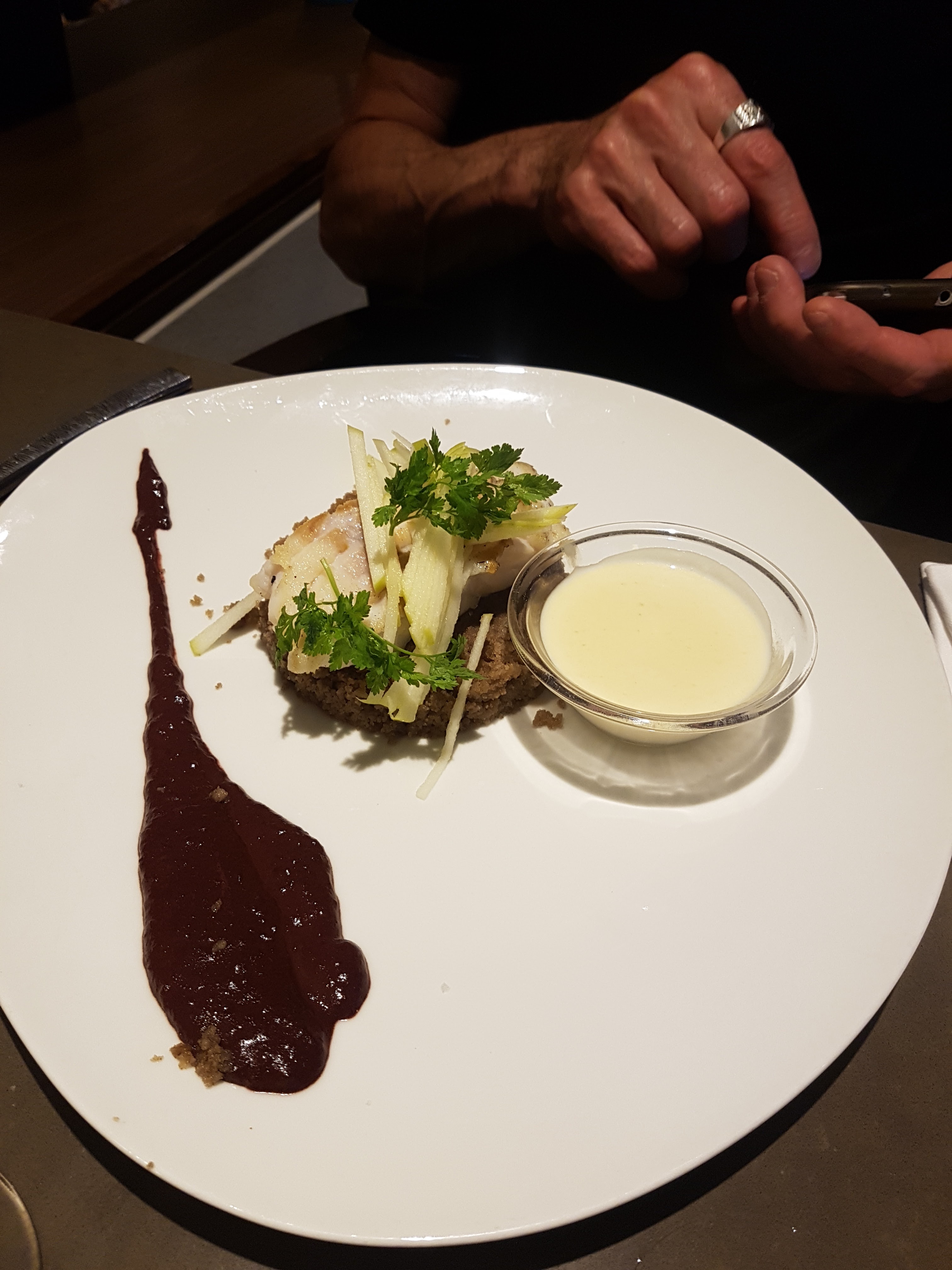 Le service, la propreté rien à signaler. Mais au vu des notes (et du prix) je m'attendais à mieux au niveau des papilles. Les plats présentent bien et le poisson commandé était plutôt frais mais le goût était très basique, les garnitures pas mieux que du picard (pommes rissolées, semoule noire). Je reste sur un bof pour cet endroit.