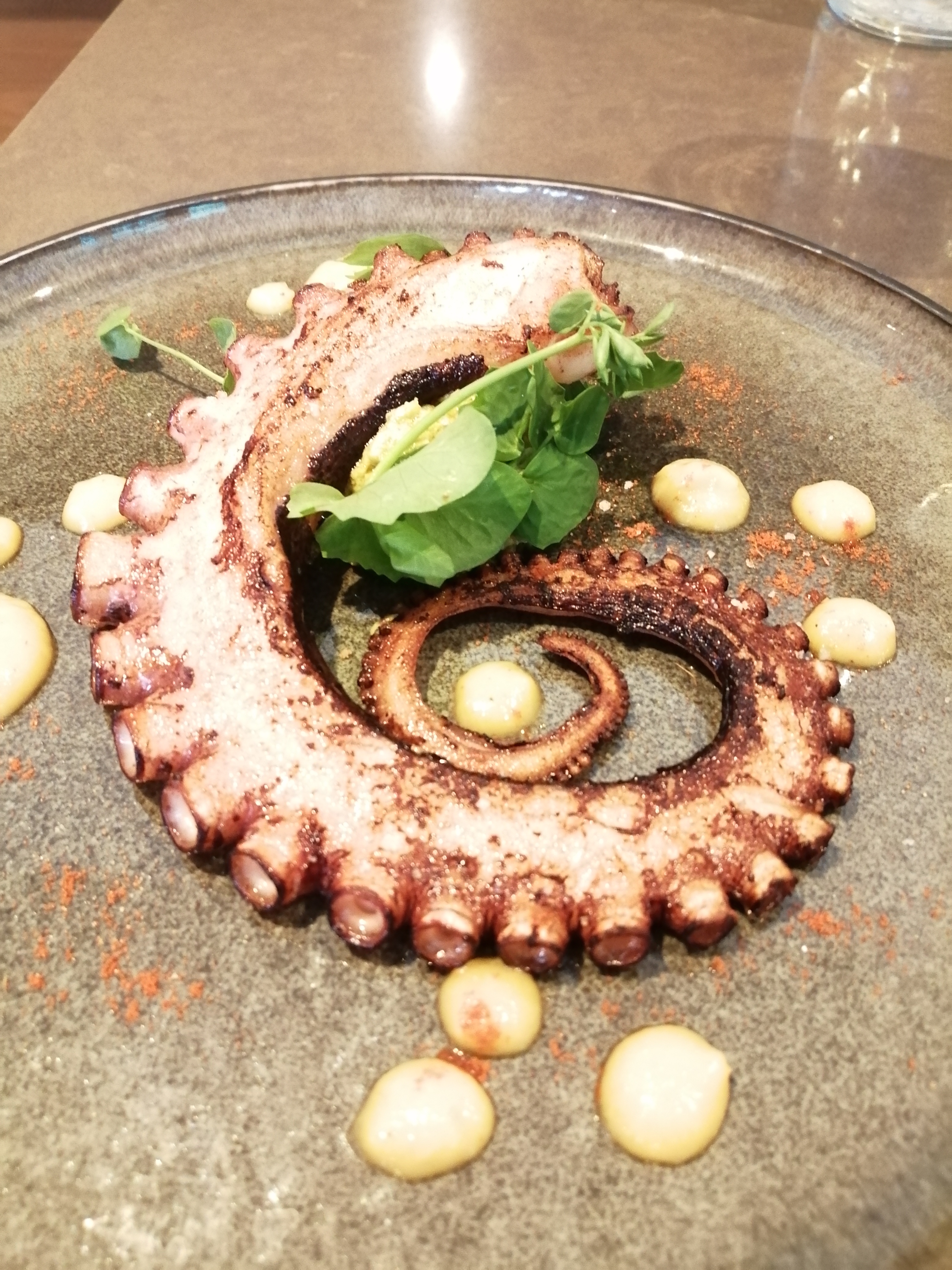 Le poulpe en entrée est excellent et rarement cuisiné à Brest, le Lieu Jaune au far noir et crumble d'oignon est d'une grande finesse. Je félicite la cuisine et le service !