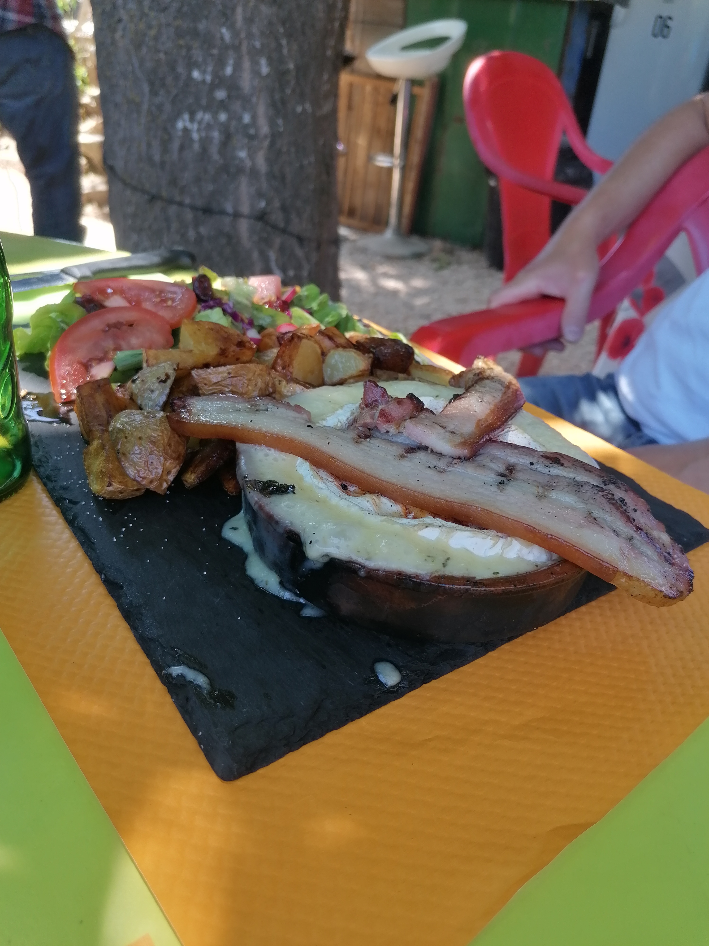 Lieu atypique, on mange dans le jardin d'un particulier. La cuisine au barbecue est au top et la bavette et ses petites pommes est un délice. Ma compagne a pris un Camenbert rôti avec tranche de lard, pomme et terre et salade. Superbe présentation. Merci pour ce repas !