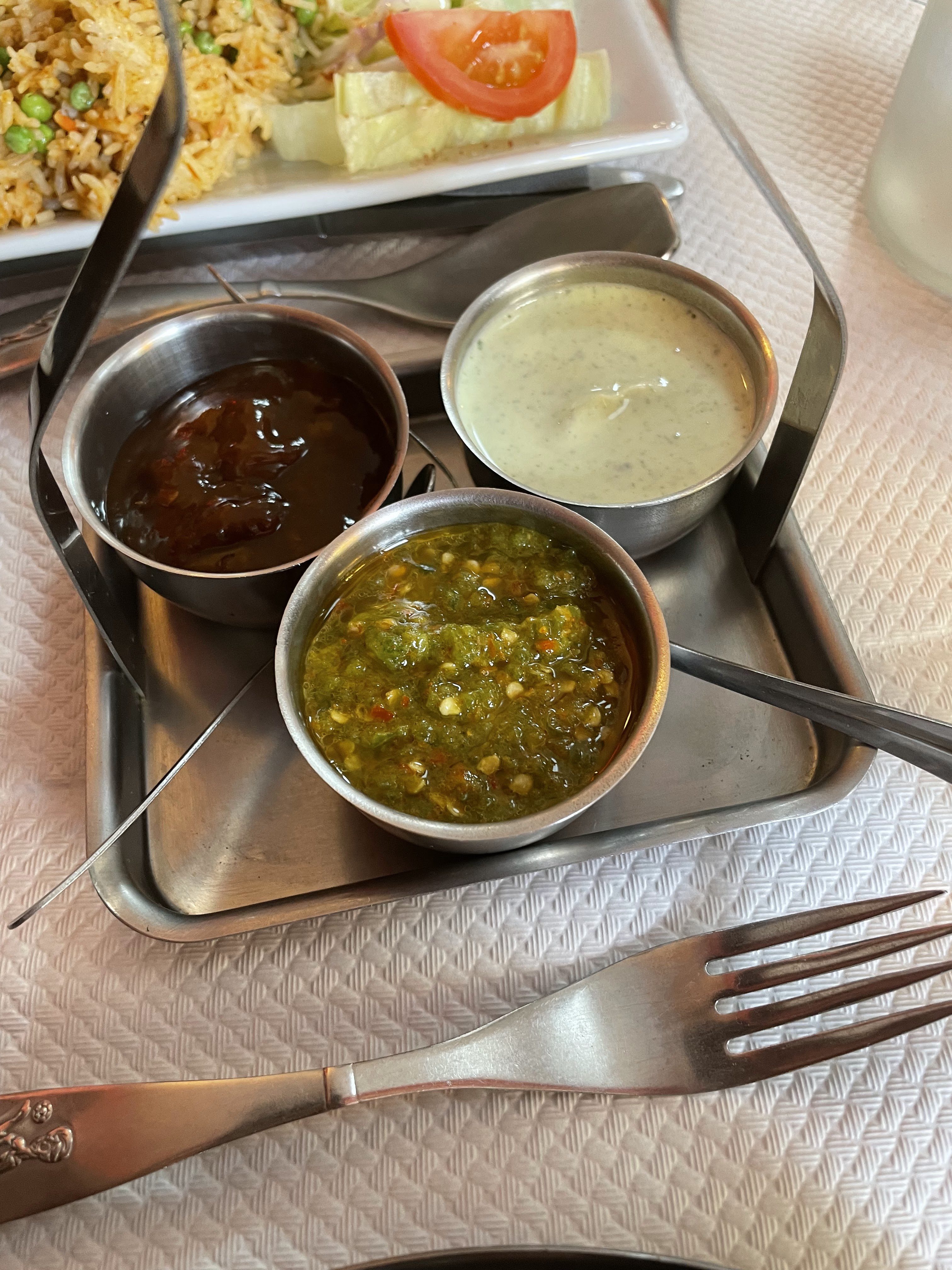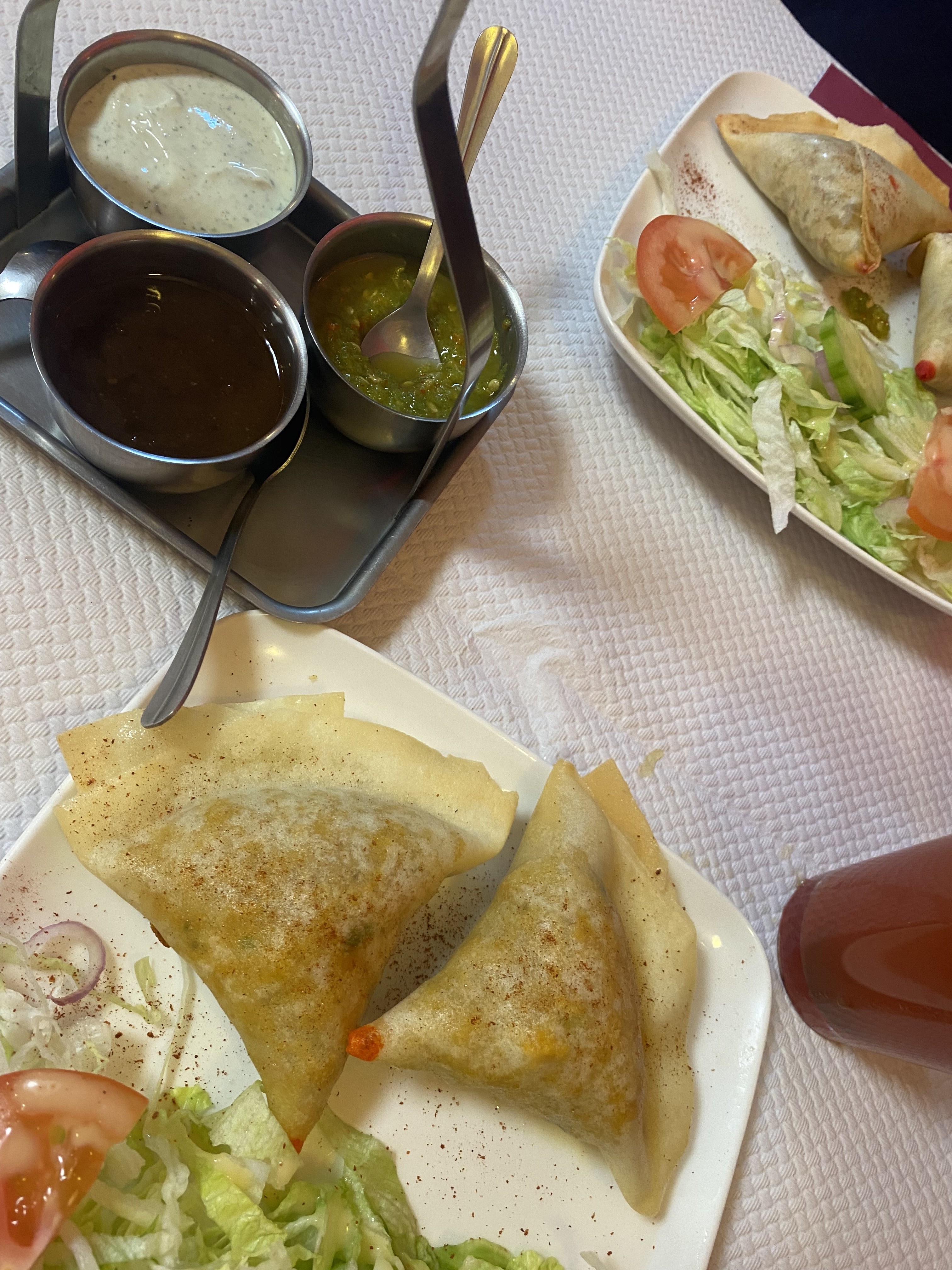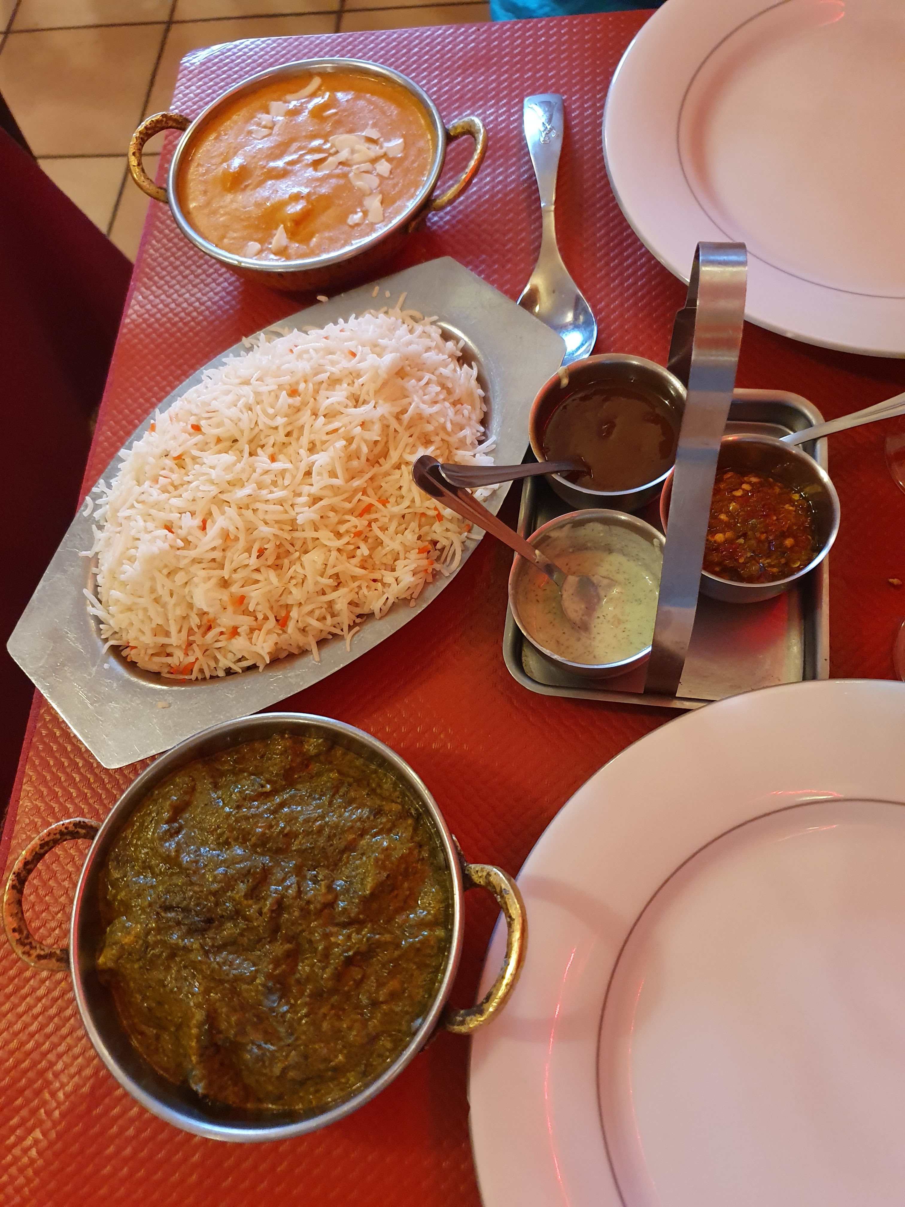 La nourriture et le service étaient tous deux excellents. Je crois que ce sont les premiers samosas que je mange et qui ne dégoulinent pas presque de graisse. Et le meilleur curry que j'ai eu en dehors du Royaume-Uni. Attention, je ne suis jamais allé en Inde. 😉