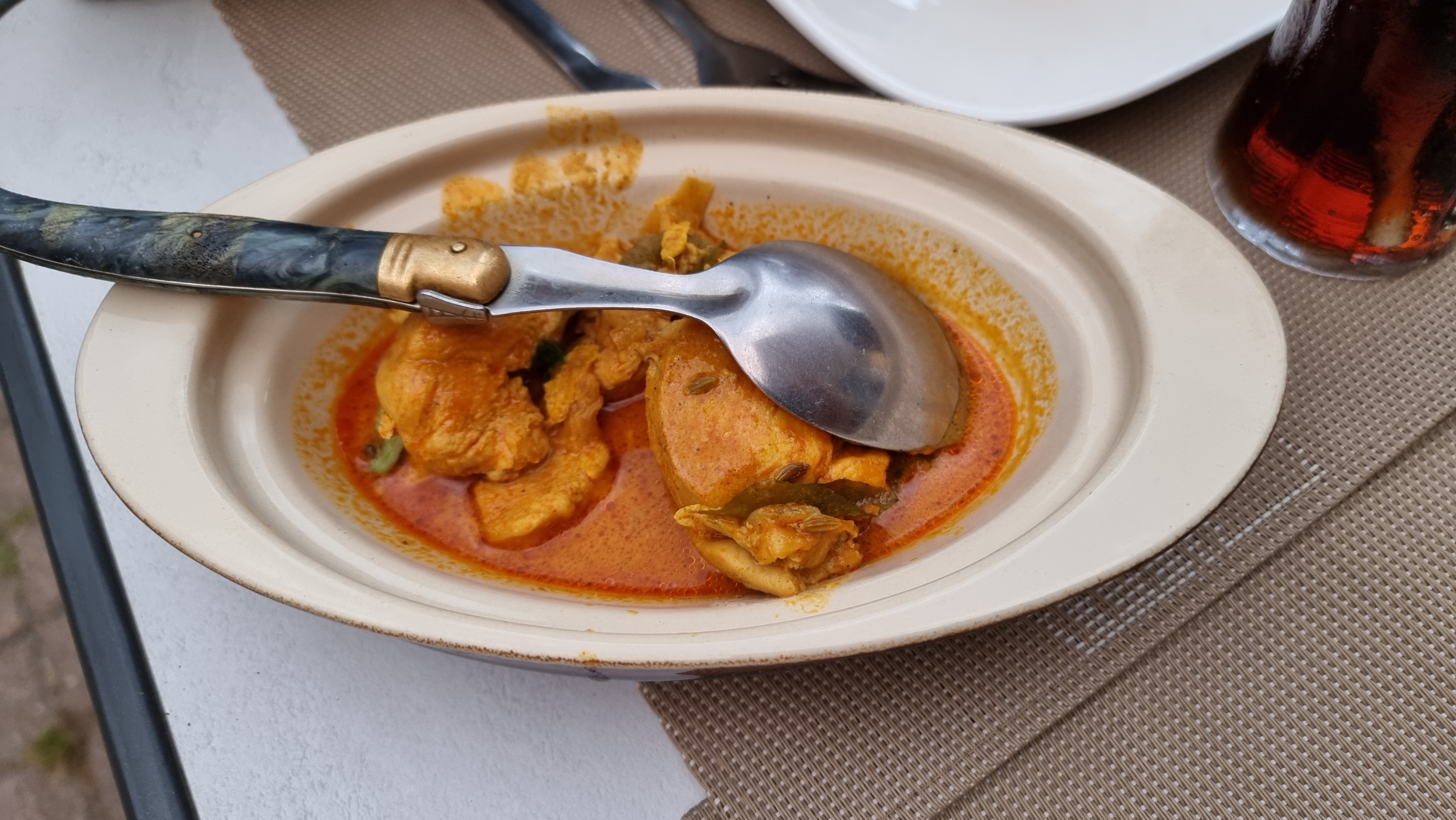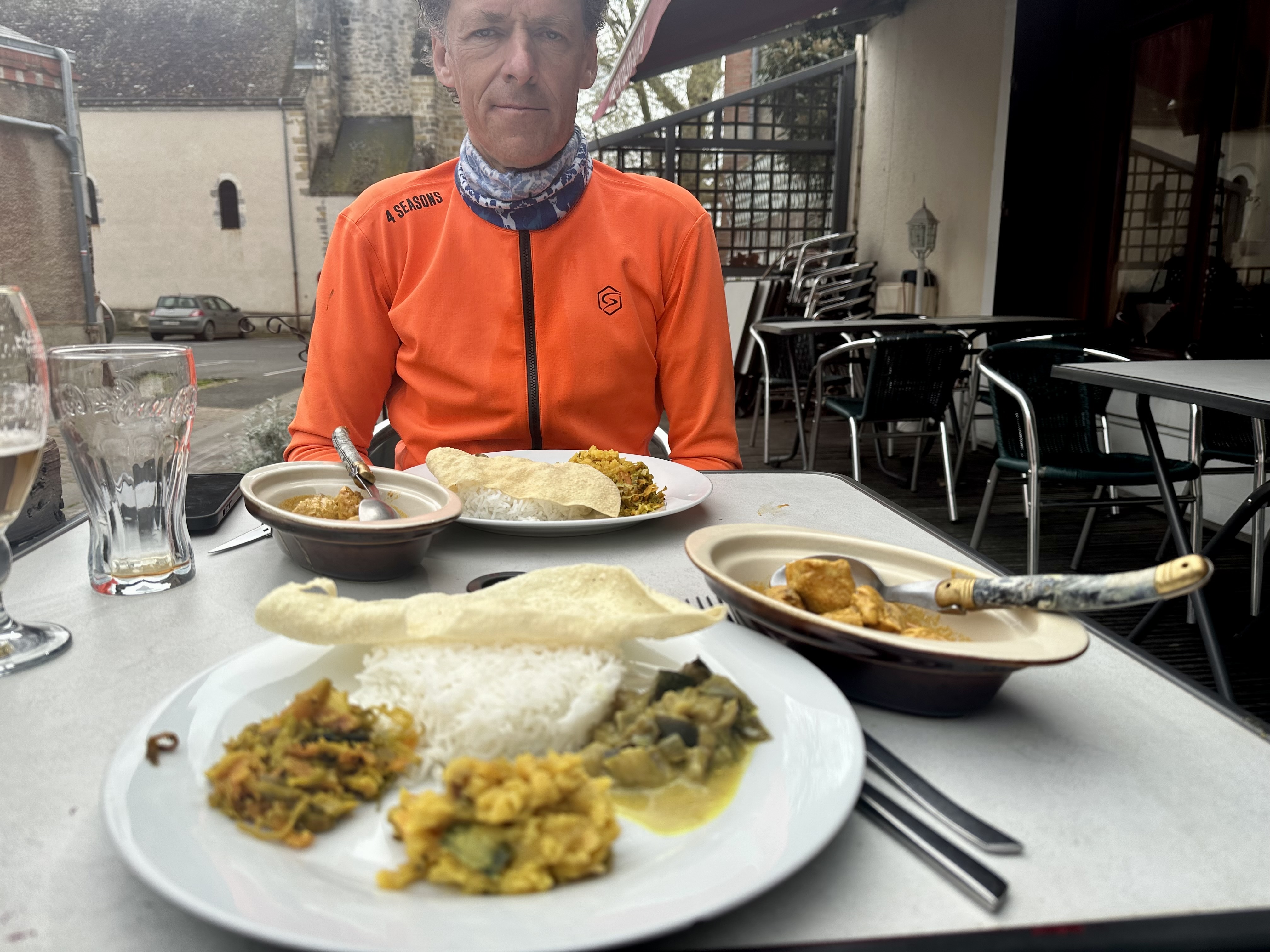 Quelle hospitalité. Nous sommes arrivés à vélo à 15h15, affamés. Le restaurant était effectivement fermé, mais la maîtresse de maison nous a préparé un délicieux poulet tikka masala. Magnifique.