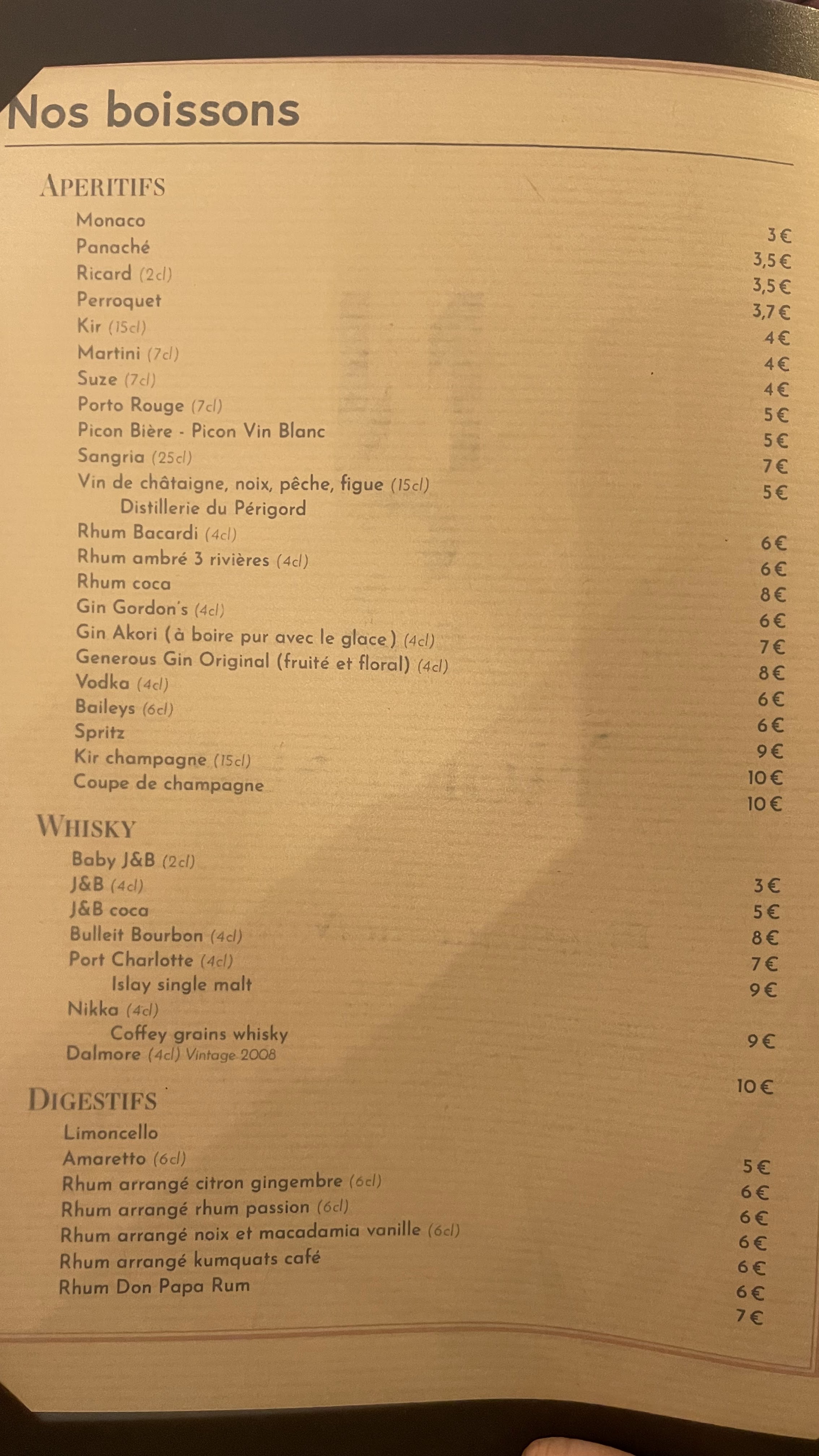 - ✔️ Cocktails et apéritifs