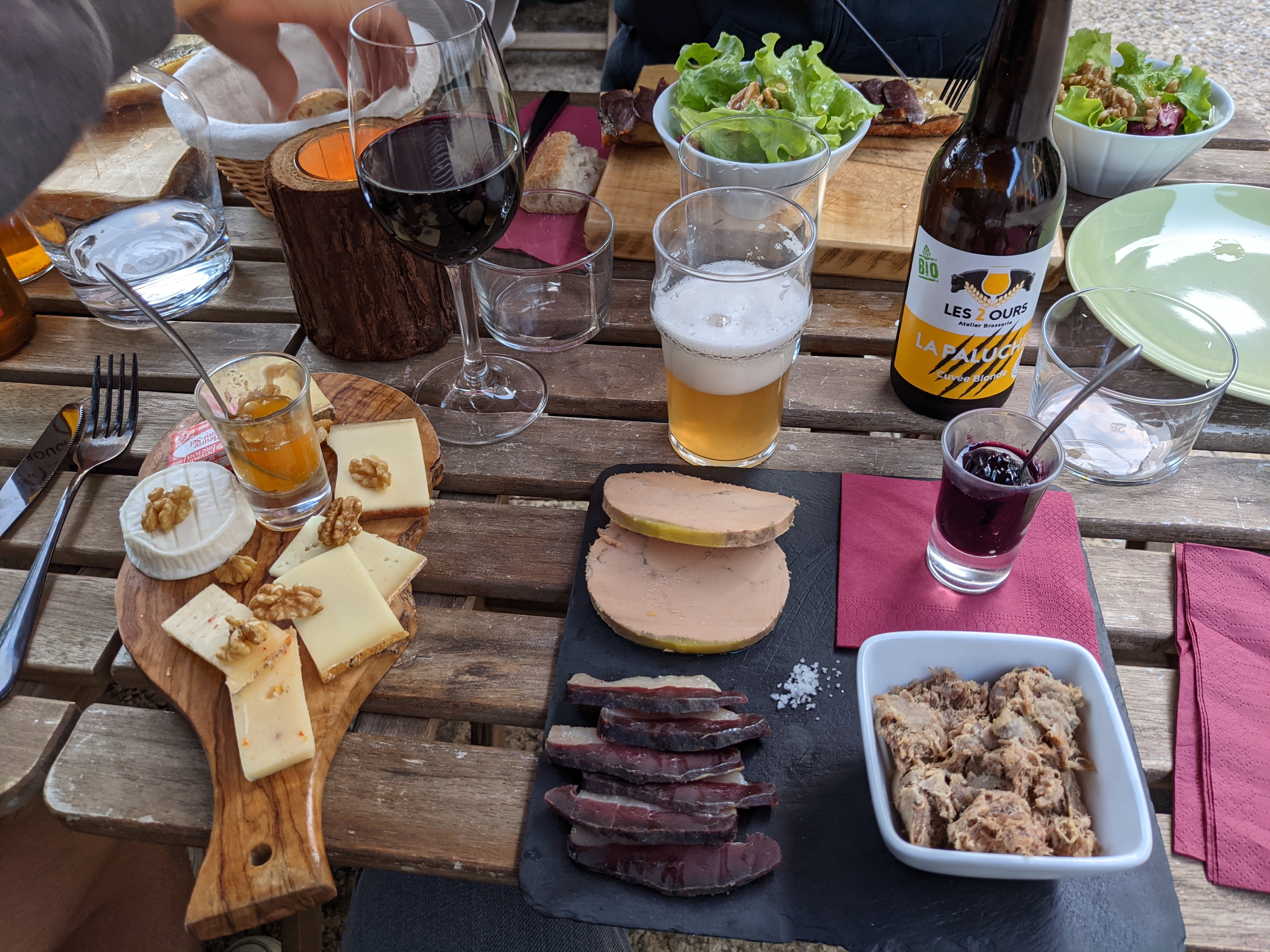 Planches de charcuterie, canard ou fromage. Les produits sont locaux de qualités et bien présentés. Le service est très agréable. On en gardera un très bon souvenir. Nous recommandons +++