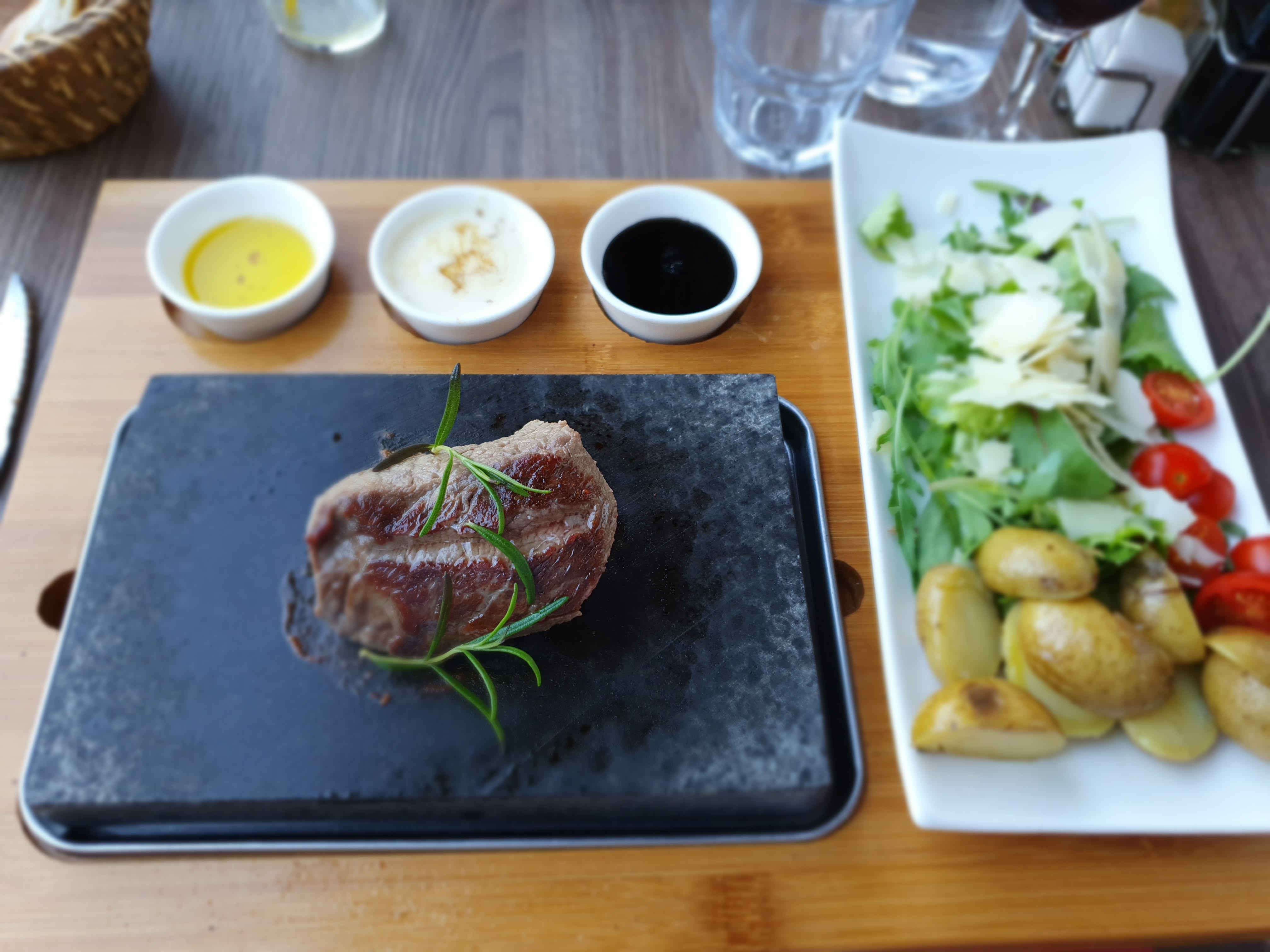 C'était notre deuxième visite dans ce restaurant c'était pas mauvais honnêtement mais rien d'exceptionnel pour des prix plutôt élevés en revanche . Déjà il faisait froid dans le restaurant, le serveur gentil certes mais pas pro, on ne débarrasse pas le verre ou l'assiette à peine terminé surtout quand l'autre personne n'a pas terminé de manger. Le vin au verre faut oublier car il est servi via de grosses bouteilles de 2l avec un bouchon qui se visse et est vraiment moyen pour 7 euros tout de même. Et la petite phrase qui se voulait être gentille j'en suis certaine elle mange bien ? ne se dit pas !!! Le dessert était très bon rien à redire.